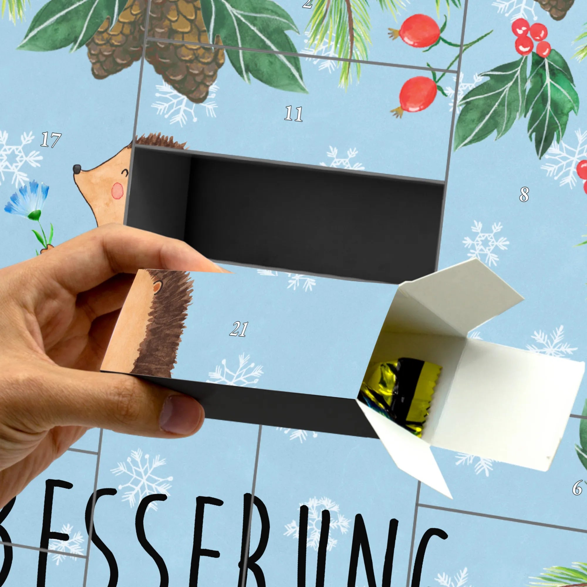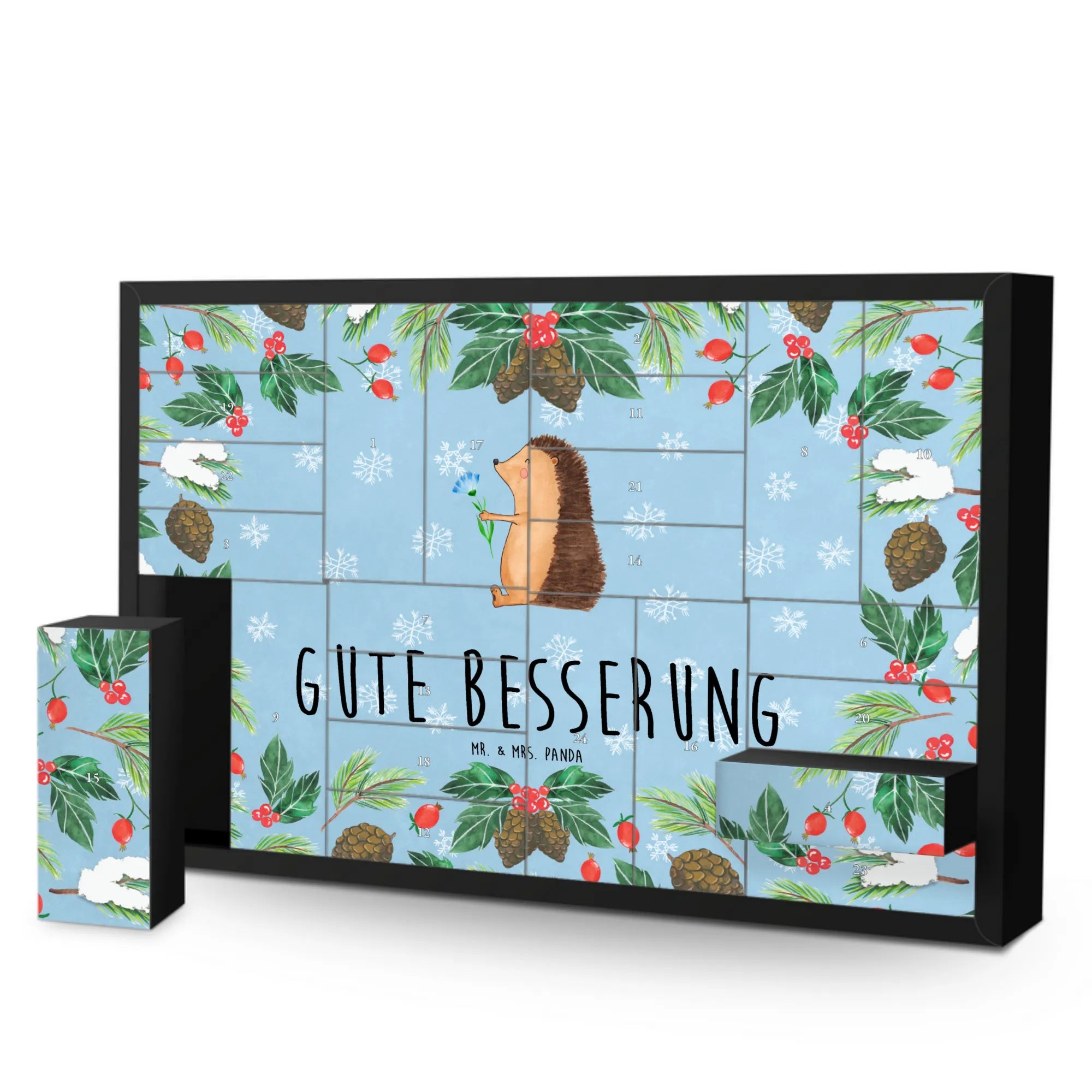 Unser Adventskalender aus der Small World-Kollektion von Mr. & Mrs. Panda ist die liebevolle Idee für alle, die jemandem in schwierigen Zeiten eine tägliche Freude schenken möchten. Der niedliche Igel mit einer roten Blume und der herzliche Schriftzug „Gute Besserung“ machen diesen Adventskalender zum idealen Geschenk bei Krankheit, Krankenhausaufenthalt oder einfach, wenn Du jemandem zeigen willst: Ich denk an dich.