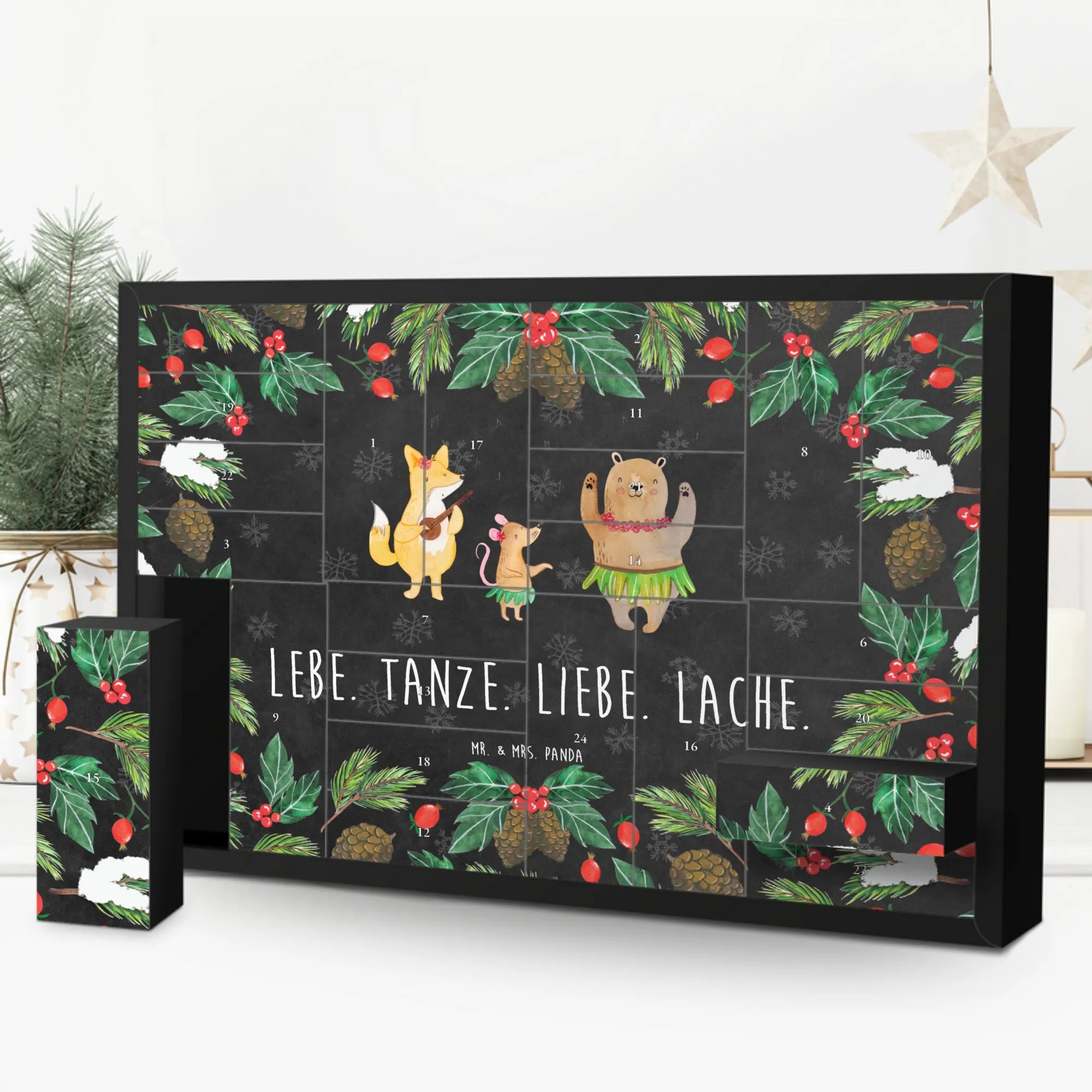 Der befüllbare Adventskalender Waldtiere Aloha von Mr. & Mrs. Panda ist das perfekte Geschenk für die Vorweihnachtszeit! 🎄 Die liebevollen Illustrationen von bunten Waldbewohnern, die in Hula-Röcken fröhlich zu Hawaiianischer Musik tanzen, versetzen dich sofort in Urlaubsstimmung.