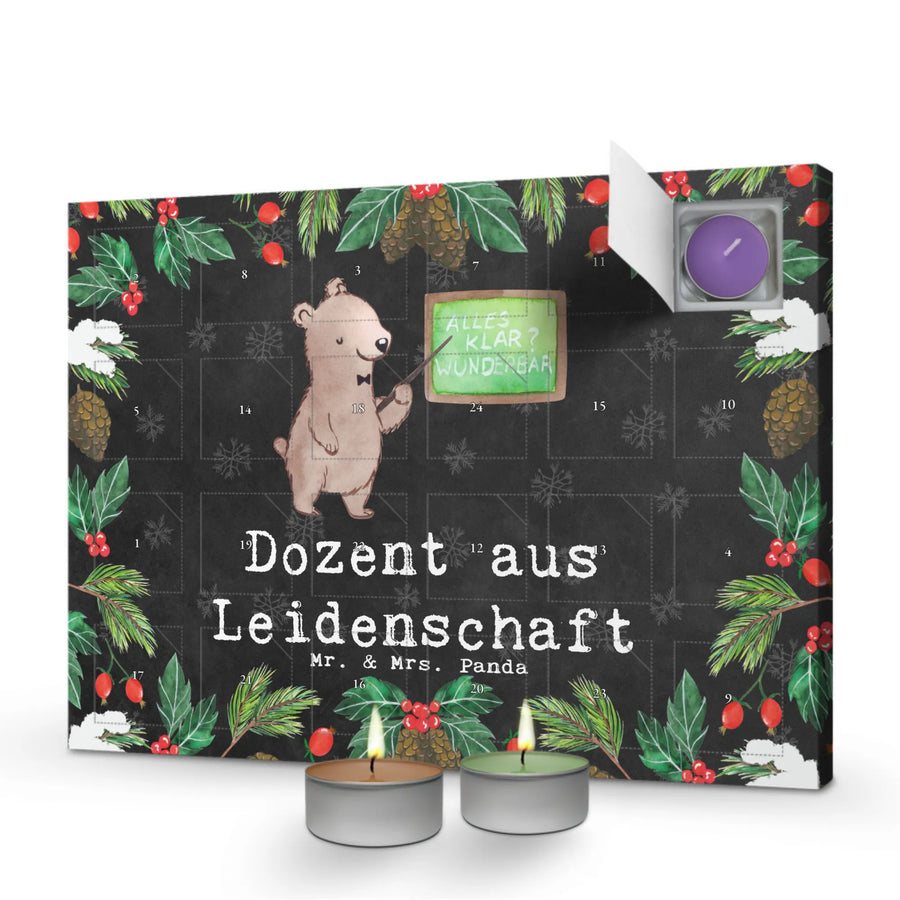 Entdecke den einzigartigen Duftkerzen Adventskalender "Dozent aus Leidenschaft" von Mr. & Mrs. Panda, das perfekte Geschenk für jeden Akademiker, Dozenten oder Studenten.