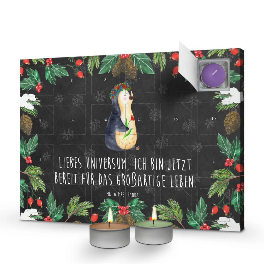 Dieser Duftkerzen Adventskalender in der besonderen Pinguin-Kollektion ist nicht nur für dich selbst gedacht, sondern auch eine fabelhafte Geschenkidee für Freunde und Familie. Ob zu Weihnachten, als Dankeschön oder einfach nur so – dieser Adventskalender wird für leuchtende Augen und glückliche Gesichter sorgen! Er eignet sich perfekt für Menschen, die Lebensziele verfolgen und sich inspirieren lassen wollen. Mit dem Slogan „Liebes Universum, ich bin jetzt bereit für das großartige Leben.“ erinnert er daran, dass jeder Tag eine neue Chance ist, seine Träume zu verwirklichen.