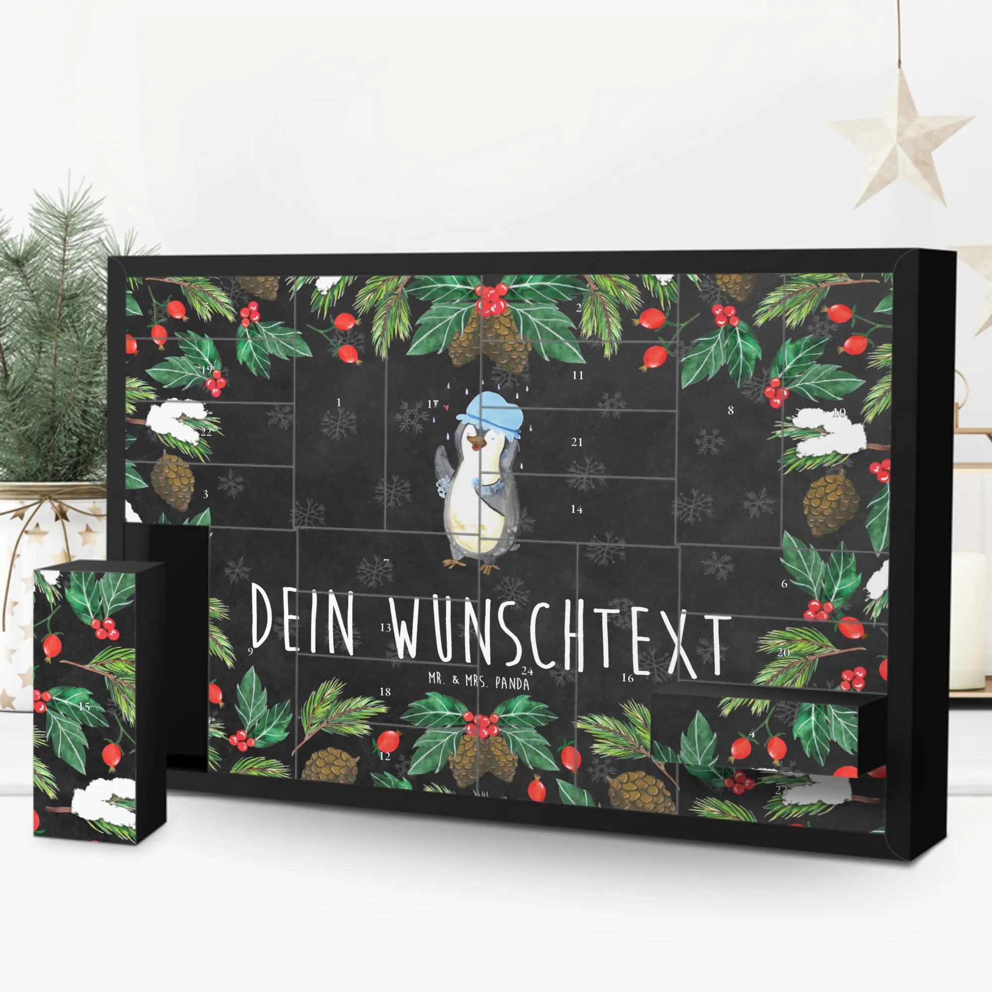 Personalisierter Befüllbarer Adventskalender Pinguin Duschen - Kreidetafel