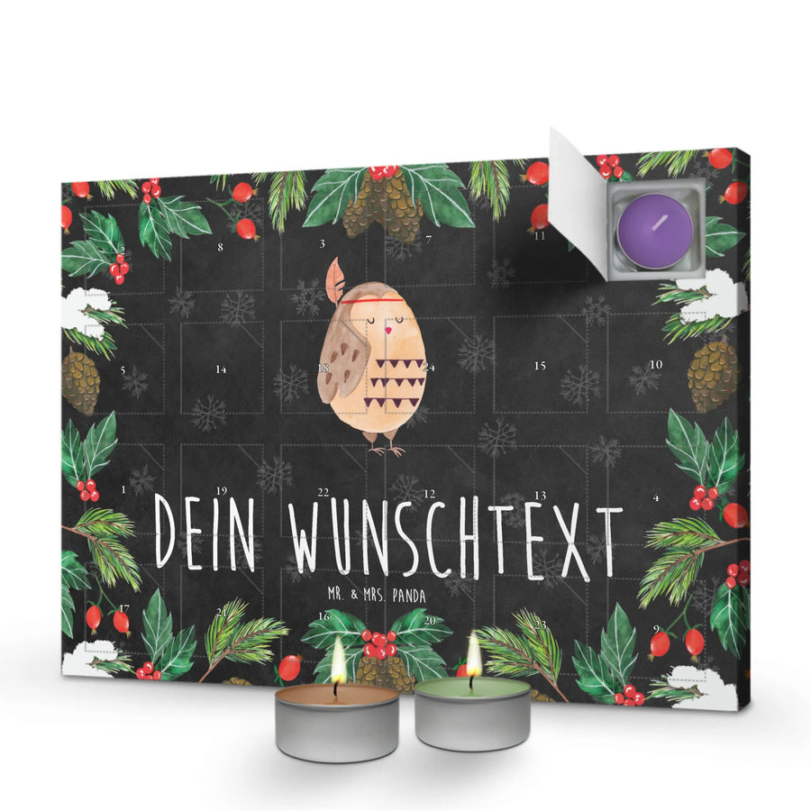 Personalisierter Duftkerzen Adventskalender Eule Federschmuck - Kreidetafel