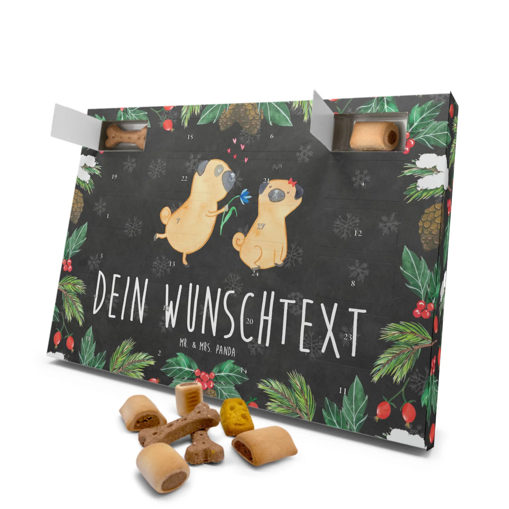 Personalisierter Hunde Adventskalender Mops Verliebt - Eisblau