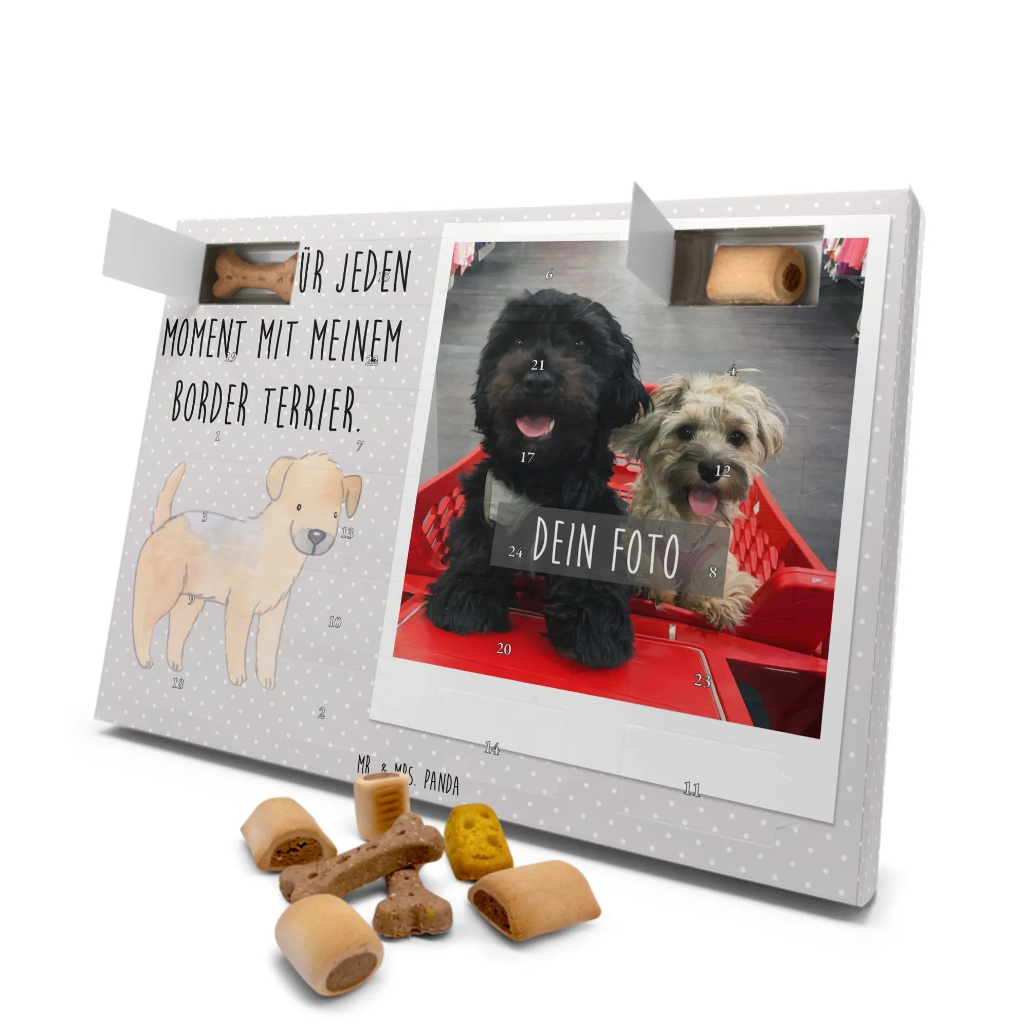 Der personalisierte Hunde Foto Adventskalender mit dem Motiv "Border Terrier Moment" ist das perfekte Geschenk für alle Hundebesitzer und Tierfreunde! 🎁