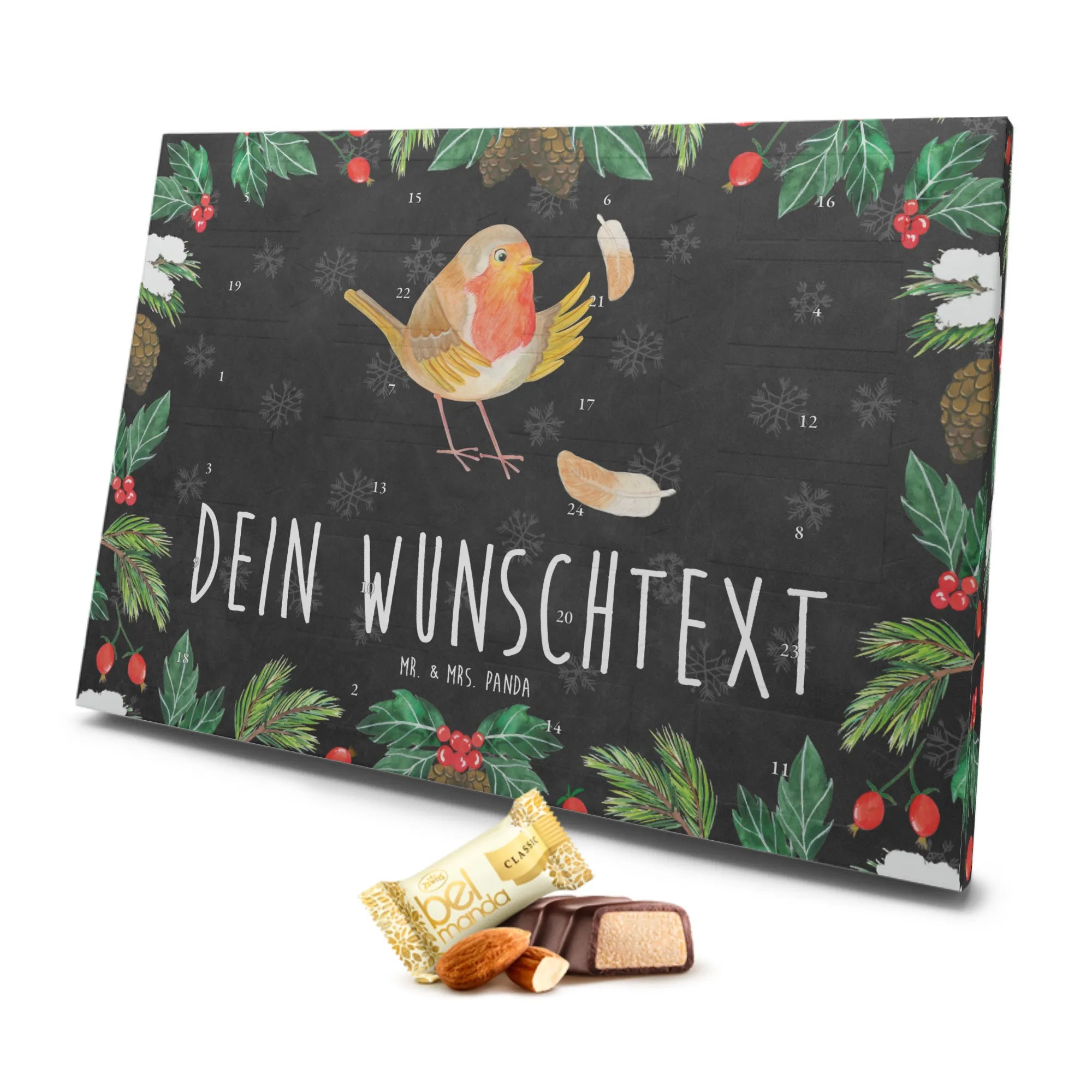 Personalisierter Marzipan Adventskalender Rotkehlchen Federn - Schwarz
