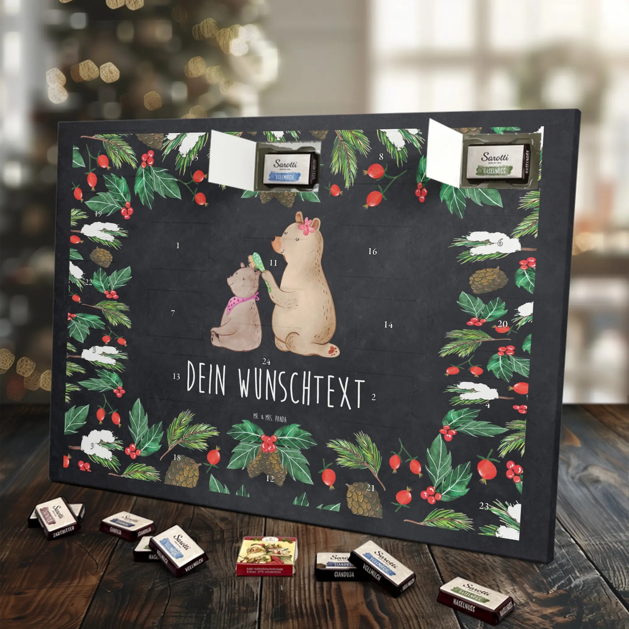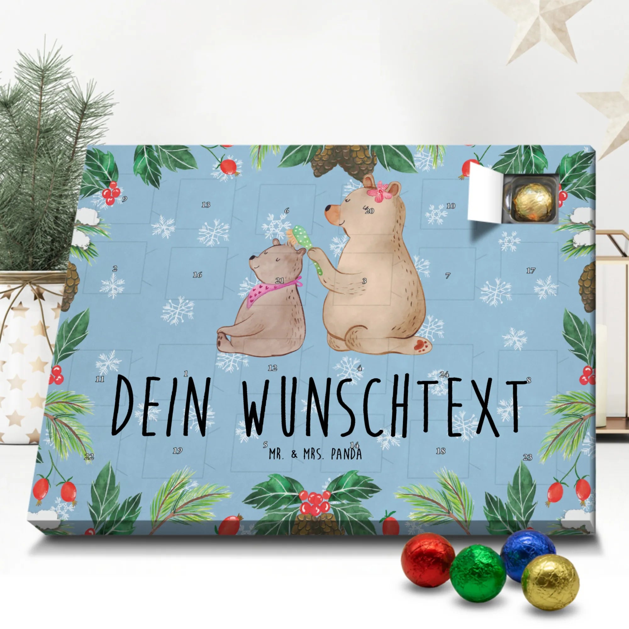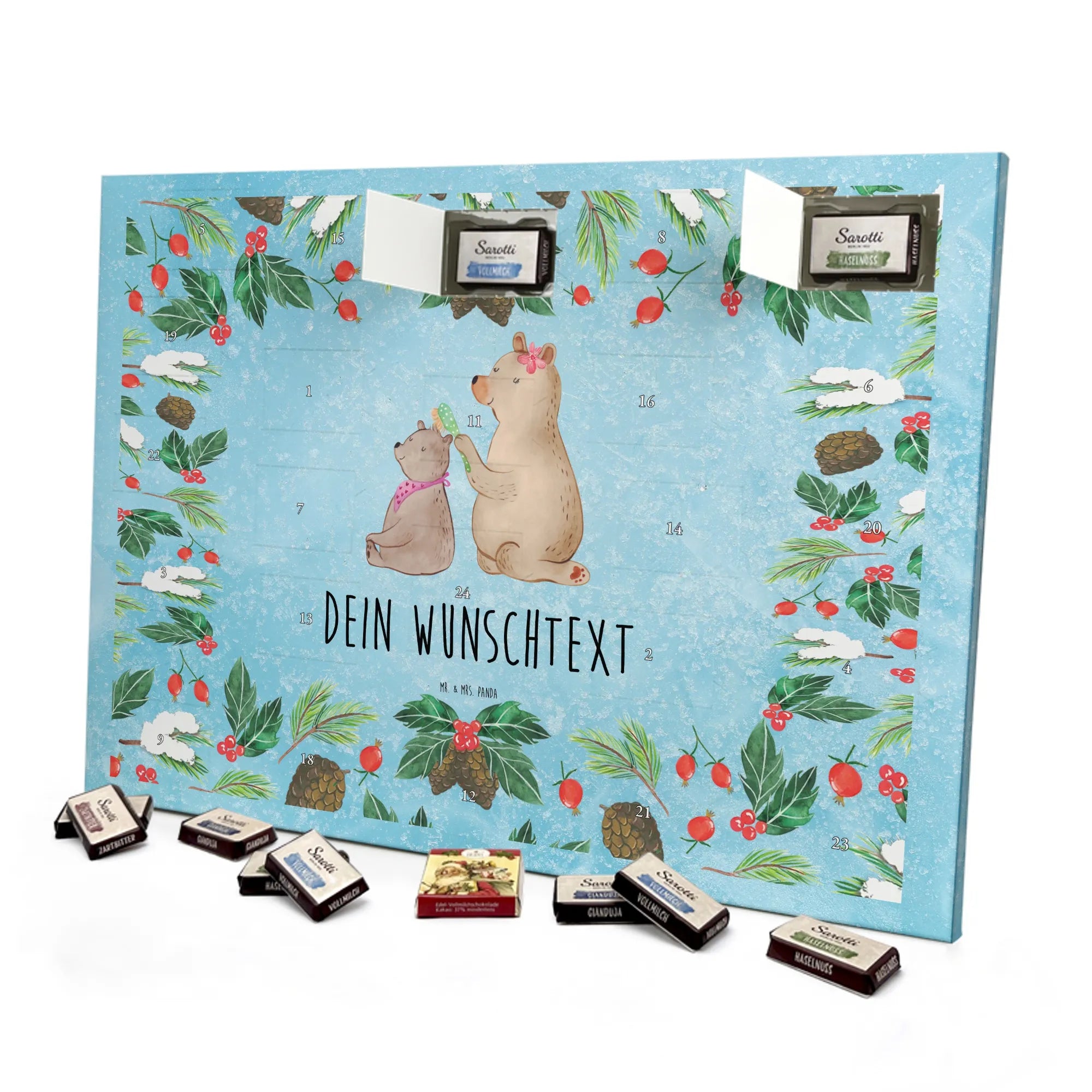 Gestalte Freude: Personalisiere deinen Schoko-Kalender und überrasche mit einem individuellen Adventsgruß von Mr. & Mrs. Panda!