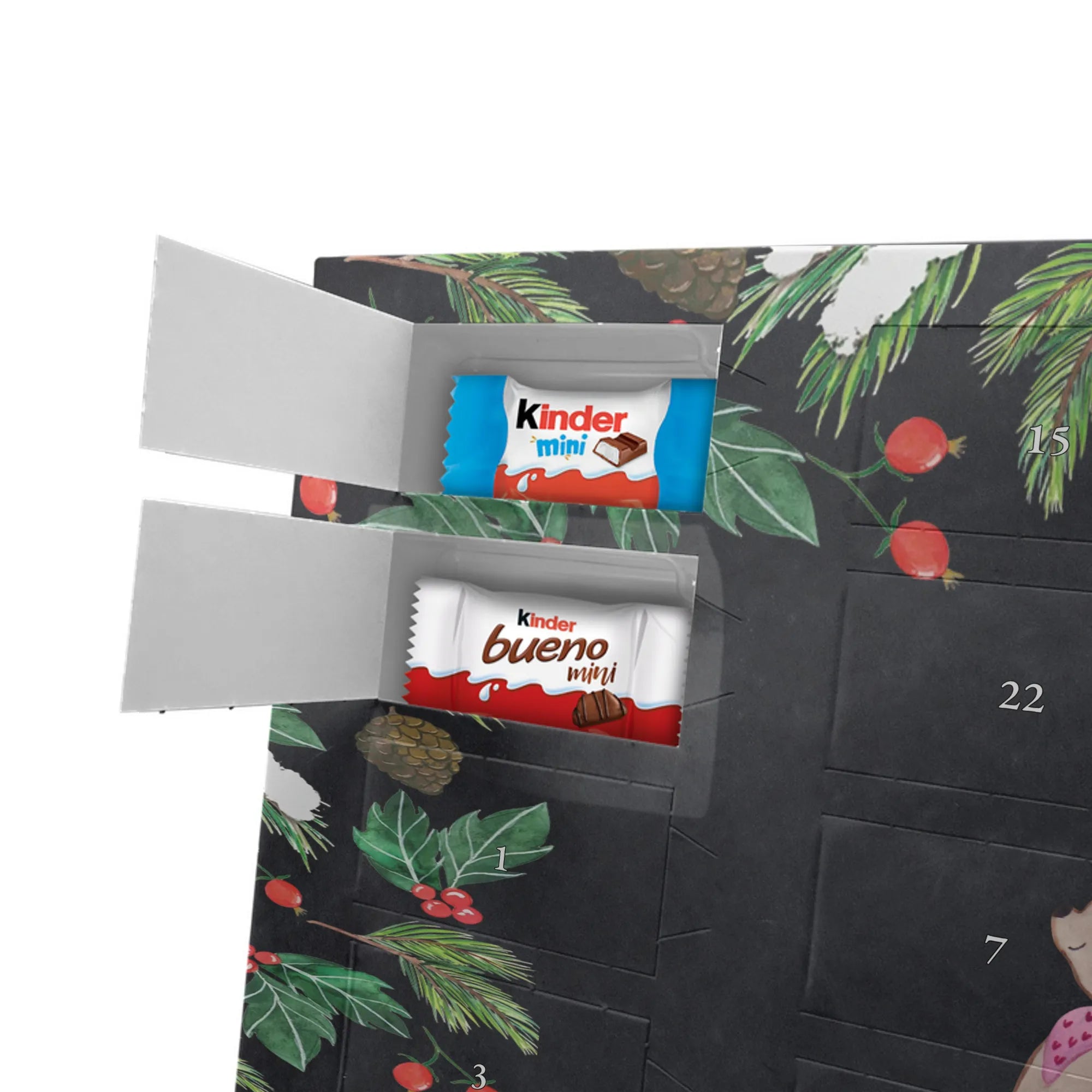 Mach die Adventszeit persönlich mit unserem Personalisierter Adventskalender mit Schokolade von Mr. & Mrs. Panda. Jeder Kalender ist liebevoll illustriert und bedruckt mit charmanten Sprüchen und Motiven – perfekt als Geschenk oder Deko für dein Zuhause. Du kannst deinen Wunschname oder einen kurzen Text hinzufügen, damit der Kalender ganz individuell wird. Die brillante Druckqualität und die seidenmatte Oberflächenveredelung sorgen für eine edle Optik, und auch die Seitenflächen sind komplett bedruckt. Maße: 233 mm x 178 mm x 24 mm. Die clevere Konstruktion erlaubt es, den Kalender aufzuhängen oder aufzustellen – flexibel und dekorativ zugleich. Gefüllt mit MARKENNAMEN Schokolade sowie köstlichen Schokoladenkugeln ist jeder Tag im Advent eine süße Überraschung. Wichtiger Hinweis: (Kann Spuren von Haselnüssen, Mandeln, Gluten und Soja enthalten!), kühl und trocken lagern! Egal ob für Kinder, Partner oder beste Freundin – dieser personalisierte Adventskalender bringt ein Lächeln und zaubert gemütliche Vorfreude. Bestell jetzt und gestalte deine Adventszeit mit einem Hauch Mr. & Mrs. Panda.