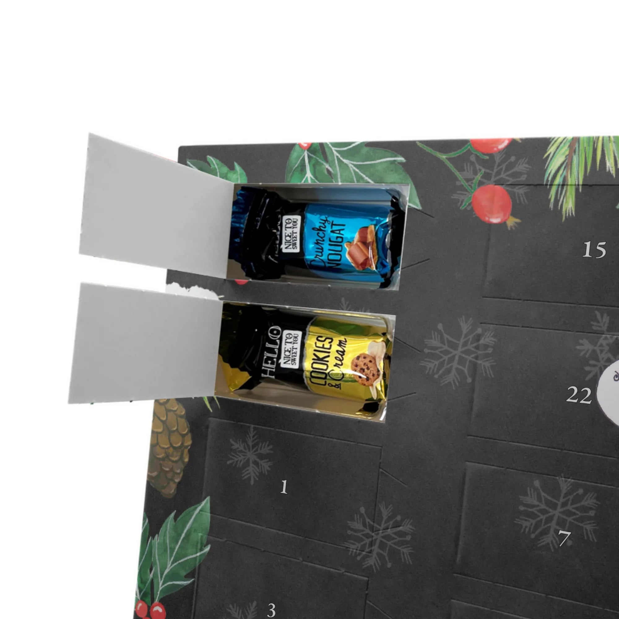Personalisierter Schoko-Adventskalender von Mr. & Mrs. Panda – liebevoll gestaltet und ideal als individuelles Geschenk in der Adventszeit. Wir bedrucken den Kalender mit zauberhaften Motiven & herzlichen Sprüchen und personalisieren ihn mit deinem Wunschnamen oder Wunschtext. Die hochwertige Druckqualität kombiniert mit einer seidenmatten Oberflächenveredelung sorgt für ein edles Erscheinungsbild, und die bedruckten Seitenflächen geben dem Motiv zusätzlichen Charme. Der Kalender kann aufgehängt oder aufgestellt werden, sodass du ihn flexibel platzieren kannst. Gefüllt ist der Kalender mit Celebrations, die 24 hochwertige Überraschungen in 8 verschiedenen Sorten beinhalten: Maltesers, Mars, Snickers, Twix, Milky Way, Bounty, Galaxy und Galaxy Caramel. Maße: 325 mm x 225 mm x 27 mm – handlich und doch großzügig für die kleinen Leckereien hinter den Türchen. Ob für Kinder, Partner oder beste Freunde: dieser personalisierte Schoko-Adventskalender macht das Warten auf Weihnachten bunter und leckerer. Verschenke eine persönliche Erinnerung und jeden Tag ein kleines Schokoladen-Glück!