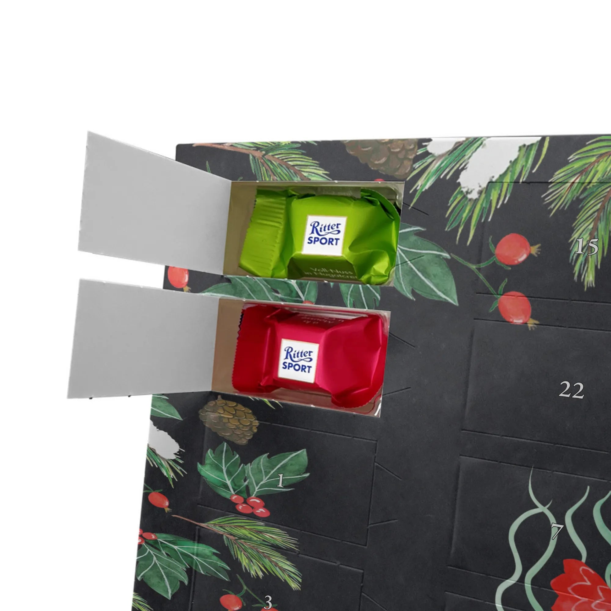 🐼 Personalisierter Schoko Adventskalender, seidenmatt und mit Ritter Sport Schokowürfeln.