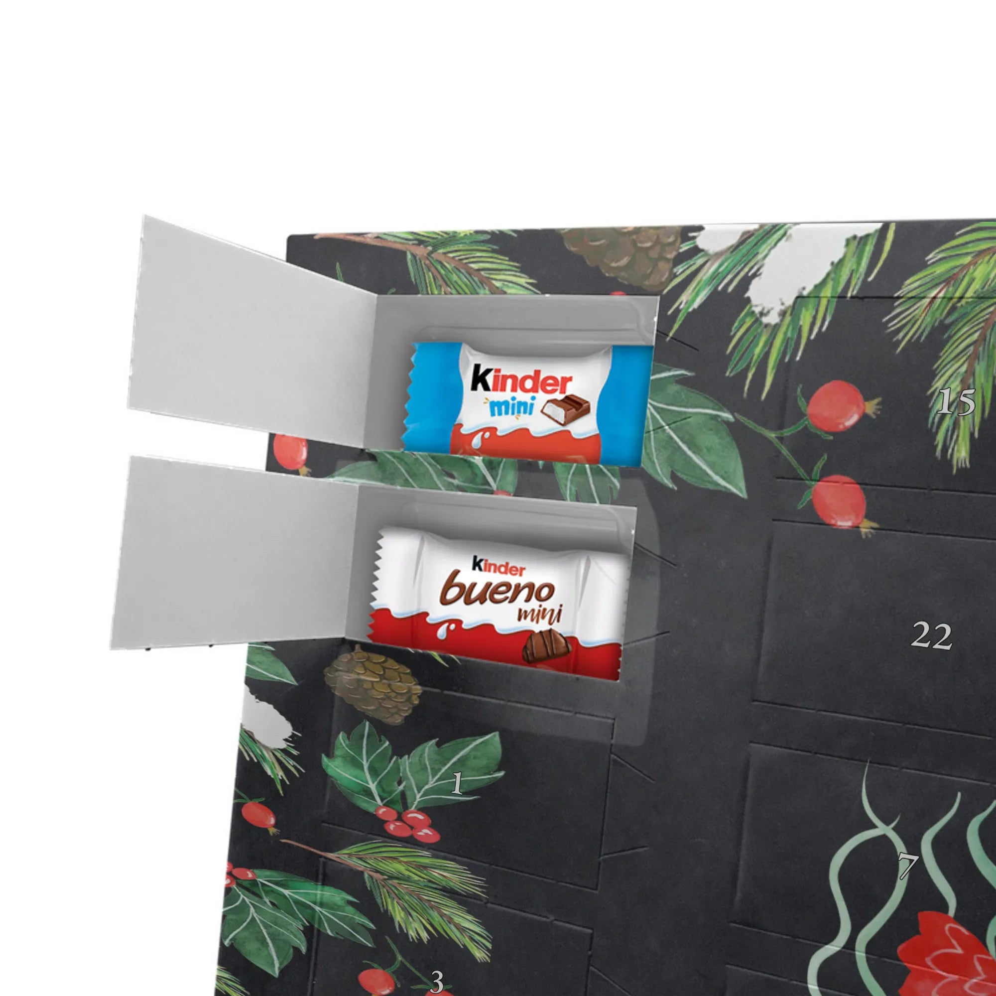 Feier die Vorfreude mit einem persönlichen Hingucker: unser Personalisierter Schoko Adventskalender von Mr. & Mrs. Panda. Dieser Kalender ist liebevoll mit wunderschönen Motiven & Sprüchen bedruckt und kann mit deinem Wunschnamen oder Wunschtext individualisiert werden – perfekt für eine persönliche Überraschung jeden Adventstag. Die brillante Druckqualität und die seidenmatte Oberflächenveredelung geben dem Kalender einen edlen Look, und die bedruckten Seitenflächen machen ihn rundum dekorativ. Besonders praktisch: der Kalender kann aufgehängt oder aufgestellt werden, je nachdem, wie du ihn präsentieren möchtest. Maße: 355 mm x 245 mm x 11 mm – ein ideales Format für dekorative Platzierung und genügend Raum für leckere Türchenüberraschungen. Gefüllt mit kinder® Schokolade: Adventskalender gefüllt mit kinder® Schokolade; Inhalt: kinder® Schoko-Bons, kinder® Bueno mini und kinder® Schokolade mini. Ob als Geschenk für Kinder, Partner oder beste Freunde – mit Mr. & Mrs. Panda verschenkst du nicht nur Süßes, sondern echte Vorfreude und liebevolle Gestaltung.
