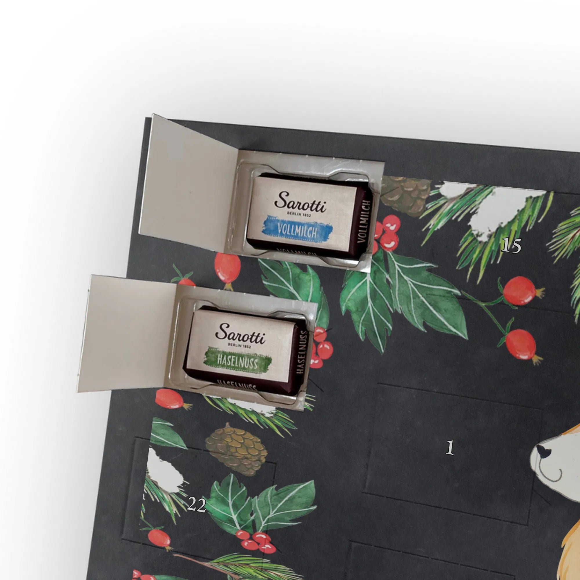 Wundervoller Adventskalender mit persönlicher Note – der Personalisierte Schoko Adventskalender von Mr. & Mrs. Panda ist eine liebevolle Geschenkidee, die dich oder deine Liebsten durch die Dezembertage begleitet. Bedruckt mit einzigartigen Motiven und charmanten Sprüchen von Mr. & Mrs. Panda, kannst du den Kalender mit deinem Namen oder einem kurzen Wunschtext individuell gestalten. Die seidenmatte Oberflächenveredelung bringt die Farben besonders schön zur Geltung, und die bedruckten Seitenflächen sorgen für ein rundum stimmiges Design. Maße: 355 mm x 245 mm x 11 mm. Praktisch: Der Kalender lässt sich sowohl hängen als auch aufstellen. Gefüllt ist er mit 24 einzeln verpackten Schokoladentäfelchen in vier leckeren Geschmacksrichtungen. Insgesamt enthält er 107 g Markenschokolade von Sarotti® und Confiserie Heidel® – Geschmacksrichtungen: Vollmilch, Nougat, Zartbitter und Haselnuss. Wichtig zu wissen: Es handelt sich um einen Kalender gefüllt mit Sarotti® und Confiserie Heidel® Markenschokolade. Ob als persönliches Geschenk, Mitbringsel oder Überraschung – dieser Adventskalender bringt jeden Tag süße Freude und ein Lächeln ins Gesicht.