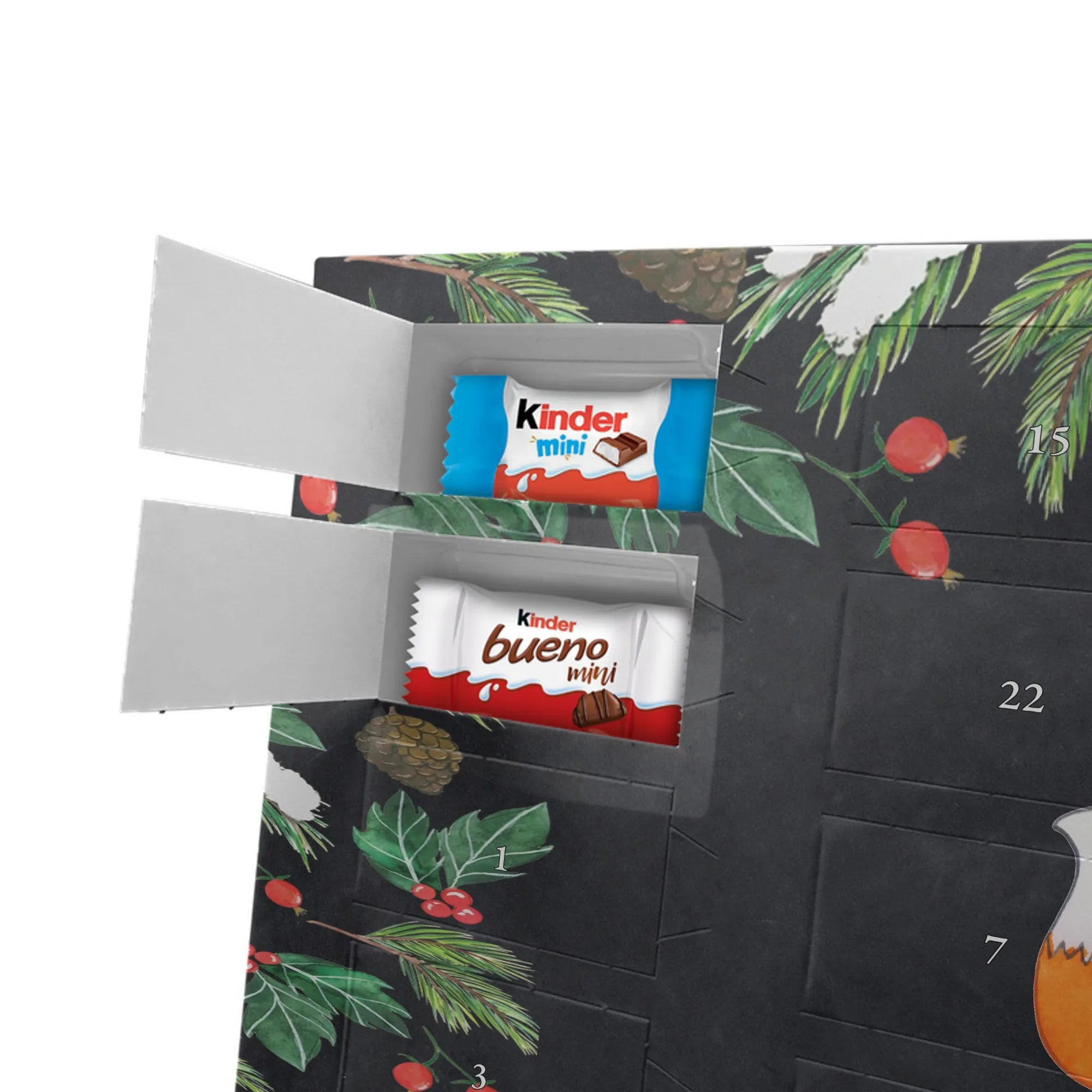 Feier die Vorfreude mit einem persönlichen Hingucker: unser Personalisierter Schoko Adventskalender von Mr. & Mrs. Panda. Dieser Kalender ist liebevoll mit wunderschönen Motiven & Sprüchen bedruckt und kann mit deinem Wunschnamen oder Wunschtext individualisiert werden – perfekt für eine persönliche Überraschung jeden Adventstag. Die brillante Druckqualität und die seidenmatte Oberflächenveredelung geben dem Kalender einen edlen Look, und die bedruckten Seitenflächen machen ihn rundum dekorativ. Besonders praktisch: der Kalender kann aufgehängt oder aufgestellt werden, je nachdem, wie du ihn präsentieren möchtest. Maße: 355 mm x 245 mm x 11 mm – ein ideales Format für dekorative Platzierung und genügend Raum für leckere Türchenüberraschungen. Gefüllt mit kinder® Schokolade: Adventskalender gefüllt mit kinder® Schokolade; Inhalt: kinder® Schoko-Bons, kinder® Bueno mini und kinder® Schokolade mini. Ob als Geschenk für Kinder, Partner oder beste Freunde – mit Mr. & Mrs. Panda verschenkst du nicht nur Süßes, sondern echte Vorfreude und liebevolle Gestaltung.