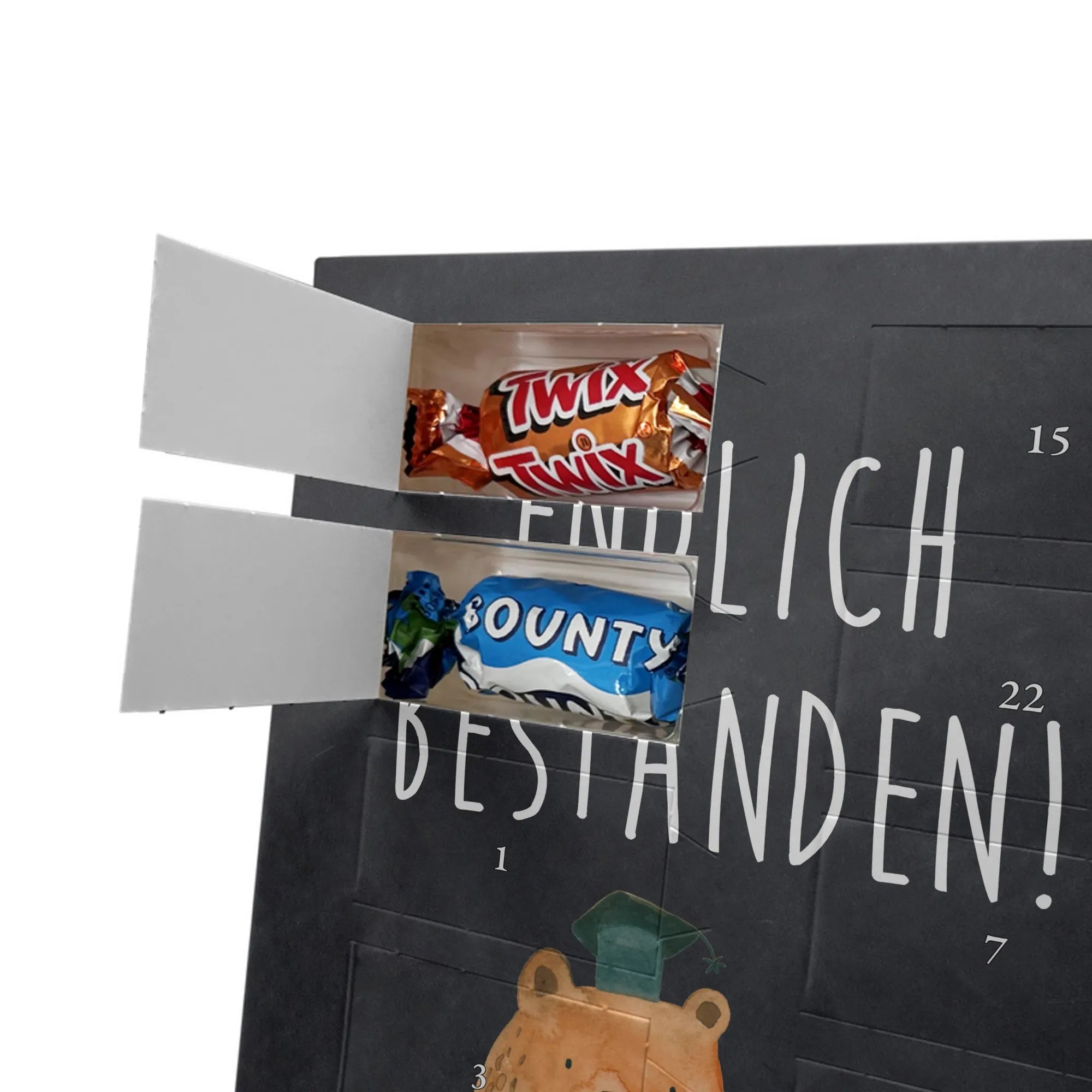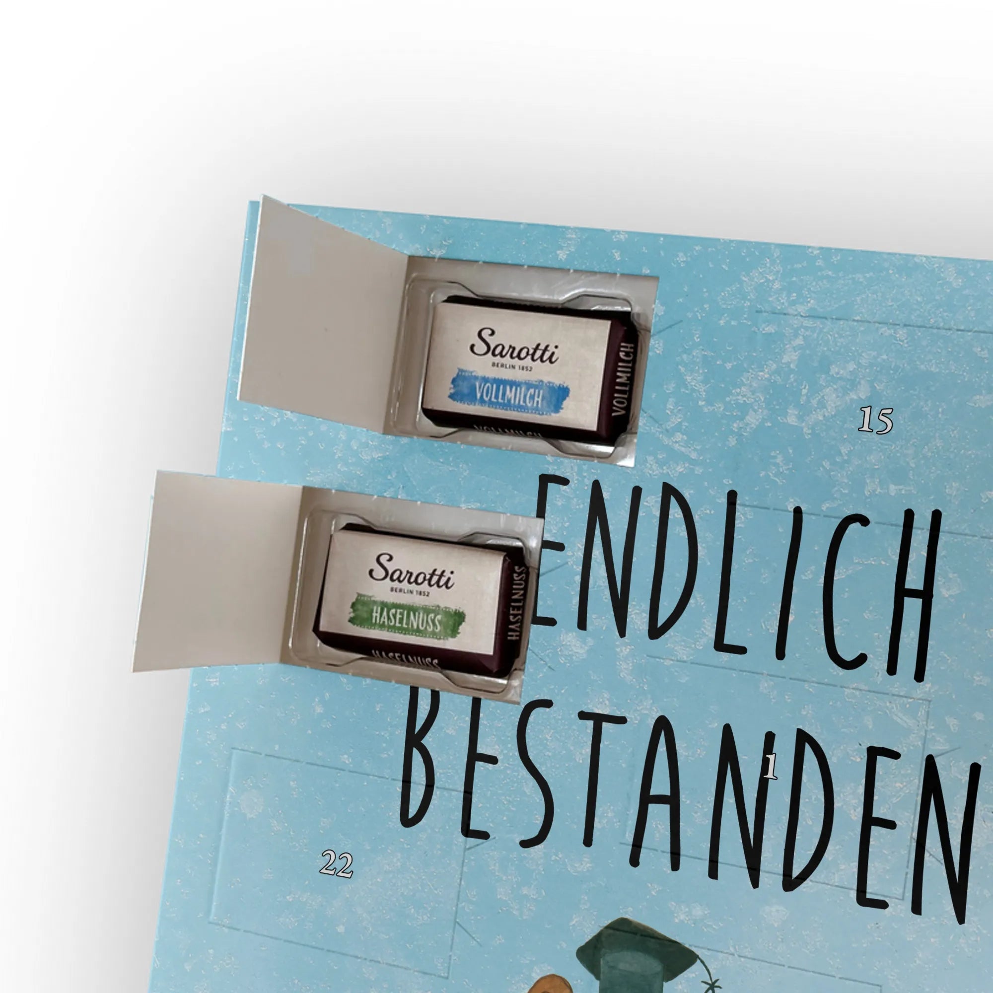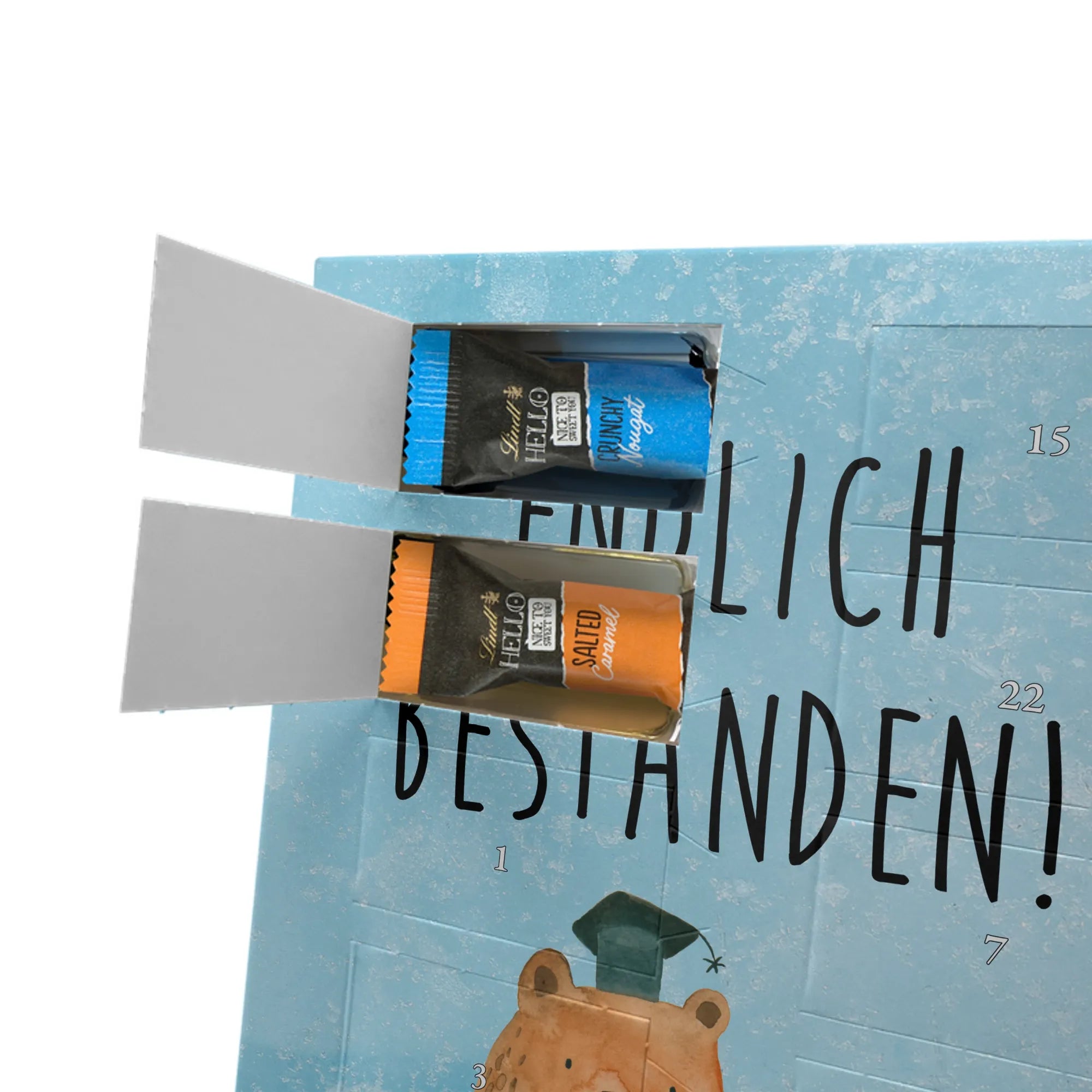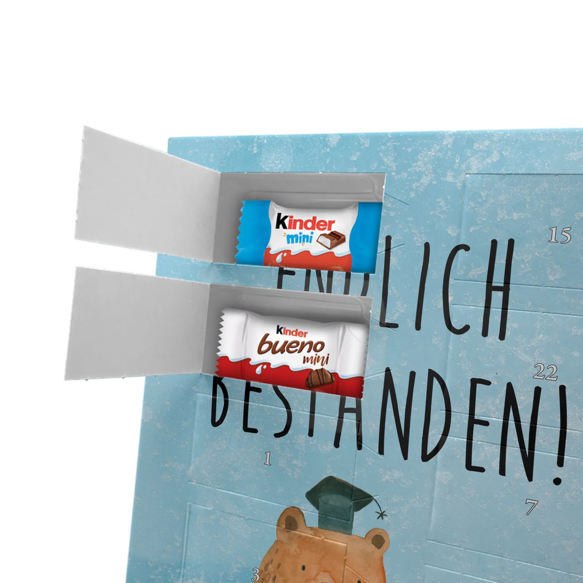 Personalisierter Schoko Foto Adventskalender Bär Prüfung - Kinder Schokolade - Eisblau