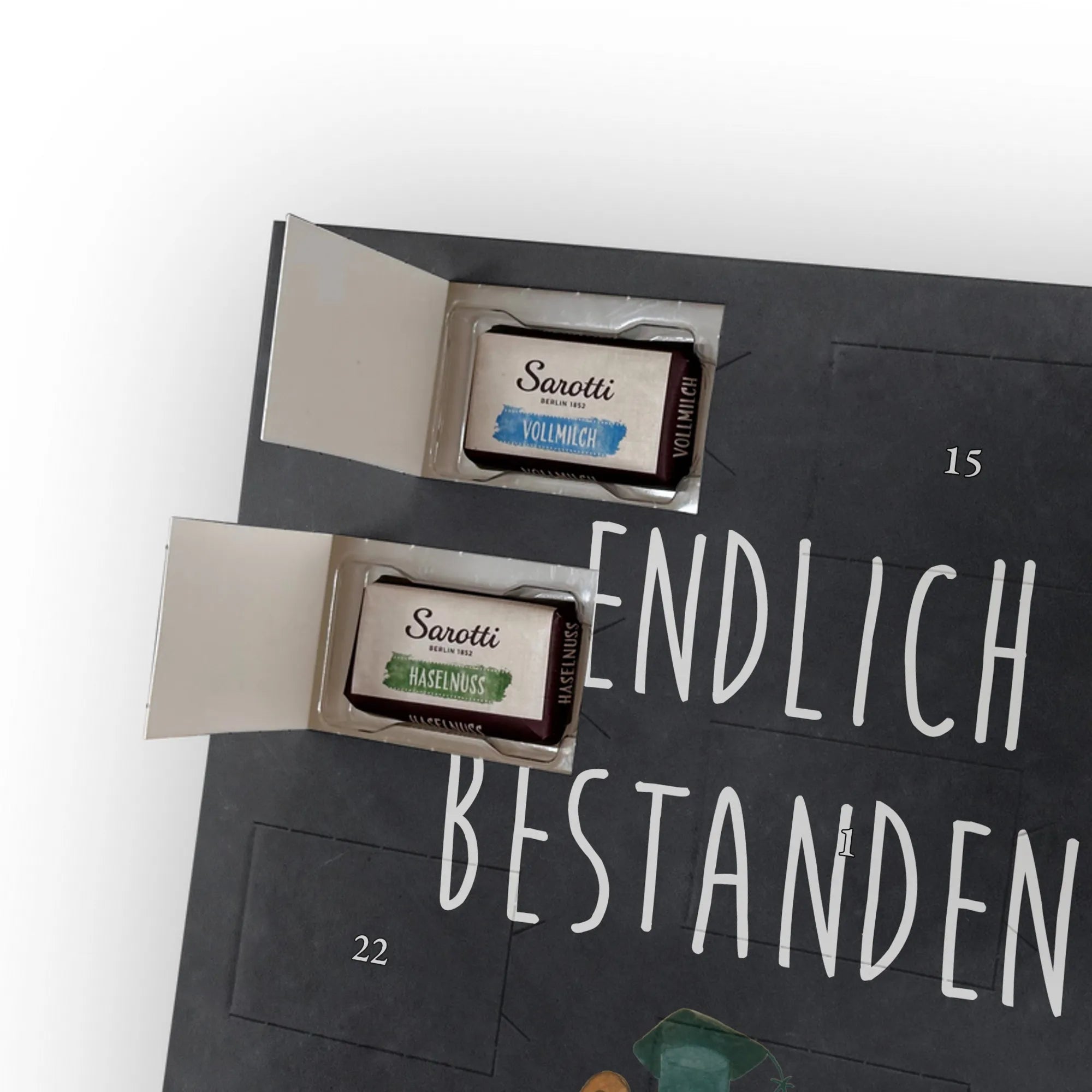 Schoko Foto Adventskalender personalisiert – ein zauberhaftes Geschenk, das Erinnerungen und Geschmack vereint. Mr. & Mrs. Panda haben liebevolle Motive und Sprüche gestaltet, die den Kalender umrahmen; dein Foto setzt die persönliche Note. Für ein optimales Druckbild lade bitte ein Foto mit hoher Auflösung hoch und achte auf einen passenden Bildausschnitt, damit wichtige Details nicht abgeschnitten werden. Bitte nur Bilder verwenden, für die du die Rechte besitzt. Die seidenmatte Oberflächenveredelung sorgt für edle Haptik und die bedruckten Seitenflächen für ein rundum gelungenes Design. Maße: 355 mm x 245 mm x 11 mm – kann aufgehängt oder aufgestellt werden. Wichtiger Hinweis: Wir bearbeiten oder schneiden die Fotos nicht nach; eine Rücknahme personalisierter Foto Artikel ist ausgeschlossen. Gefüllt mit 24 einzeln verpackten Schokoladentäfelchen in den Geschmacksrichtungen Vollmilch, Nougat, Zartbitter und Haselnuss von Sarotti® und Confiserie Heidel®. Insgesamt enthält der Kalender 107 g Markenschokolade. Ideal als Geschenk für Partner, Familie oder Freunde – persönlich, süß und liebevoll verpackt von Mr. & Mrs. Panda.