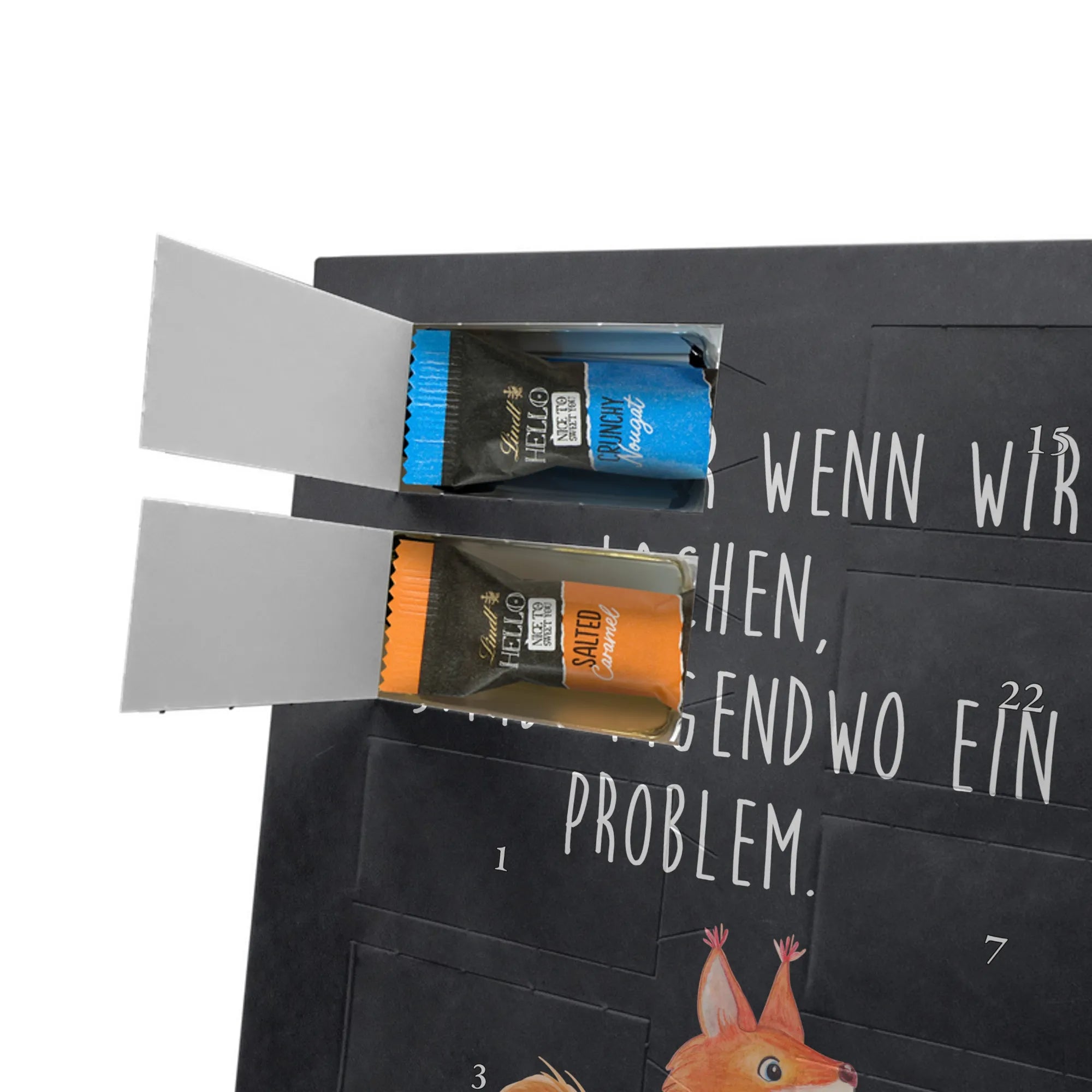 Wunderschöner Personalisierter Schoko Foto Adventskalender von Mr. & Mrs. Panda – perfekt, um dir oder deinen Liebsten die Vorweihnachtszeit zu versüßen. Dieser Adventskalender ist mit liebevollen Motiven und herzlichen Sprüchen von Mr. & Mrs. Panda bedruckt und du kannst ihn ganz einfach mit einem persönlichen Foto individualisieren. Achte bitte darauf, dass dein Foto eine hohe Auflösung hat und der Bildausschnitt passt, damit das Druckergebnis klar und strahlend wird. Lade nur Bilder hoch, an denen du die Bildrechte besitzt oder für die du die Erlaubnis hast. Die brillante Druckqualität mit seidenmatter Oberflächenveredelung sorgt für einen edlen Look, die Seitenflächen sind ebenfalls bedruckt. Maße: 325 mm x 225 mm x 27 mm. Der Kalender enthält 24 einzeln verpackte Schokoladen Mini Sticks in vier verschiedenen Sorten: Karamell-Schokoladenkuchen, Kekse, Knuspriger Nougat und Erdbeer-Cheesecake. Gefüllt mit Lindt Hello Schokolade. Allergene: Milcheiweiß, Milchzucker, Soja, Weizen, Haselnüsse. Kann Mandeln und andere Schalenfrüchte enthalten. Besonderheiten: Der Kalender kann aufgehängt oder aufgestellt werden. Bitte beachte: Die Fotos werden weder aufbereitet noch zugeschnitten – Rücknahme bei personalisierten Foto-Artikeln ist ausgeschlossen. Wir von Mr. & Mrs. Panda wünschen dir eine zuckersüße Adventszeit mit deinem ganz persönlichen Foto-Adventskalender!