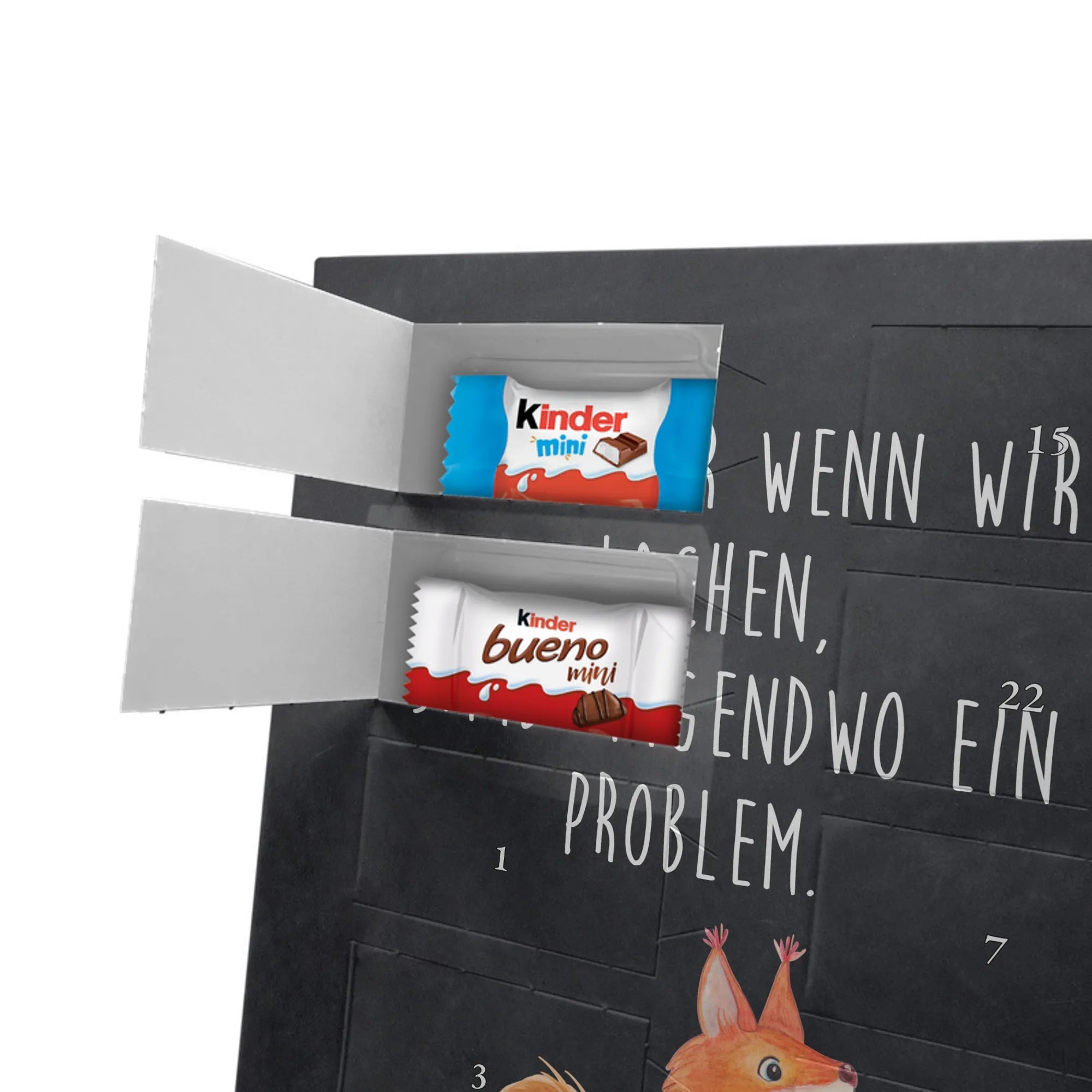 Schoko Foto Adventskalender personalisiert – ein zauberhaftes Produkt von Mr. & Mrs. Panda, das Erinnerungen und Süßigkeiten kombiniert. Gestalte die Vorderseite mit einem persönlichen Foto und überrasche deine Liebsten jeden Tag im Advent. Unsere Designs mit niedlichen Illustrationen und liebevollen Sprüchen runden das Foto perfekt ab. Bitte lade ein hochauflösendes Foto hoch und prüfe den Bildausschnitt, damit das Druckbild optimal wird. Verwende nur Bilder, für die du die Rechte besitzt oder die Freigabe der abgebildeten Personen vorliegt. Beachte: Wir schneiden oder bearbeiten die Fotos nicht; personalisierte Foto-Artikel sind von der Rückgabe ausgeschlossen. Der Kalender besticht durch brillante Druckqualität, seidenmatte Oberflächenveredelung und bedruckte Seitenflächen für ein hochwertiges Finish. Maße: 355 mm x 245 mm x 11 mm. Du kannst den Kalender aufstellen oder ihn an der Wand aufhängen. Gefüllt mit kinder® Schokolade – inklusive kinder® Schoko-Bons, kinder® Bueno mini und kinder® Schokolade mini. Ein warmherziges, persönliches Geschenk mit dem typischen Mr. & Mrs. Panda Flair, das Vorfreude und Geschmack vereint.