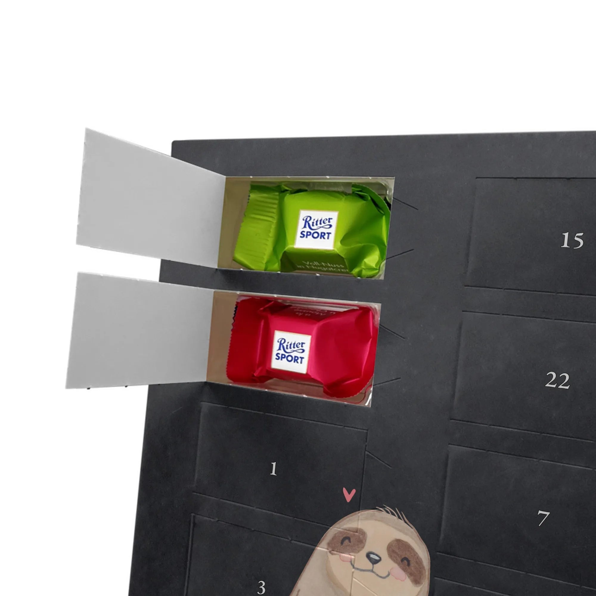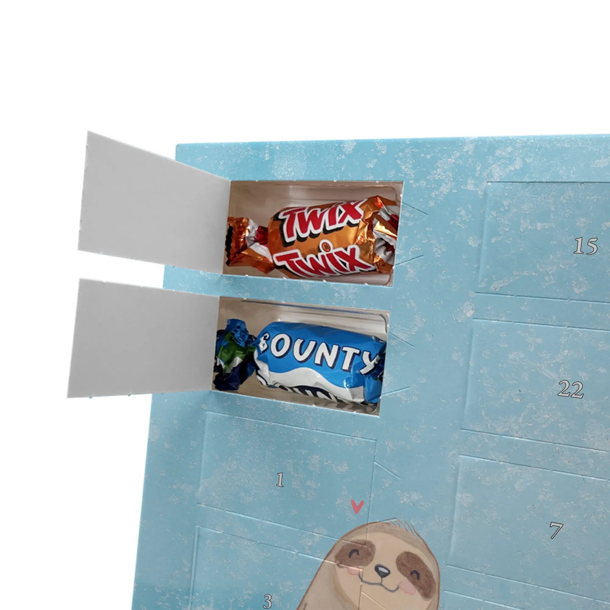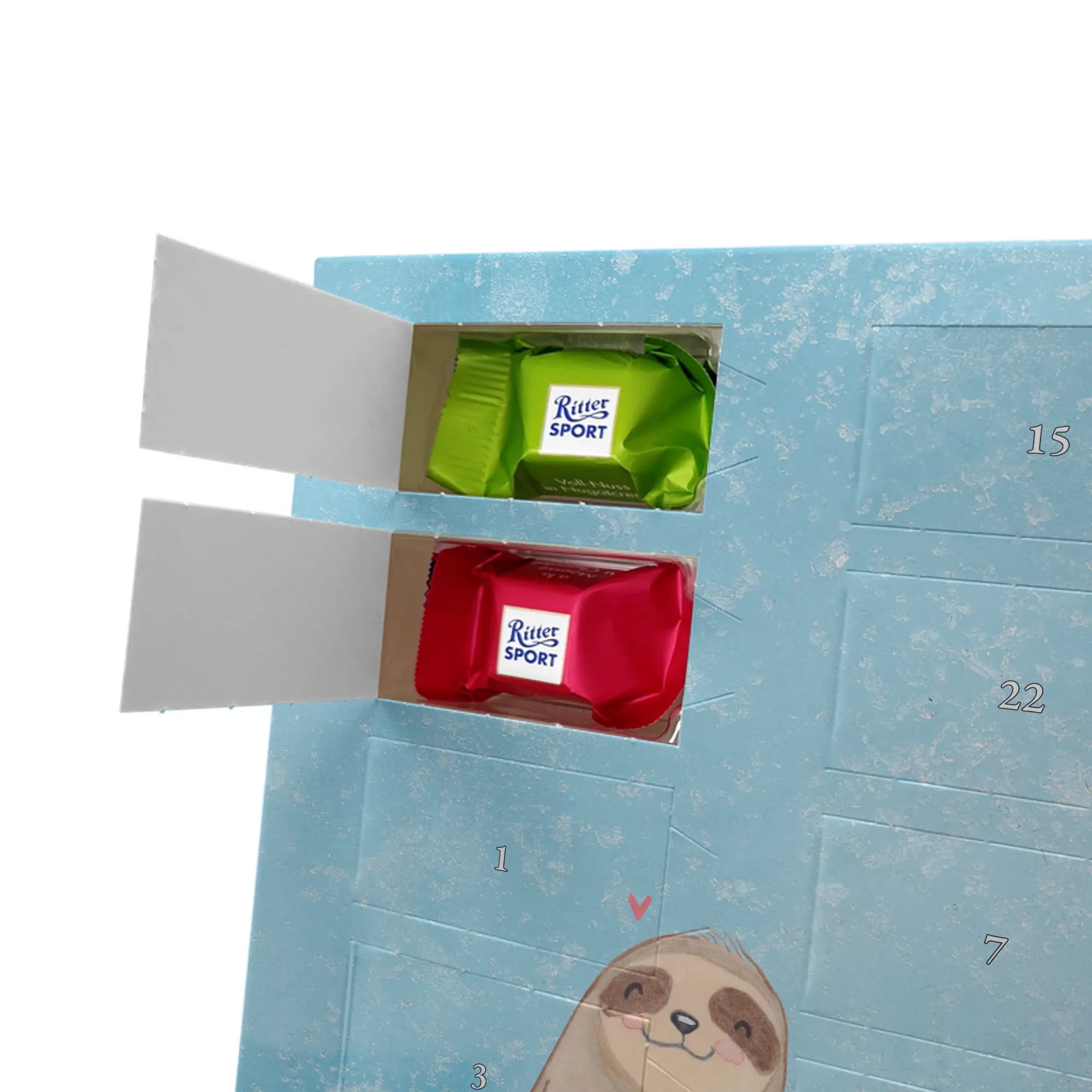 Personalisierter Schoko Foto Adventskalender Faultier Triangel - Ritter Sport - Eisblau