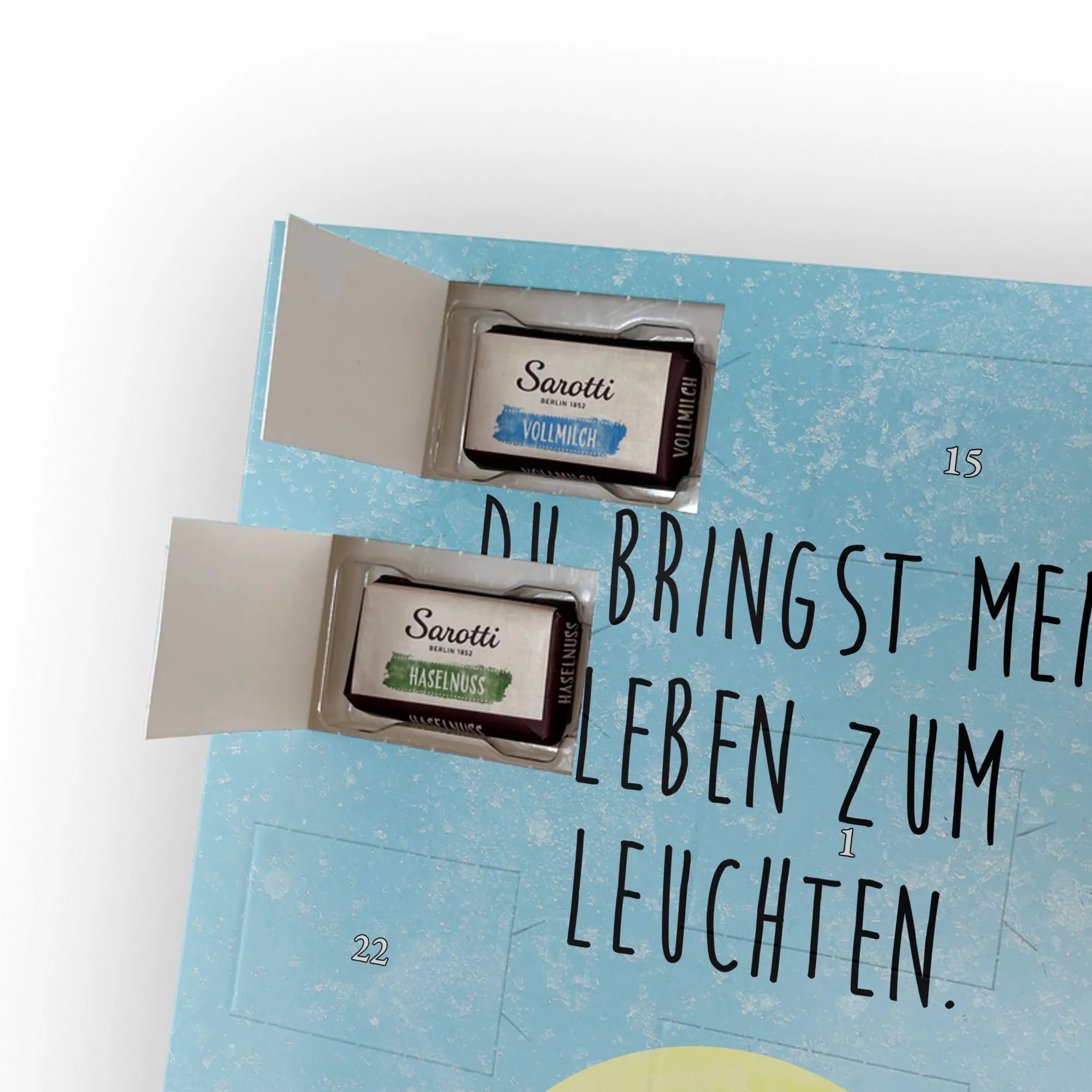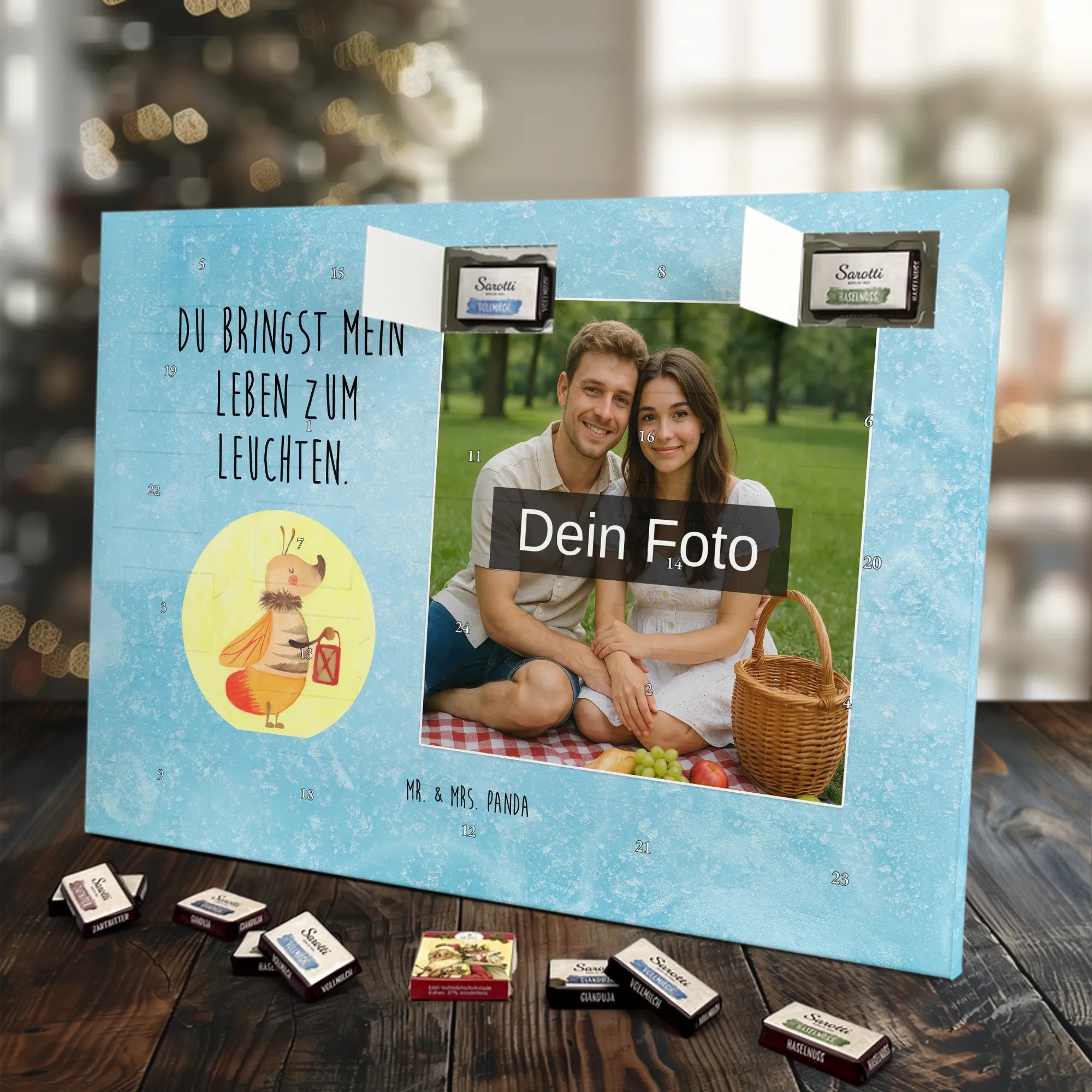 Personalisierter Schoko Foto Adventskalender Glühwürmchen - Sarotti - Eisblau
