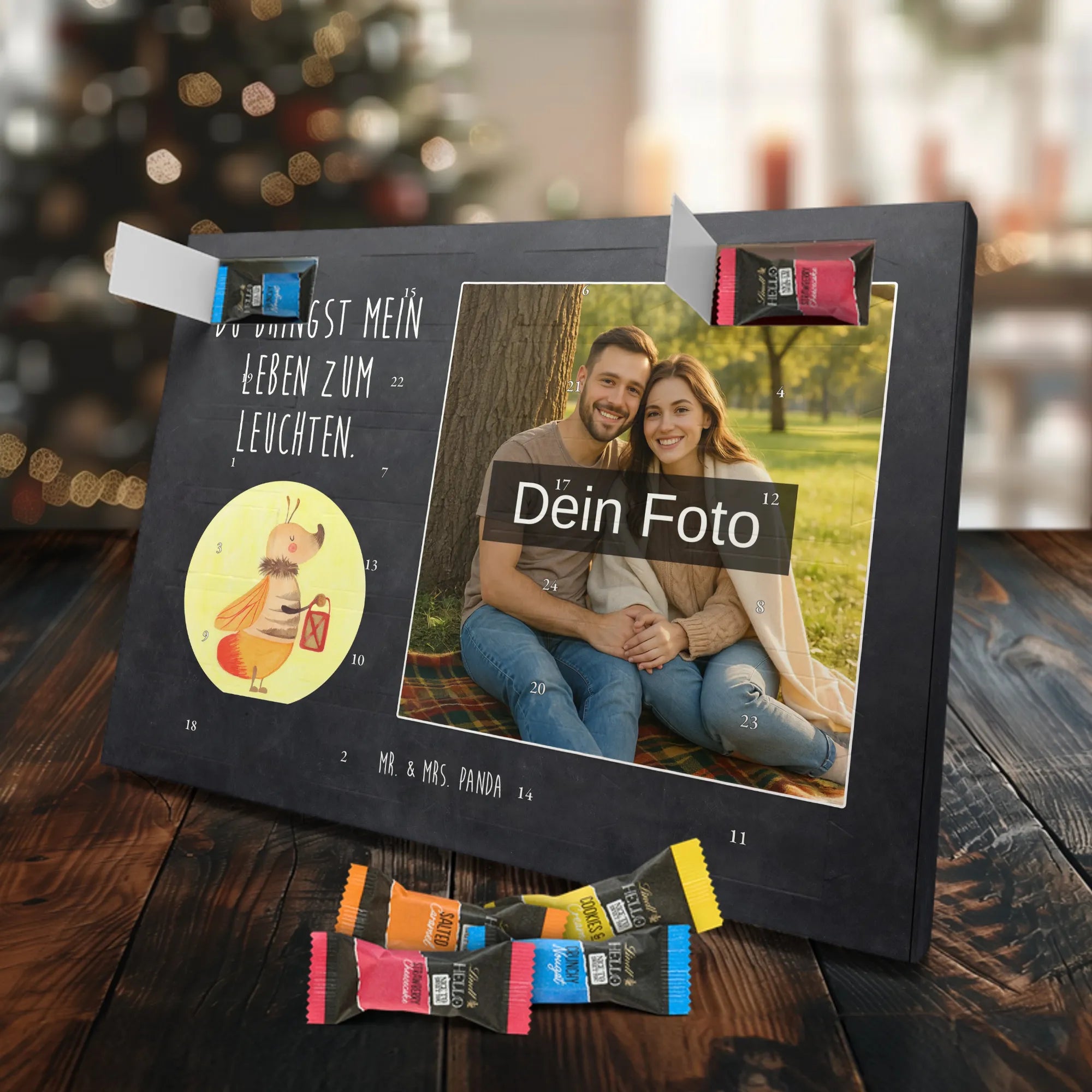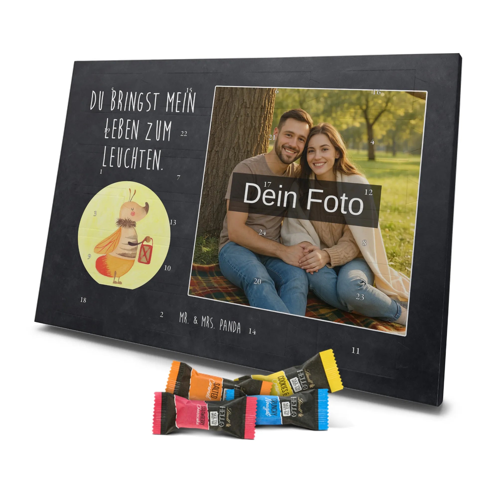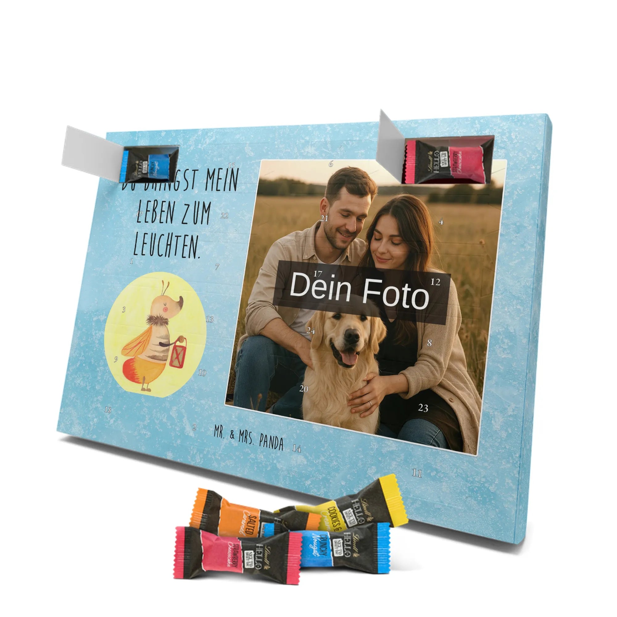 🐼 PERSONALISIERTES ADVENTS-SCHOKOKALENDER: Foto, Mr. & Mrs. Panda Motive & Lindt Hello Minis vereint.