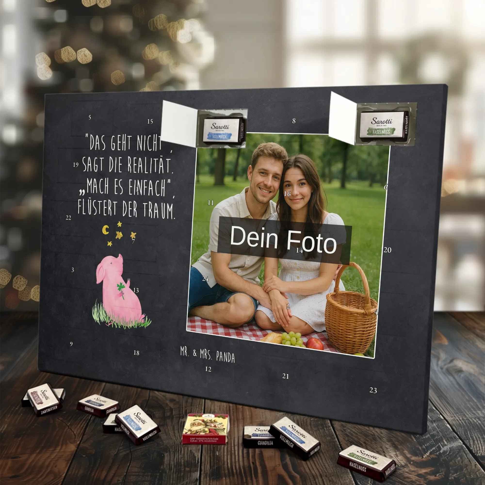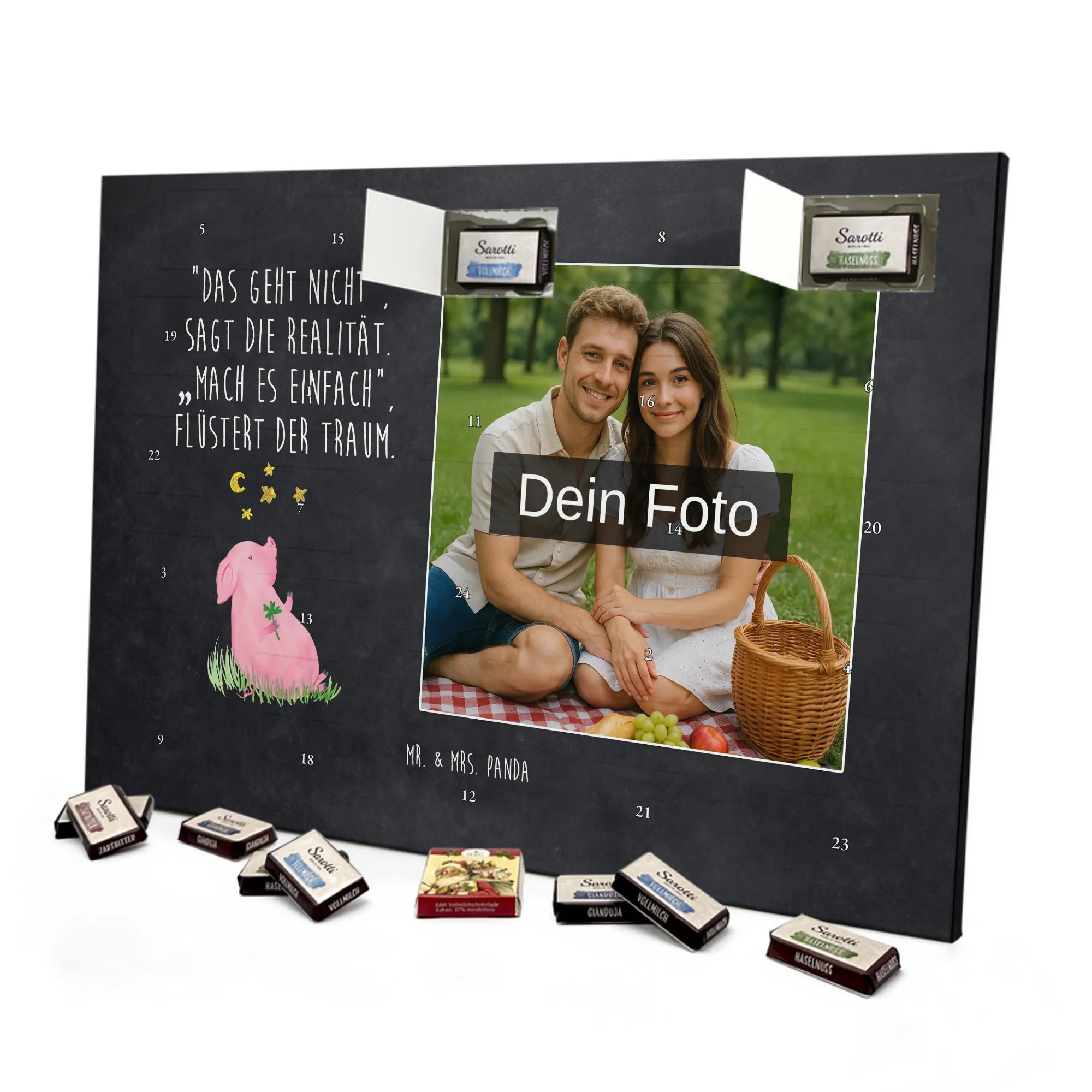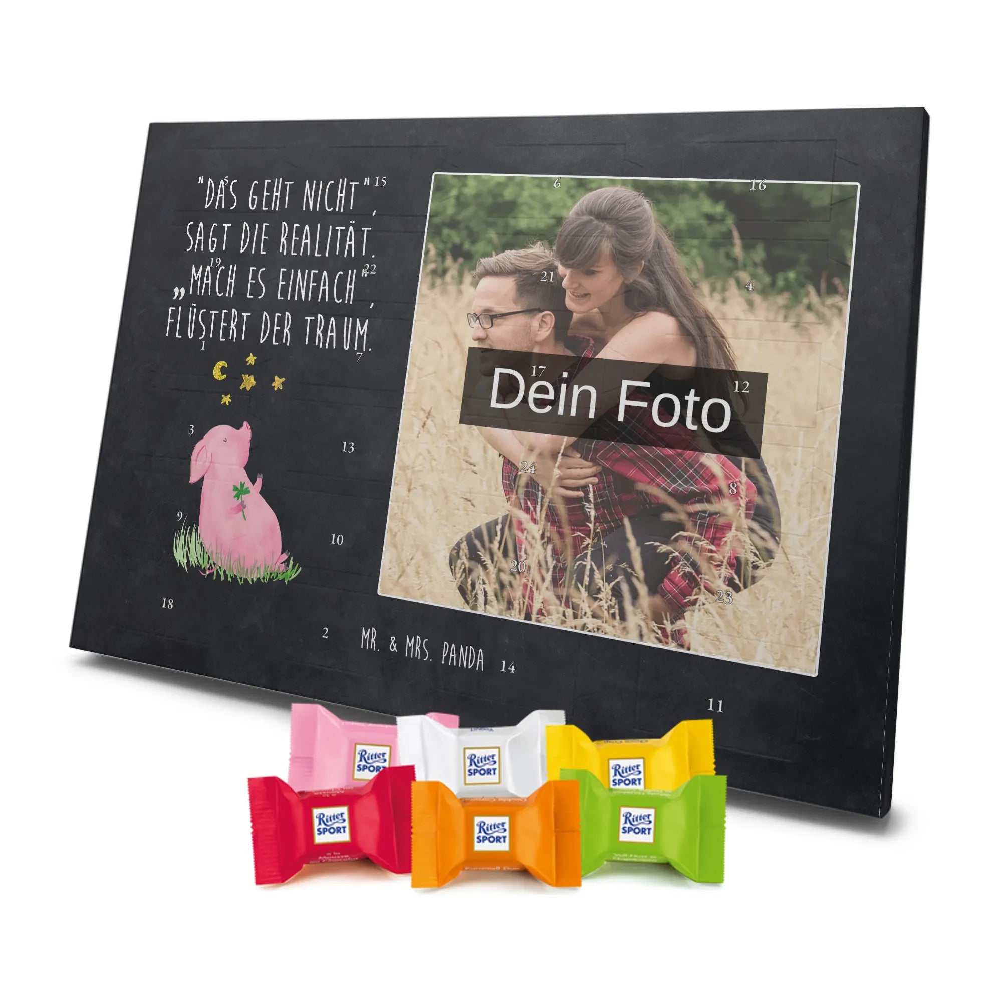 🐼 Personalisierter Schoko Foto Adventskalender mit deinem Foto, Mr. & Mrs. Panda Sprüchen und kinder® Schokolade.