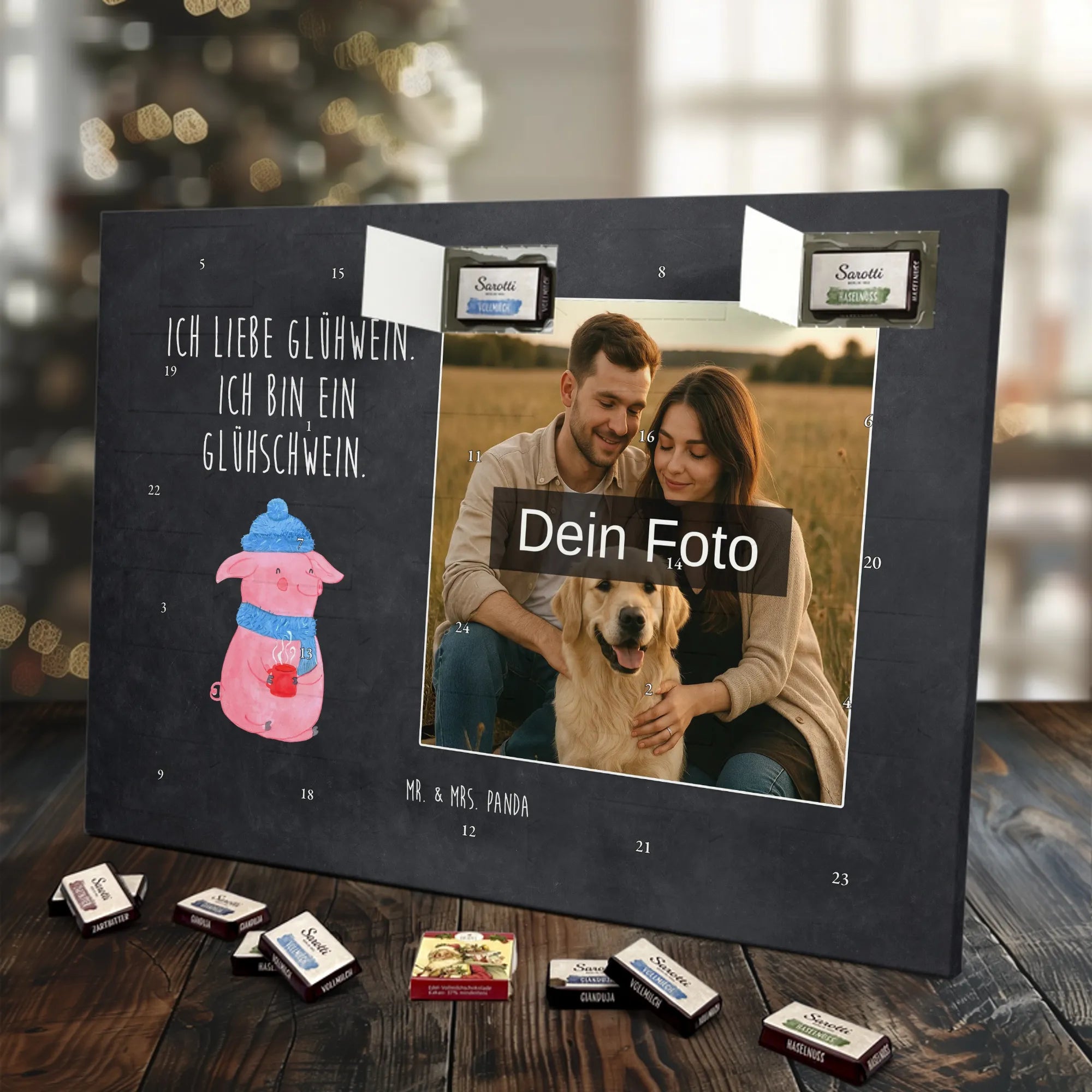 Personalisierter Schoko Foto Adventskalender Schwein Glühwein – Mr. & Mrs. Panda