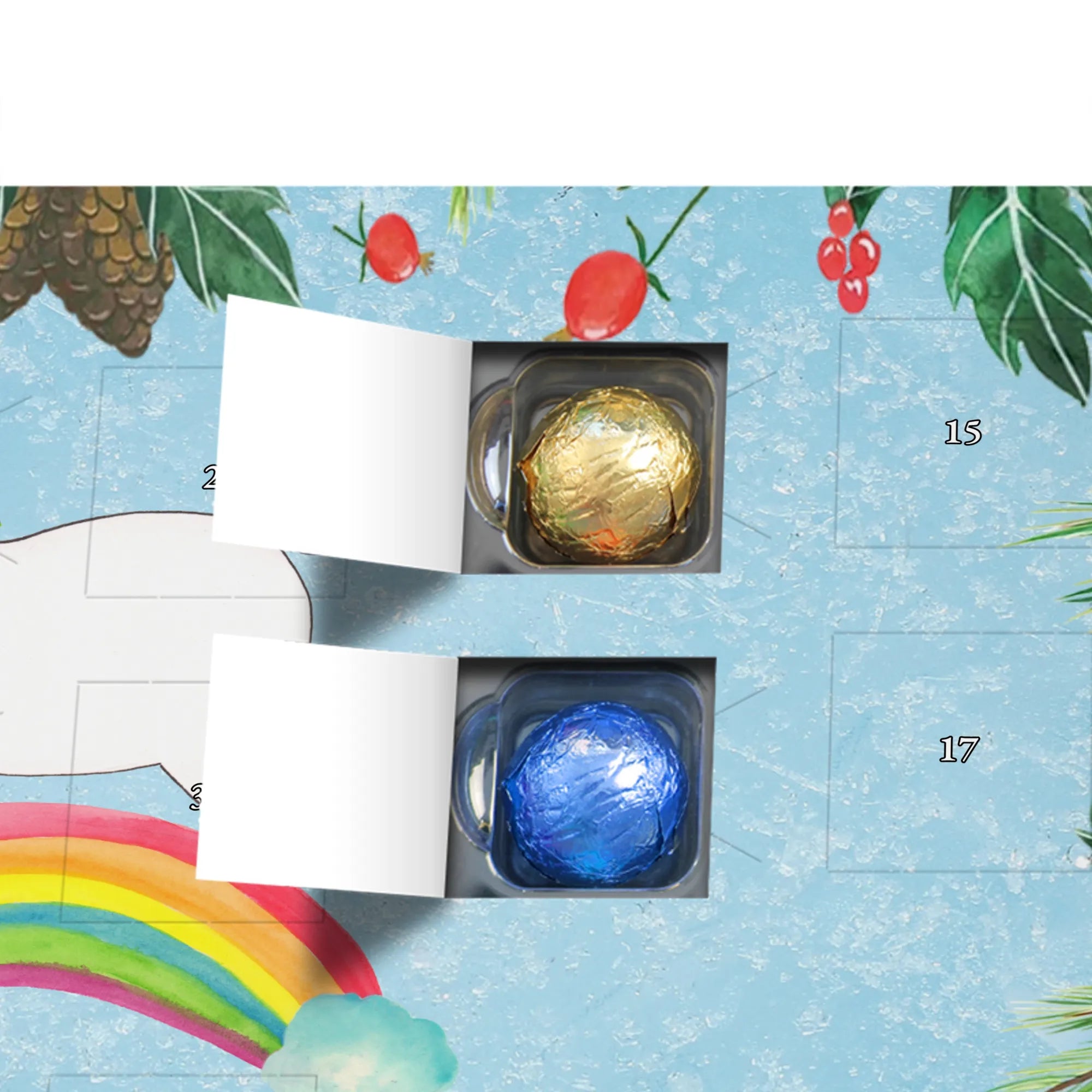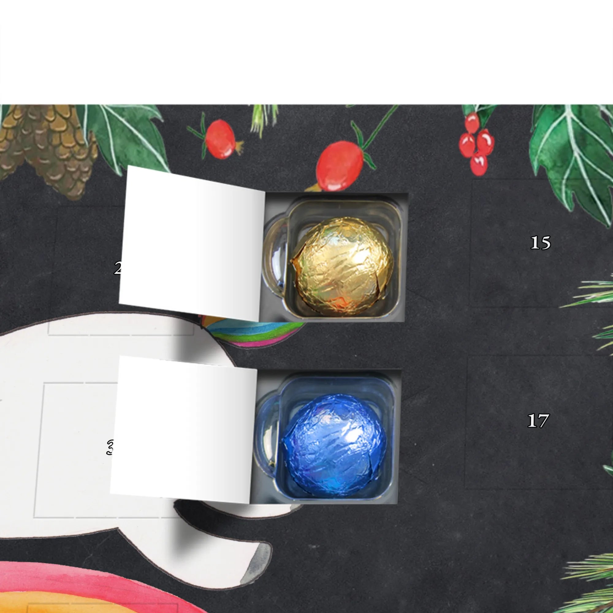 Wunderschöner Adventskalender Schokolade von Mr. & Mrs. Panda – die perfekte Mischung aus Charme und Genuss. Unser Adventskalender Schokolade ist liebevoll gestaltet und bedruckt mit wunderschönen Motiven & Sprüchen von Mr. & Mrs. Panda, die jede Adventszeit verschönern. Der Kalender ist nicht personalisierbar, aber dafür mit viel Liebe zum Detail produziert. Er besticht durch brillante Druckqualität mit seidenmatter Oberflächenveredelung und bedruckte Seitenflächen, die für eine elegante Optik sorgen. Maße: 233 mm x 178 mm x 24 mm. Durch seine stabile Form kannst du ihn aufstellen oder an die Wand hängen – Besonderheit: kann aufgehängt oder aufgestellt werden. Gefüllt mit MARKENNAMEN Schokolade und gefüllt mit leckeren Schokoladenkugeln, bietet er jeden Tag eine leckere Überraschung. Bitte beachte die besonderen Hinweise: (Kann Spuren von Haselnüssen, Mandeln, Gluten und Soja enthalten!), kühl und trocken lagern. Ob als kleines Geschenk, Tischdeko oder Adventsüberraschung für Kinder und Erwachsene – dieser Kalender bringt ein Lächeln in die Vorweihnachtszeit. Viel Spaß beim täglichen Türchenöffnen wünscht dir Mr. & Mrs. Panda!