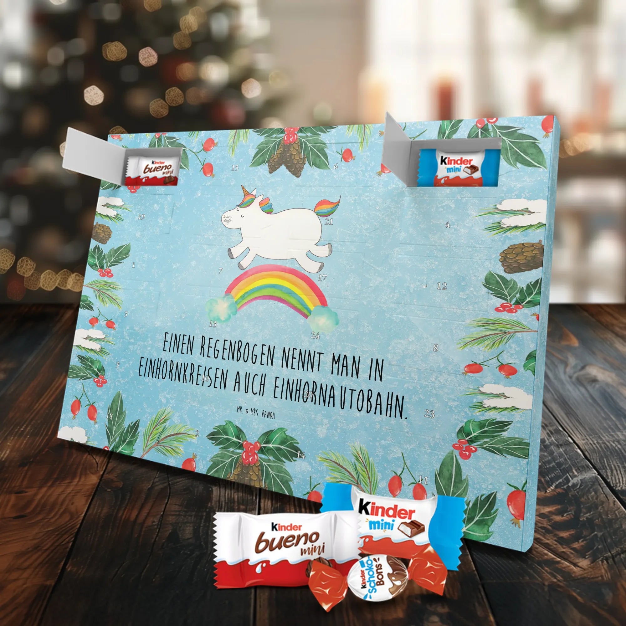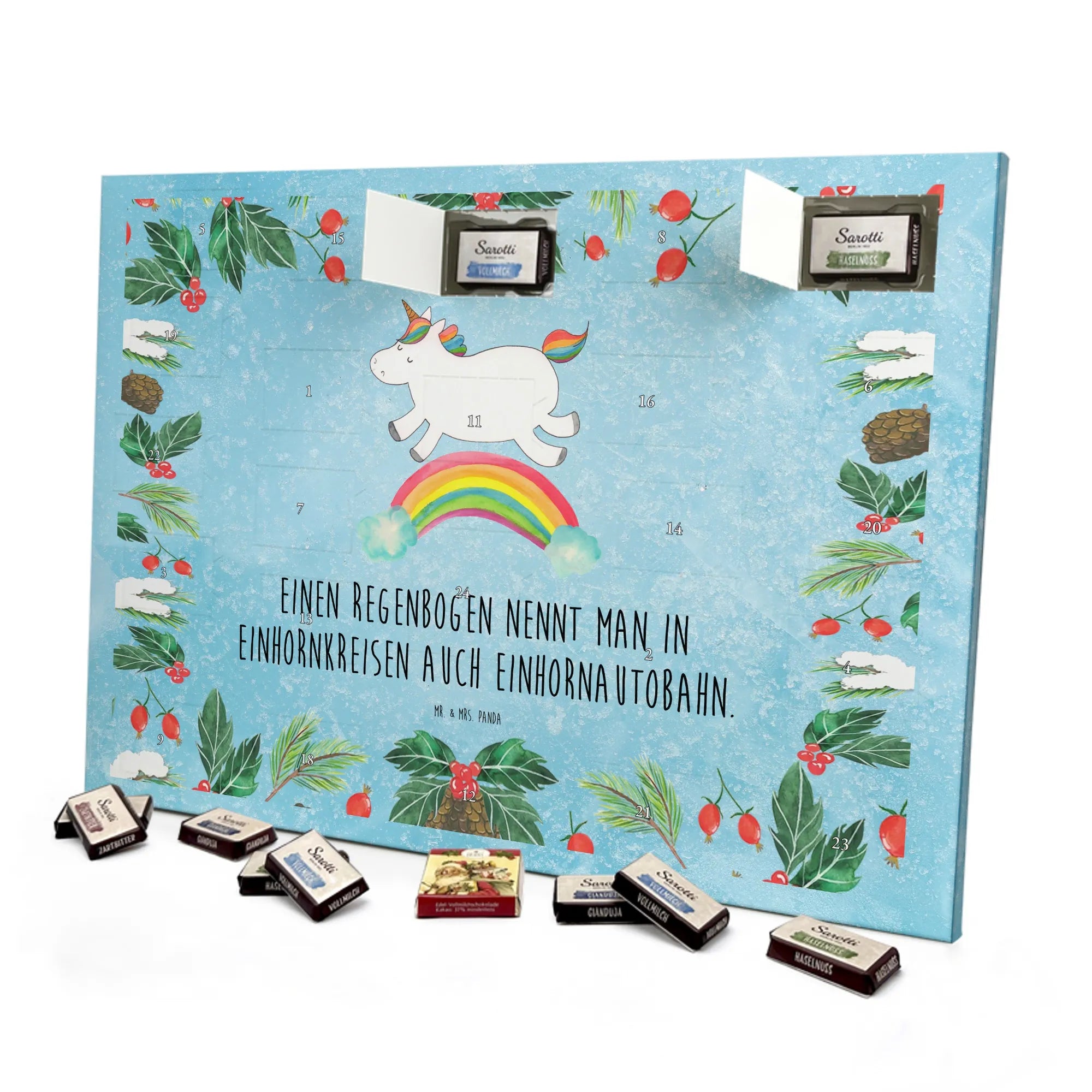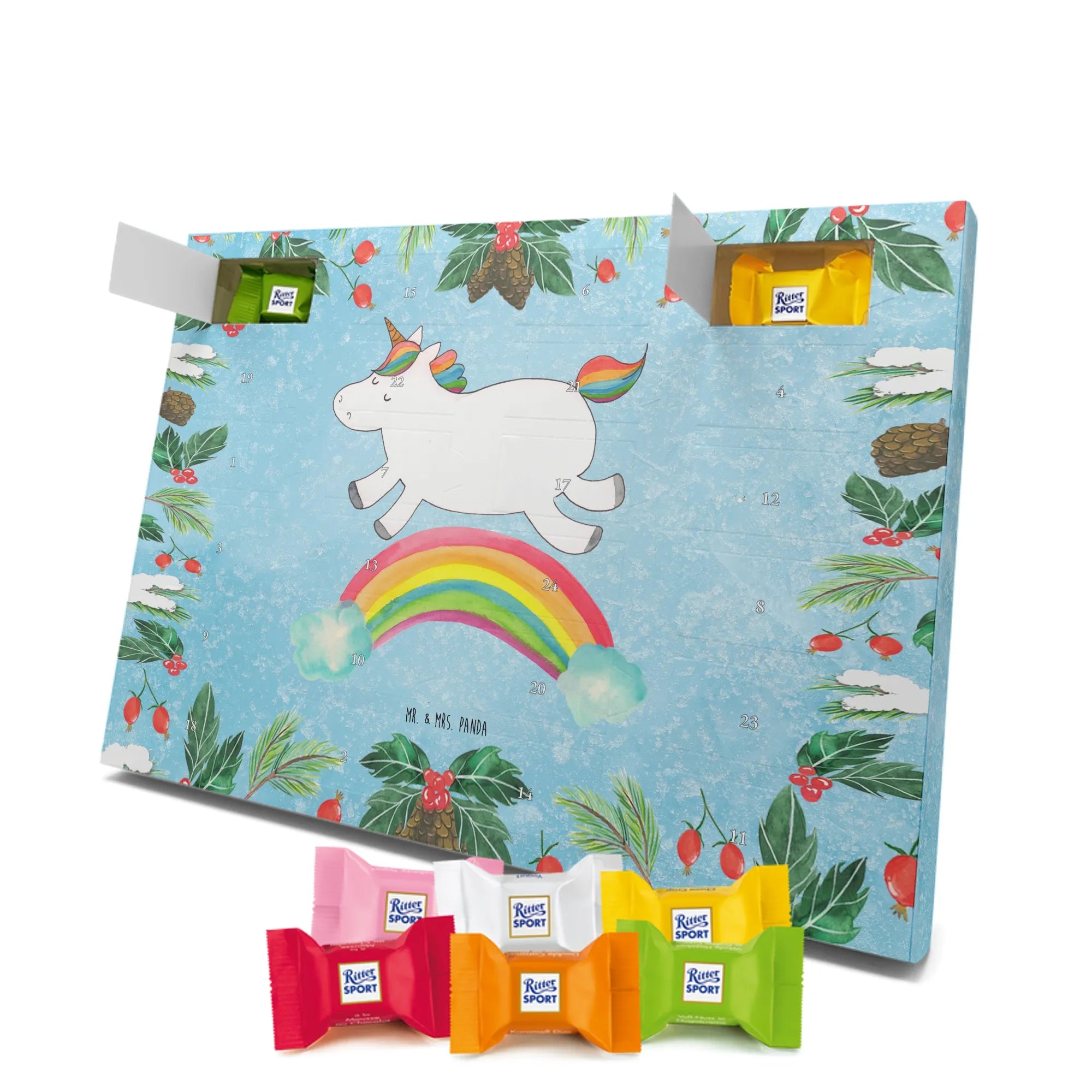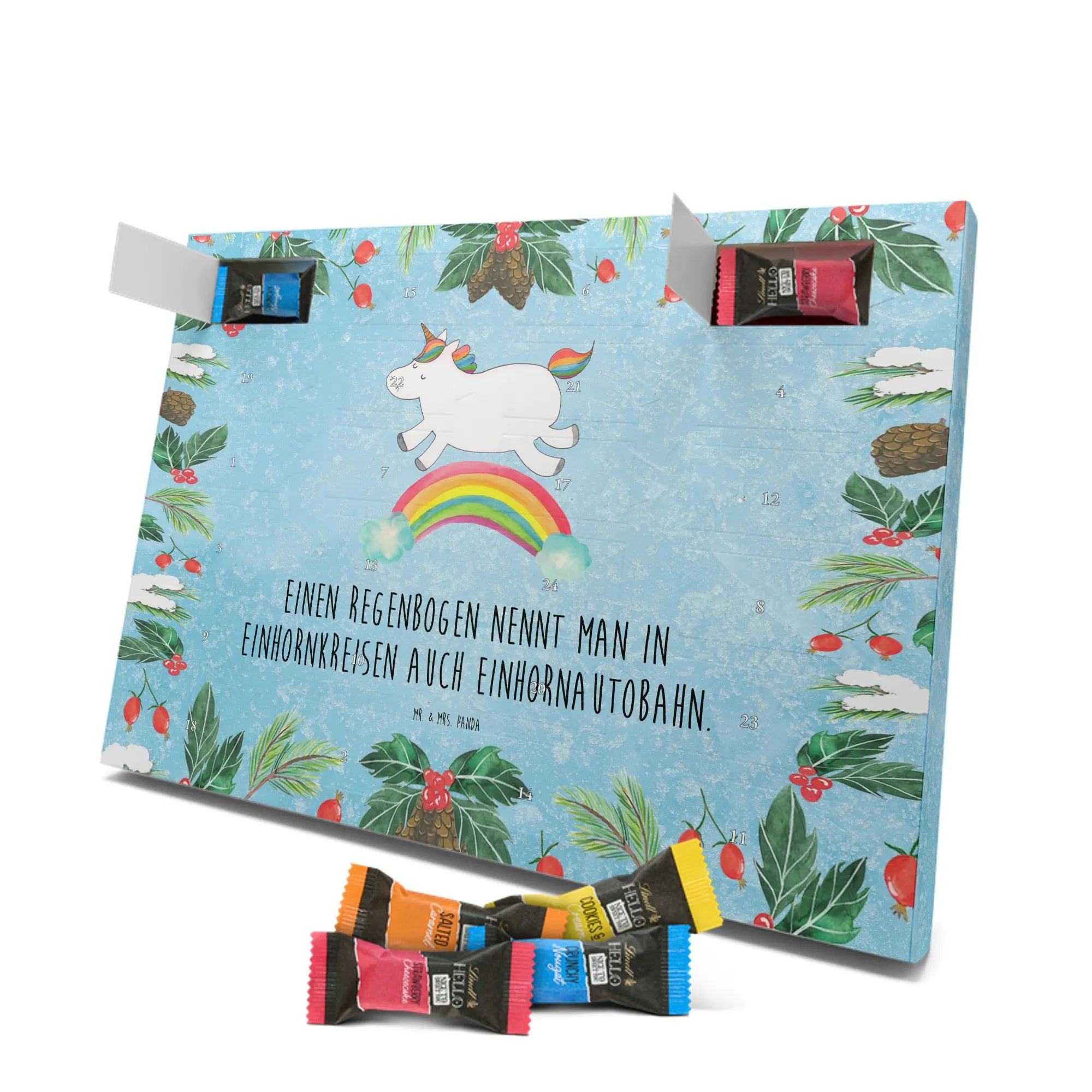 süßigkeiten adventskalender Einhorn Regenbogen - Classic - mit Spruch - Eisblau