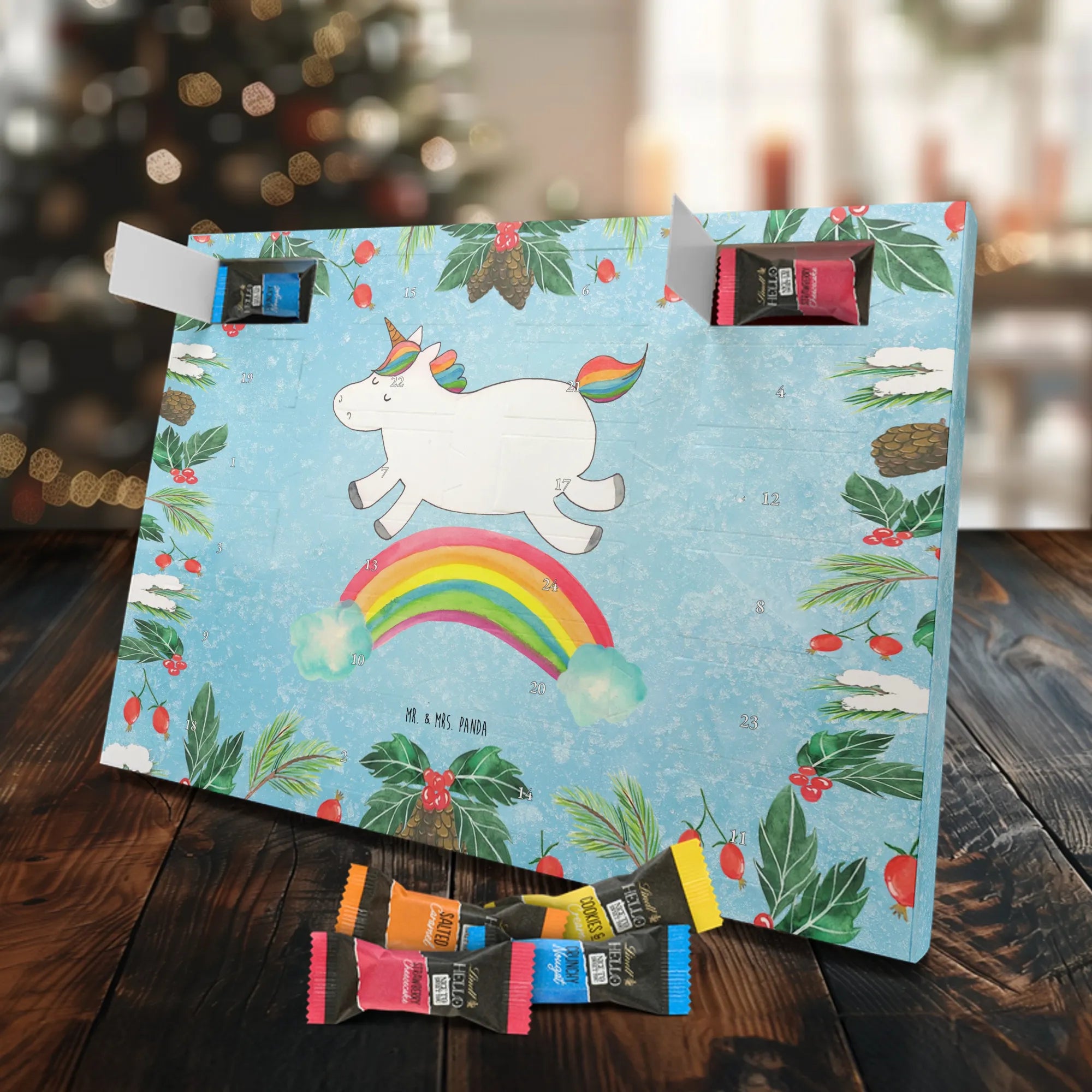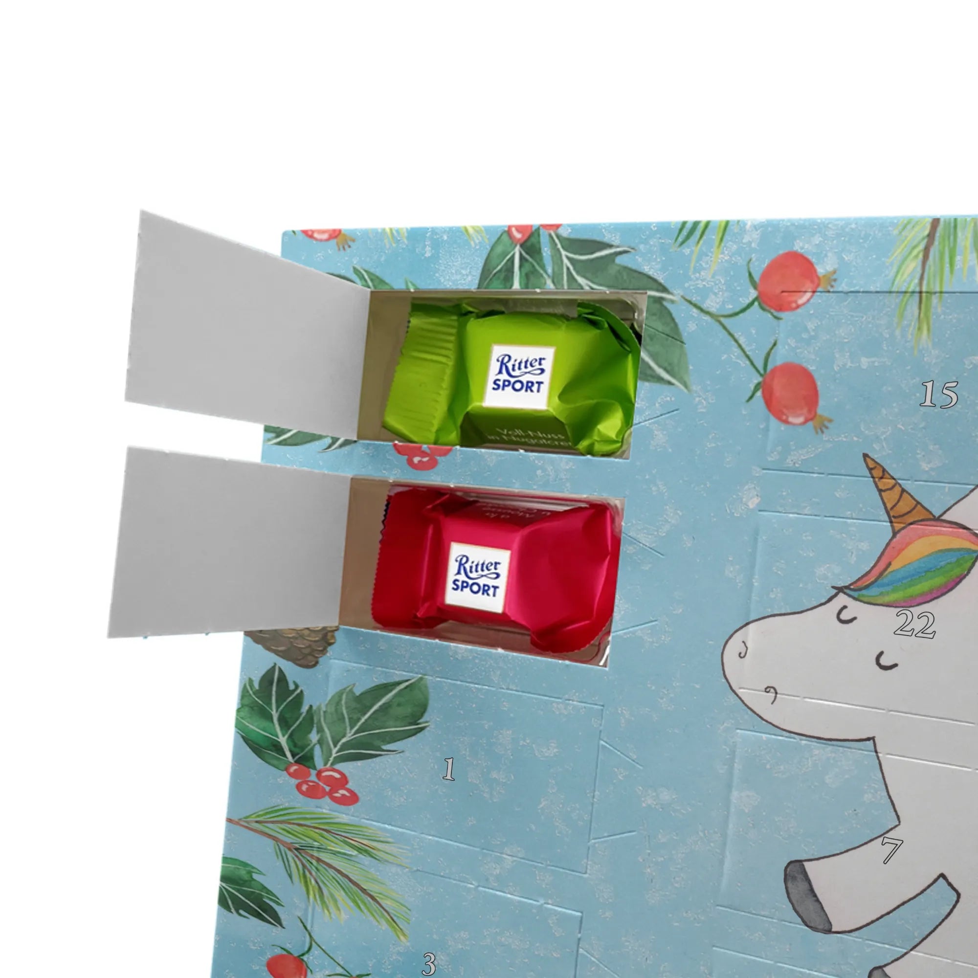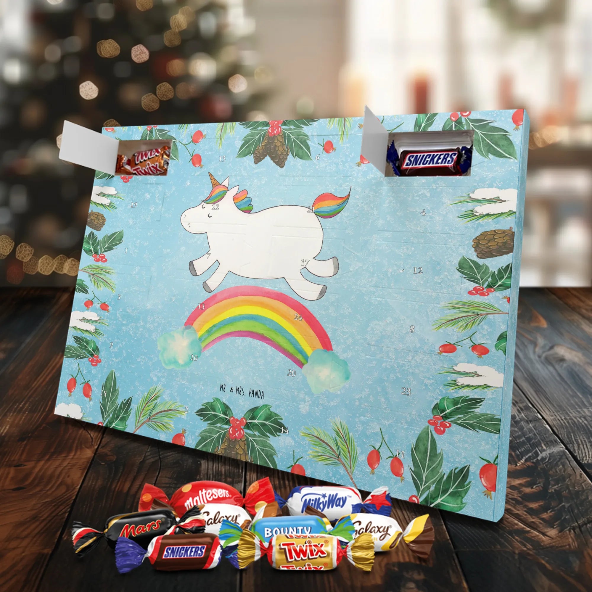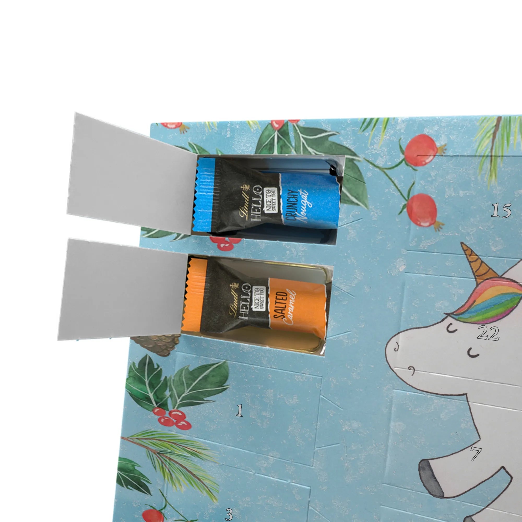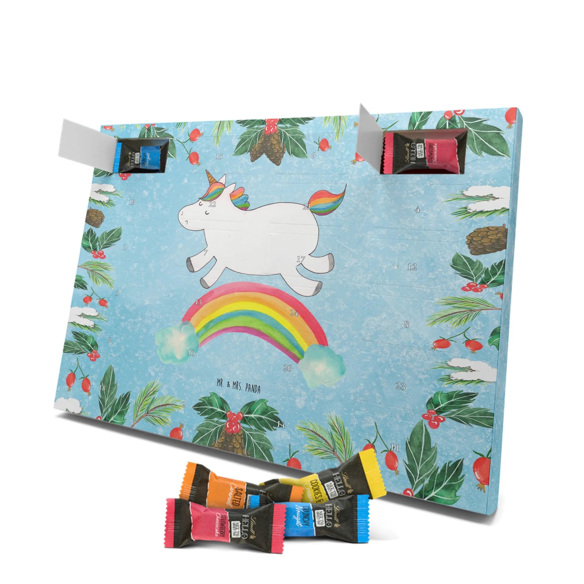 süßigkeiten adventskalender Einhorn Regenbogen - Classic - mit Spruch - Eisblau