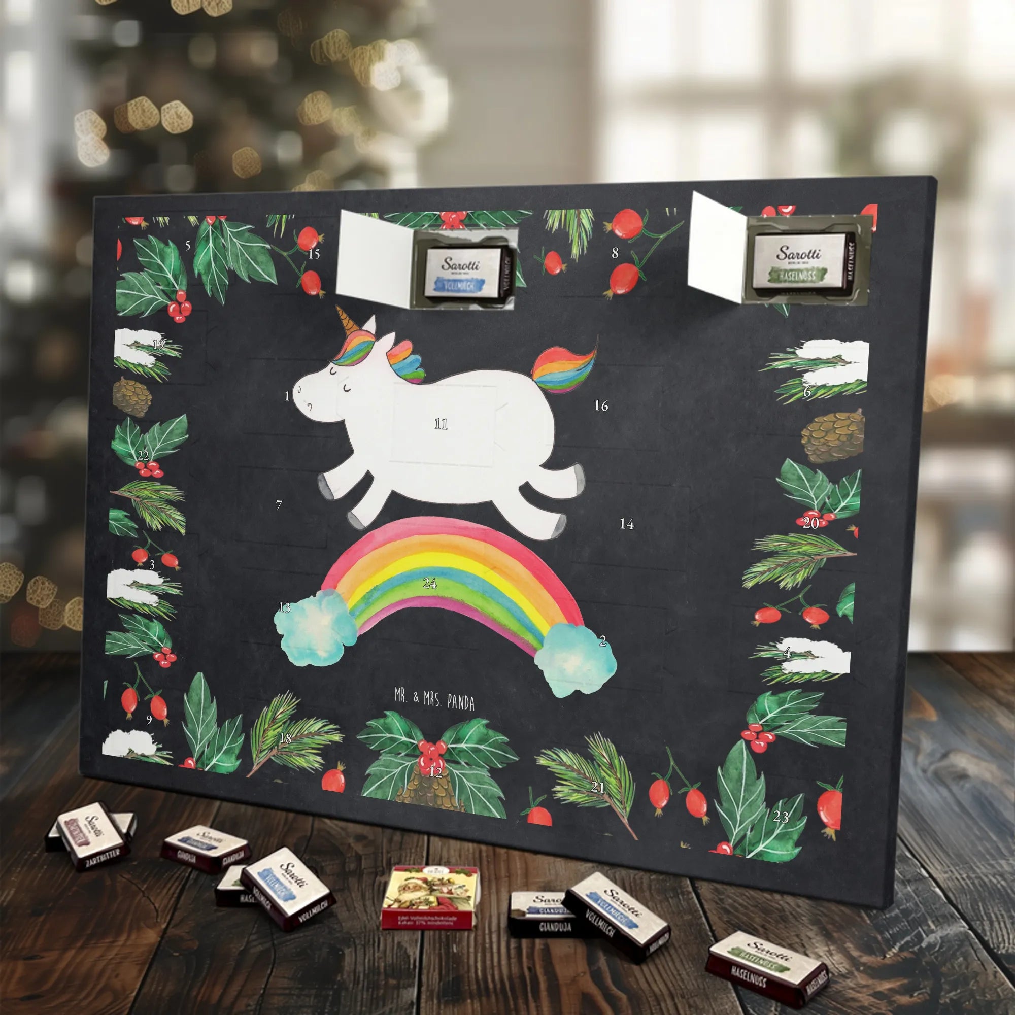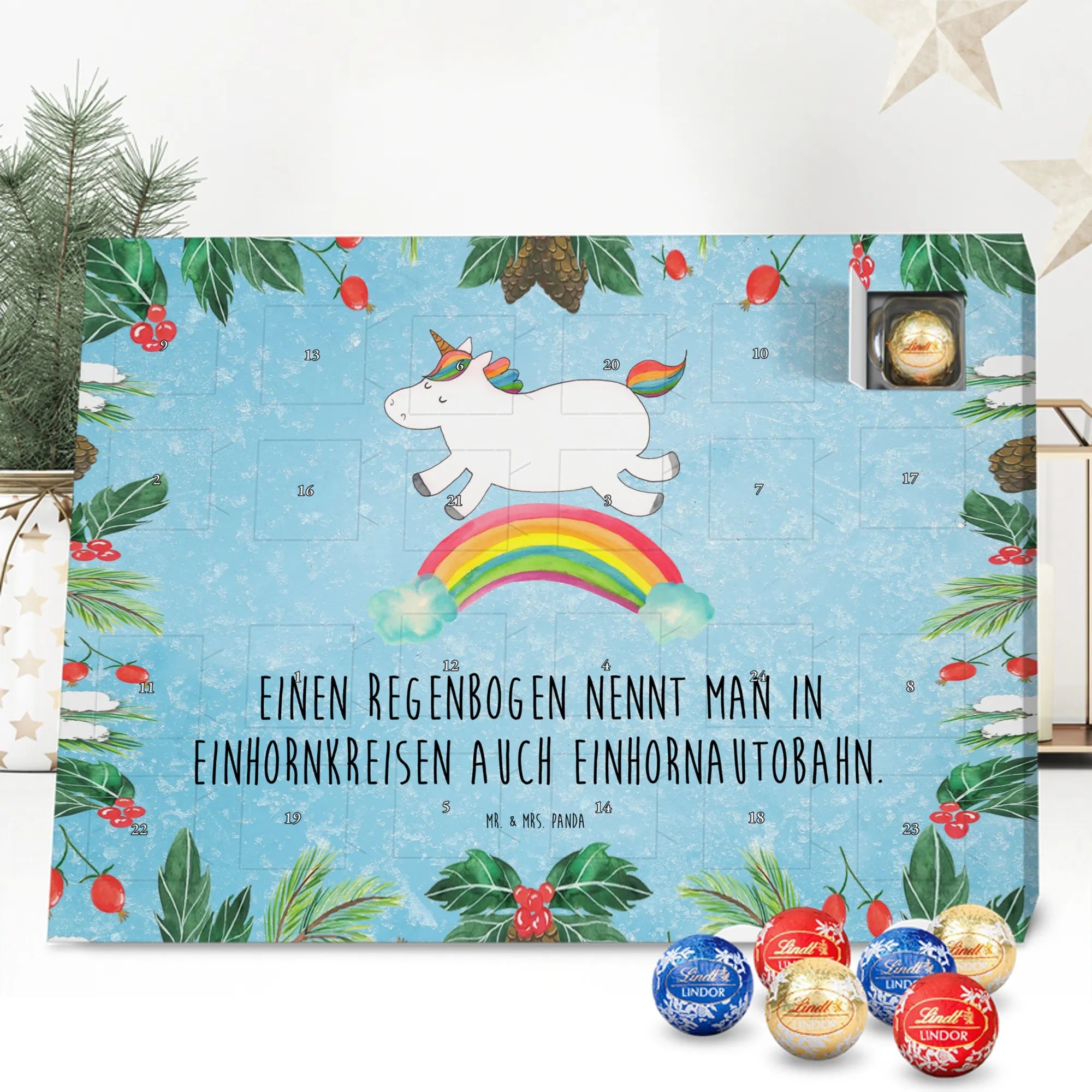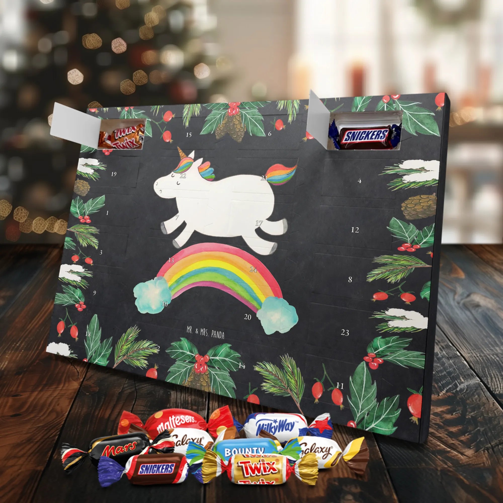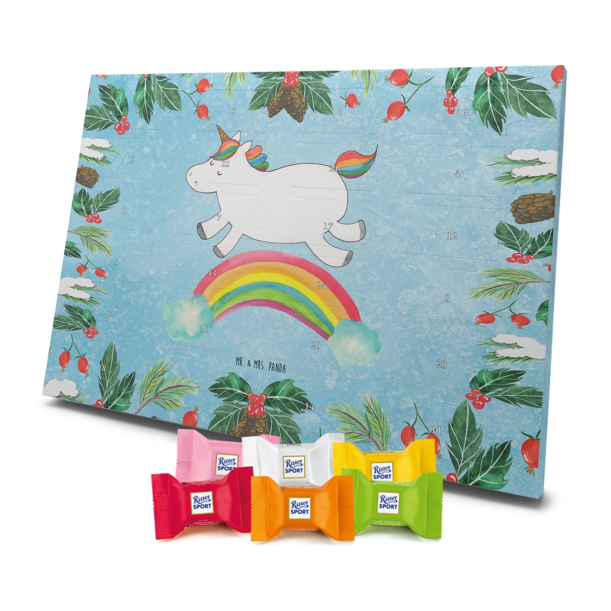 süßigkeiten adventskalender Einhorn Regenbogen - Classic - mit Spruch - Eisblau