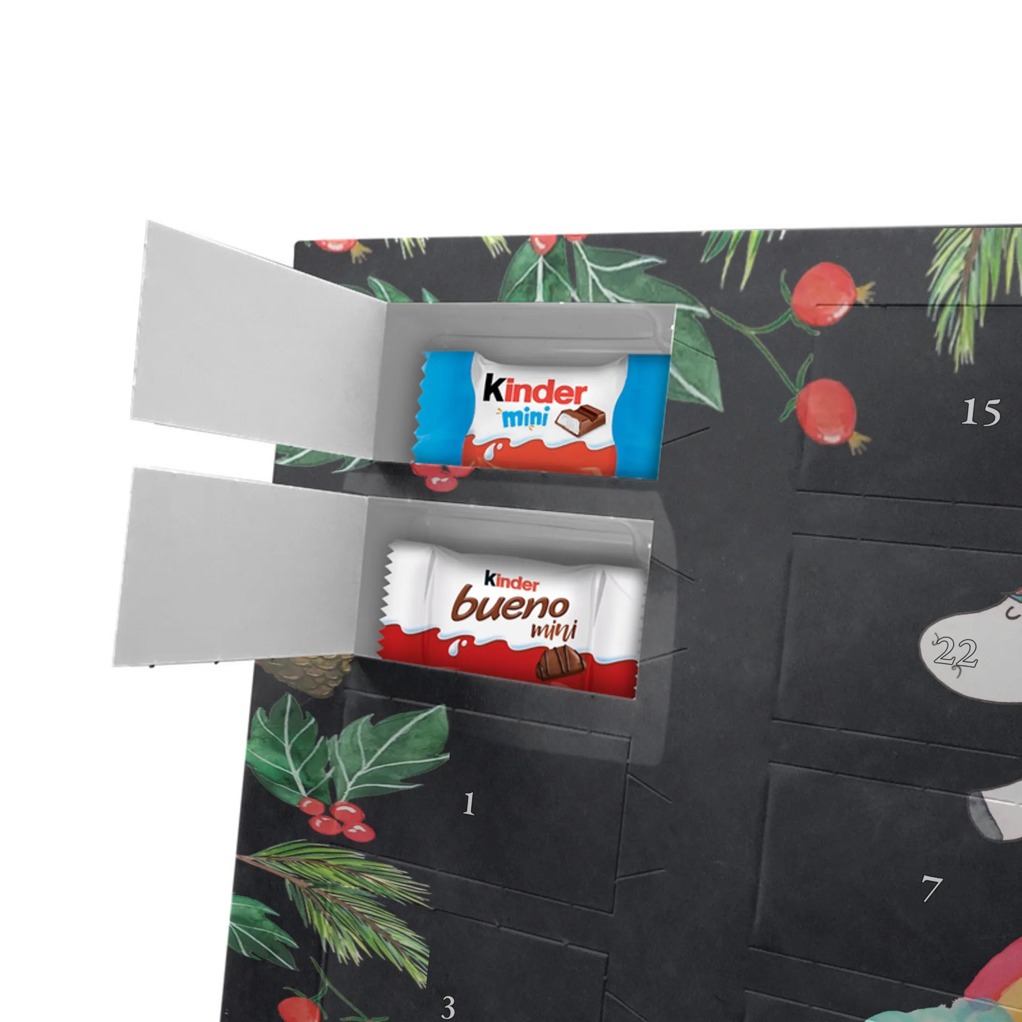 Adventskalender mit Schokolade – liebevoll gestaltet von Mr. & Mrs. Panda. Dieser niedliche Kalender ist bedruckt mit wunderschönen Motiven & Sprüchen von Mr. & Mrs. Panda und trotzdem nicht personalisierbar. Du bekommst brillante Druckqualität mit seidenmatter Oberflächenveredelung sowie bedruckte Seitenflächen, die dem Kalender ein hochwertiges Finish verleihen. Maße: 355 mm x 245 mm x 11 mm. Ein tolles Extra: kann aufgehängt oder aufgestellt werden, sodass du ihn flexibel platzieren kannst. Gefüllt mit Markenname Schokolade: Adventskalender gefüllt mit kinder® Schokolade. Inhalt: kinder® Schoko-Bons, kinder® Bueno mini und kinder® Schokolade mini. Die 24 Türchen sind liebevoll befüllt und sorgen jeden Tag für ein Lächeln – ideal für Kinder, Paare oder als kleines Geschenk für Freunde. Robust und dekorativ zugleich, bringt dieser Adventskalender süße Vorfreude in dein Zuhause. Verschenke oder genieße eine adventliche Zeit voller kleiner, schokoladiger Überraschungen!