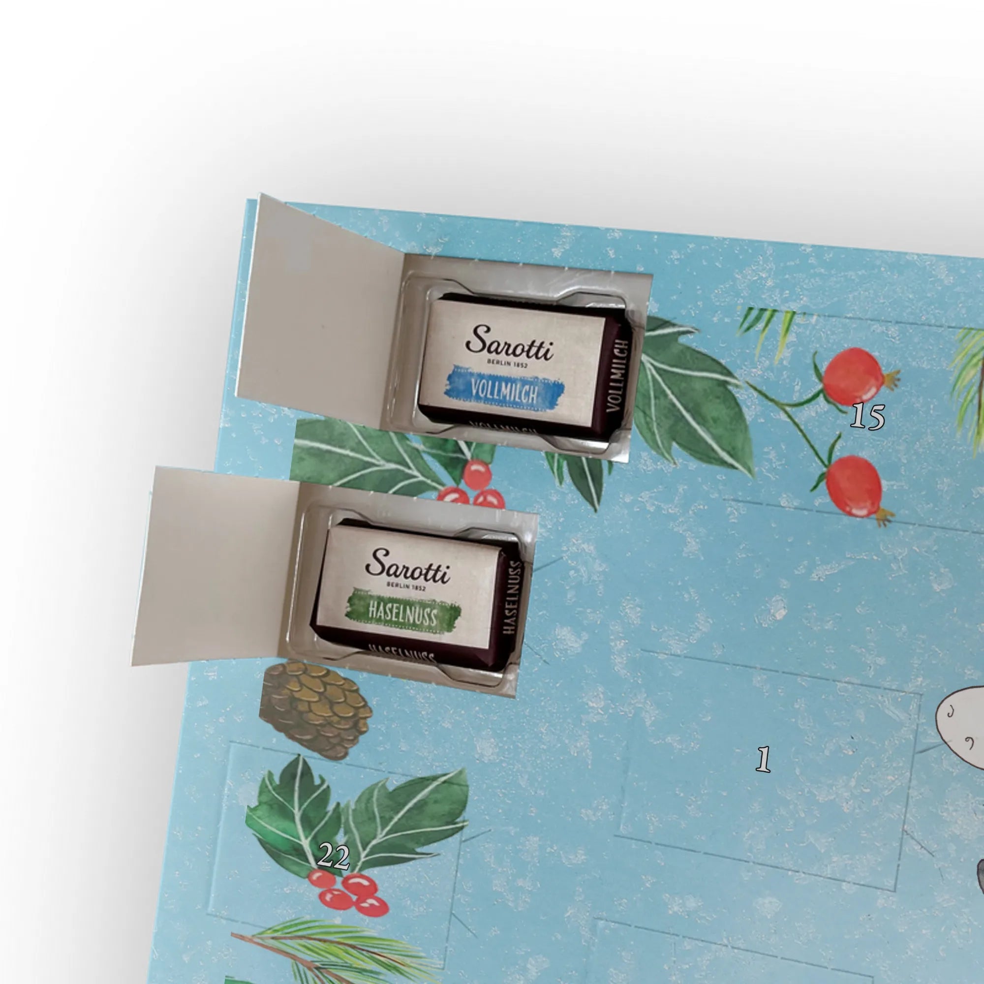🐼 Adventskalender mit Schokolade: Liebevoll bedruckt, seidenmatter Lack, edles Design.