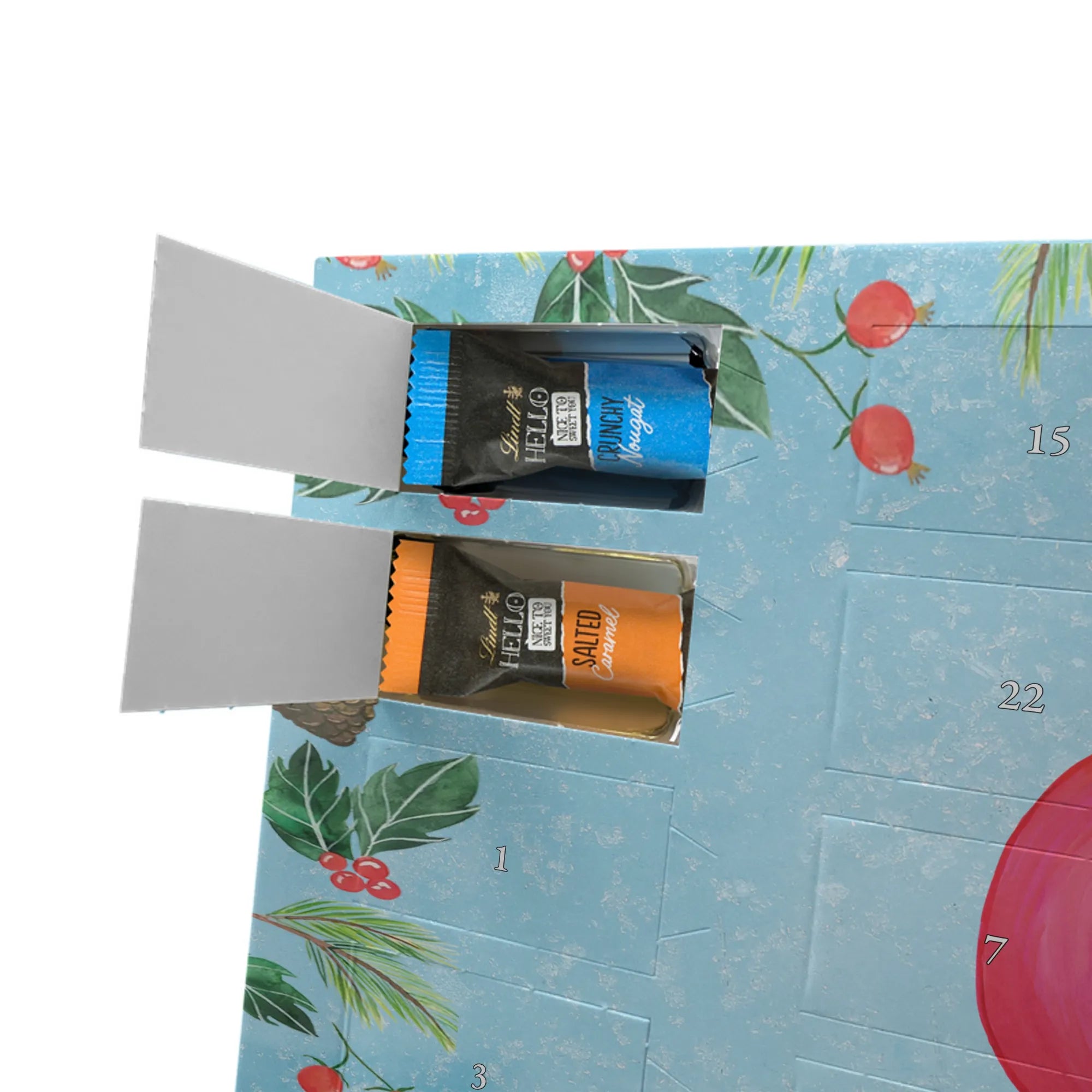 Unser Adventskalender Schokolade von Mr. & Mrs. Panda bringt dir jeden Tag eine kleine Freude. Das Design ist liebevoll bedruckt mit unseren typischen Motiven und lustigen Sprüchen – ein echter Blickfang in deinem Zuhause. Der Kalender ist nicht personalisierbar, überzeugt aber durch brillante Druckqualität und seidenmatte Oberflächenveredelung. Zusätzlich sind die Seitenflächen bedruckt, sodass das Motiv rundum zur Geltung kommt. Maße: 325 mm x 225 mm x 27 mm. Dank seines cleveren Aufhängemechanismus kannst du ihn entweder an die Wand hängen oder frei aufstellen. Gefüllt mit Lindt Hello Schokolade: 24 einzeln verpackte Schokoladen Mini Sticks in den Sorten Karamell-Schokoladenkuchen, Kekse, Knuspriger Nougat und Erdbeer-Cheesecake. Zutatenliste enthält u. a. Zucker, Kakaomasse, Vollmilchpulver, Haselnüsse; Allergene: Milcheiweiß, Milchzucker, Soja, Weizen und Haselnüsse, kann Mandeln und andere Schalenfrüchte enthalten. Perfekt als Geschenk für Kinder, Freunde oder als kleines Mitbringsel in der Adventszeit.