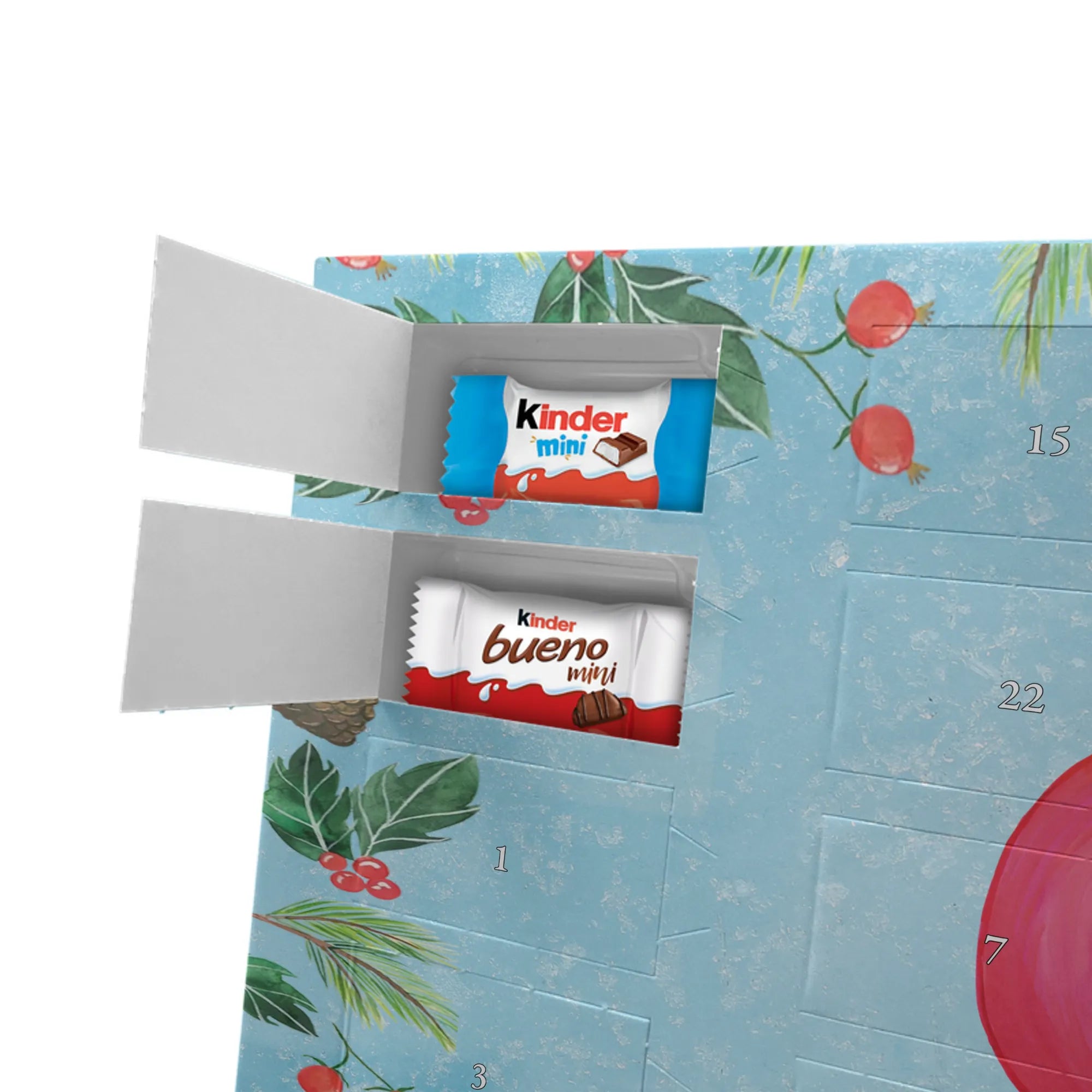 Schoko Adventskalender von Mr. & Mrs. Panda – die charmante Art, sich oder anderen die Adventszeit zu versüßen. Der Kalender ist bedruckt mit wunderschönen Motiven & Sprüchen von Mr. & Mrs. Panda und nicht personalisierbar. Wir legen Wert auf brillante Druckqualität mit seidenmatter Oberflächenveredelung sowie auf bedruckte Seitenflächen für ein stimmiges Gesamtbild. Maße: 355 mm x 245 mm x 11 mm. Besonders praktisch: kann aufgehängt oder aufgestellt werden und passt so in jede Wohnung. Gefüllt mit Markenname Schokolade: Adventskalender gefüllt mit kinder® Schokolade. Inhalt: kinder® Schoko-Bons, kinder® Bueno mini und kinder® Schokolade mini. Die 24 Türchen sind mit kleinen Schoko-Überraschungen bestückt und schaffen jeden Tag Vorfreude. Ob als Geschenk für Kinder, Partner oder als nette Aufmerksamkeit für Kolleginnen und Kollegen – dieser Kalender macht Freude. Robust, schön gestaltet und sofort einsatzbereit für die süßeste Zeit des Jahres!