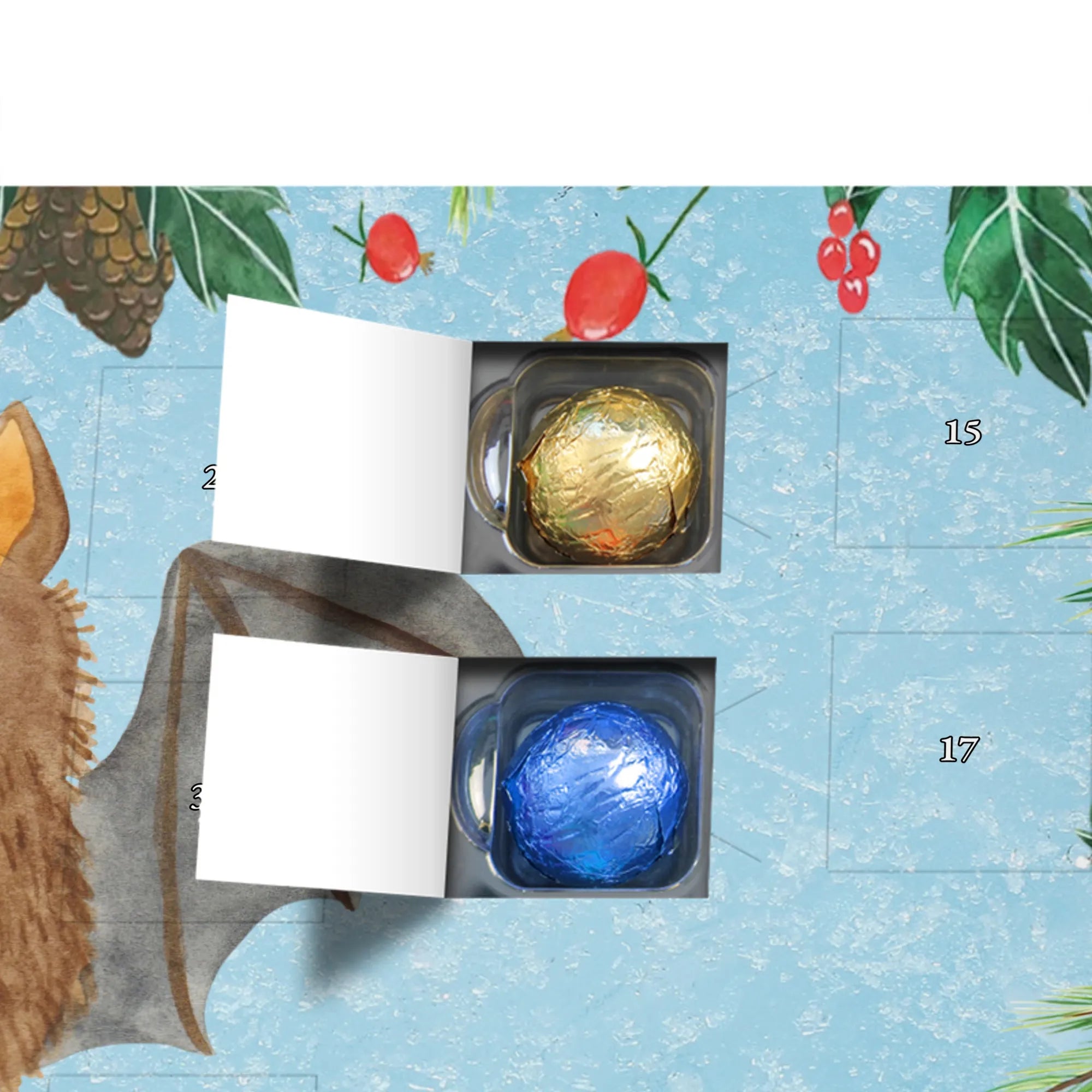 🐼 Adventskalender mit Schokolade, liebevoll bedruckt, seidenmatt veredelt.