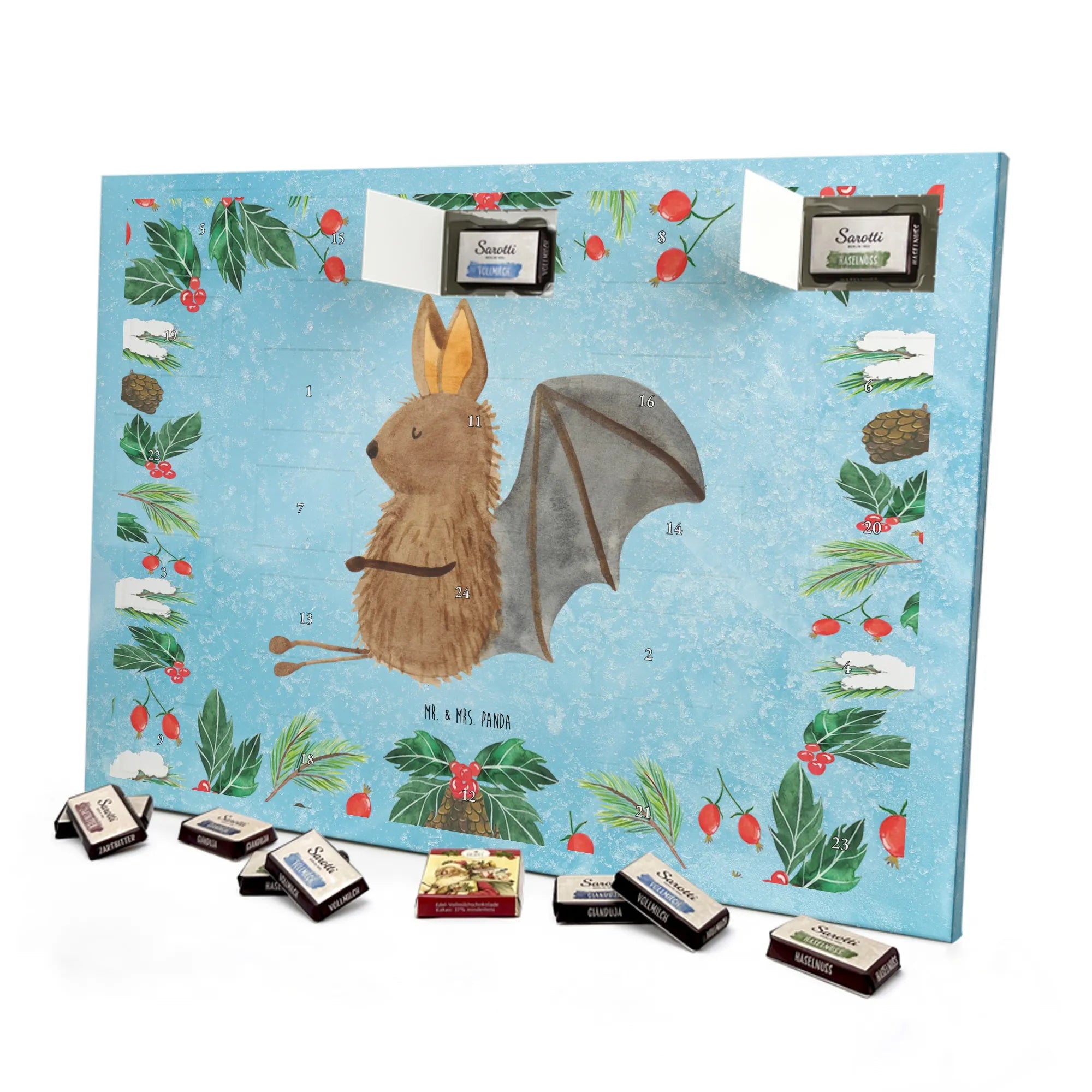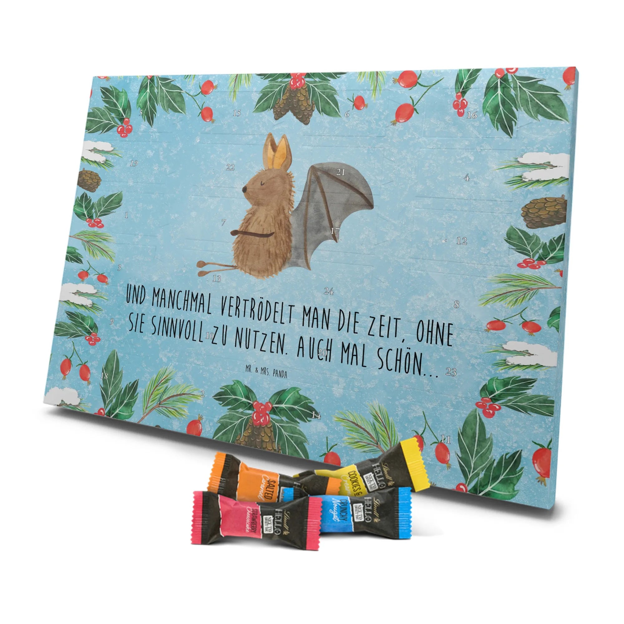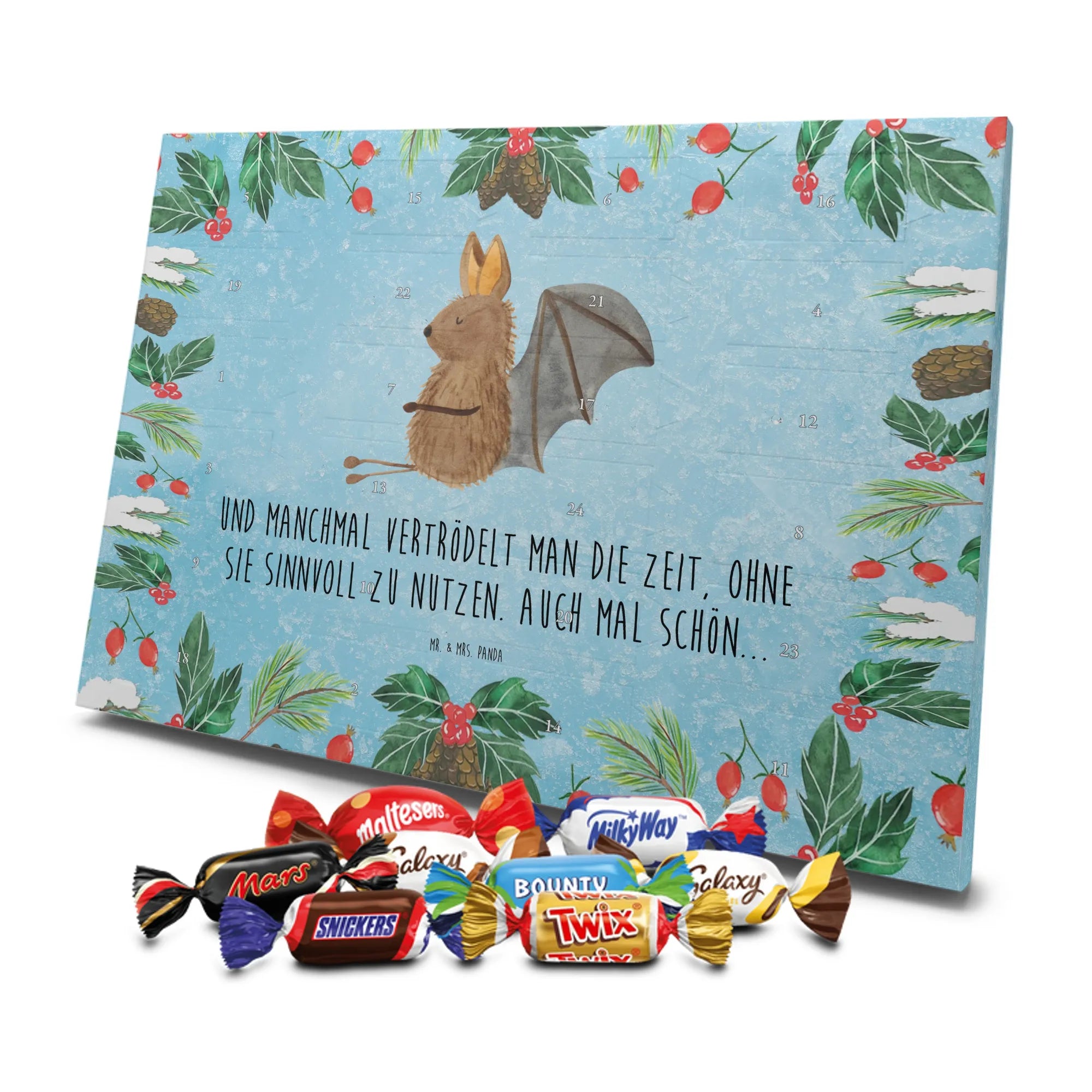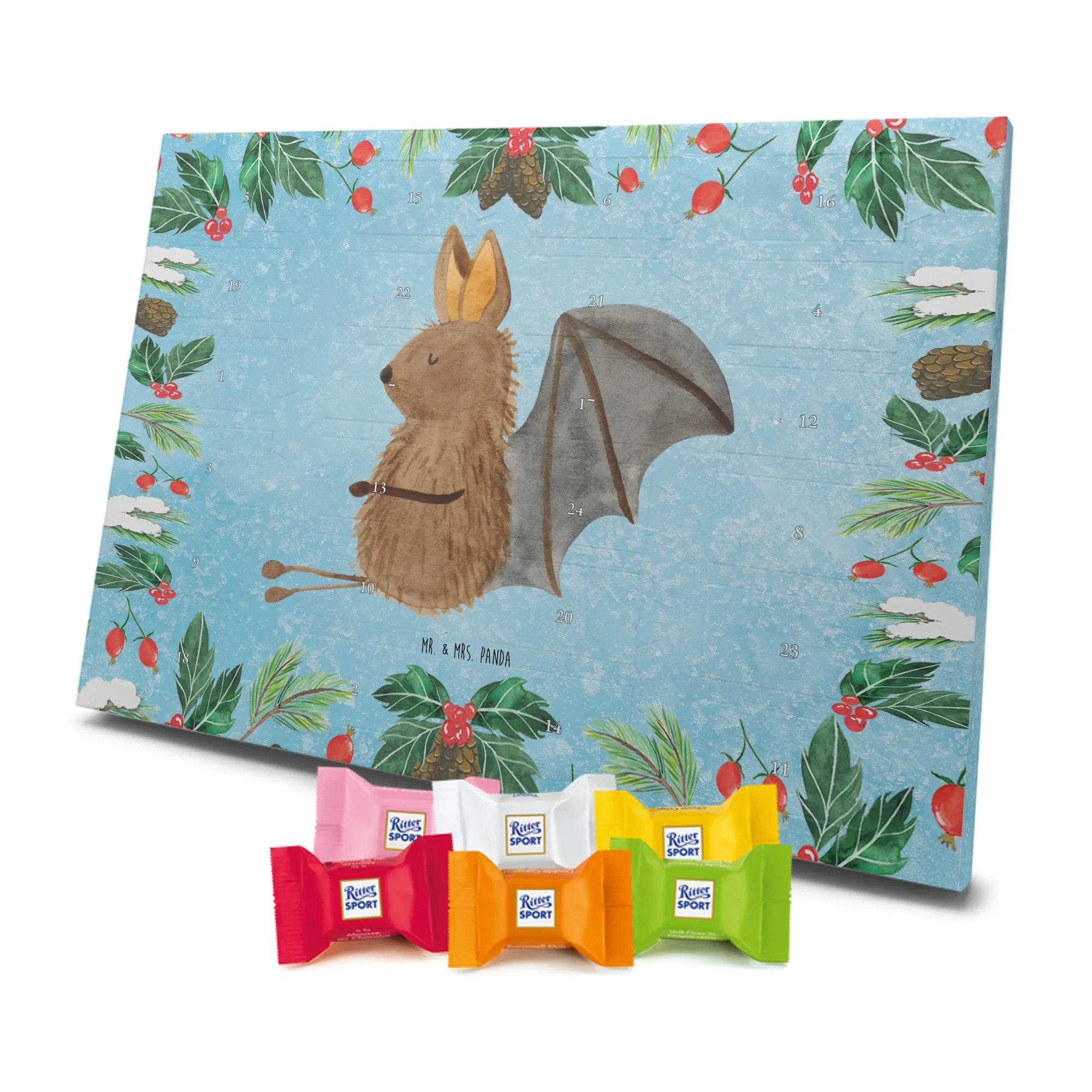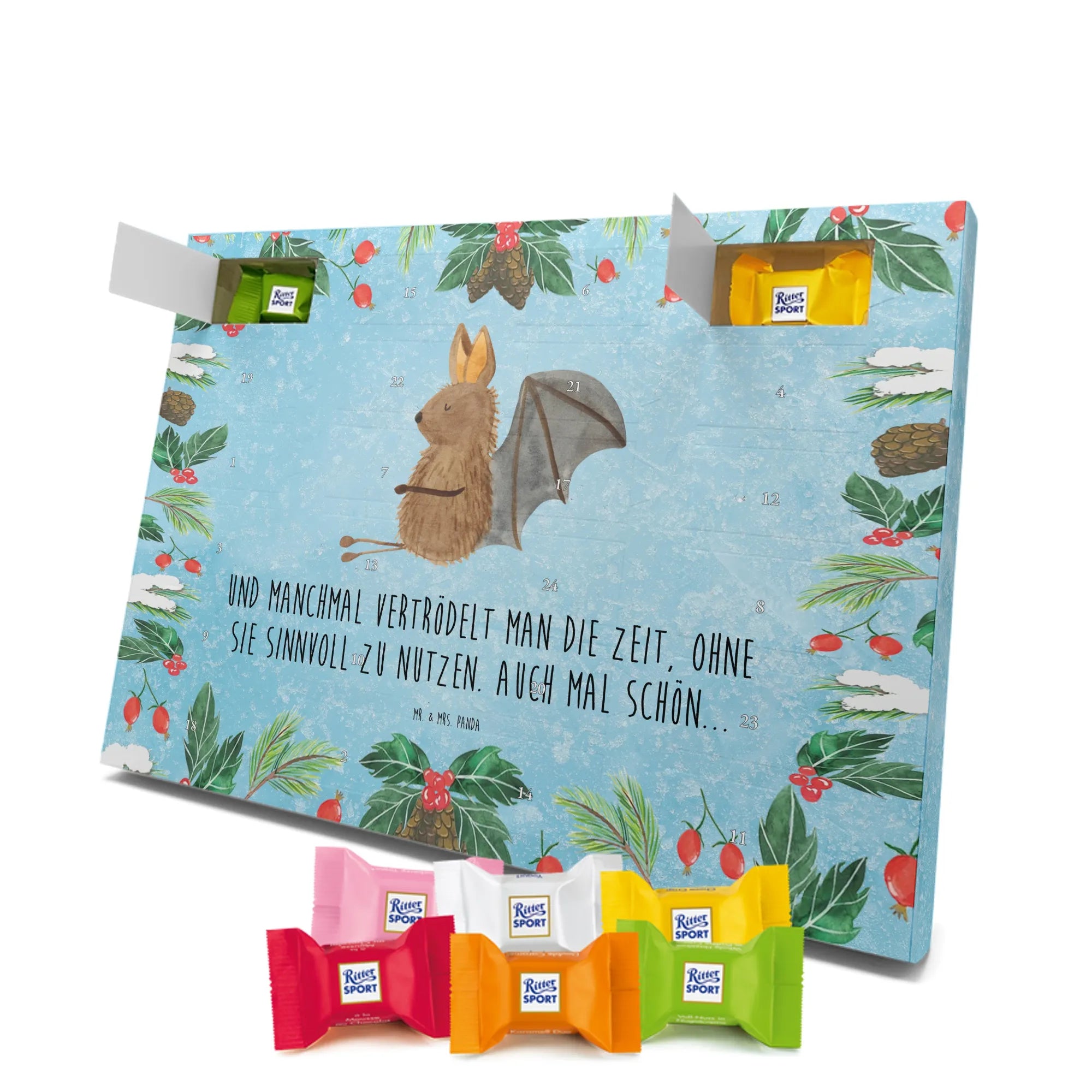 Schokoladen-Adventskalender Fledermaus Sitzen - Classic - mit Spruch - Eisblau