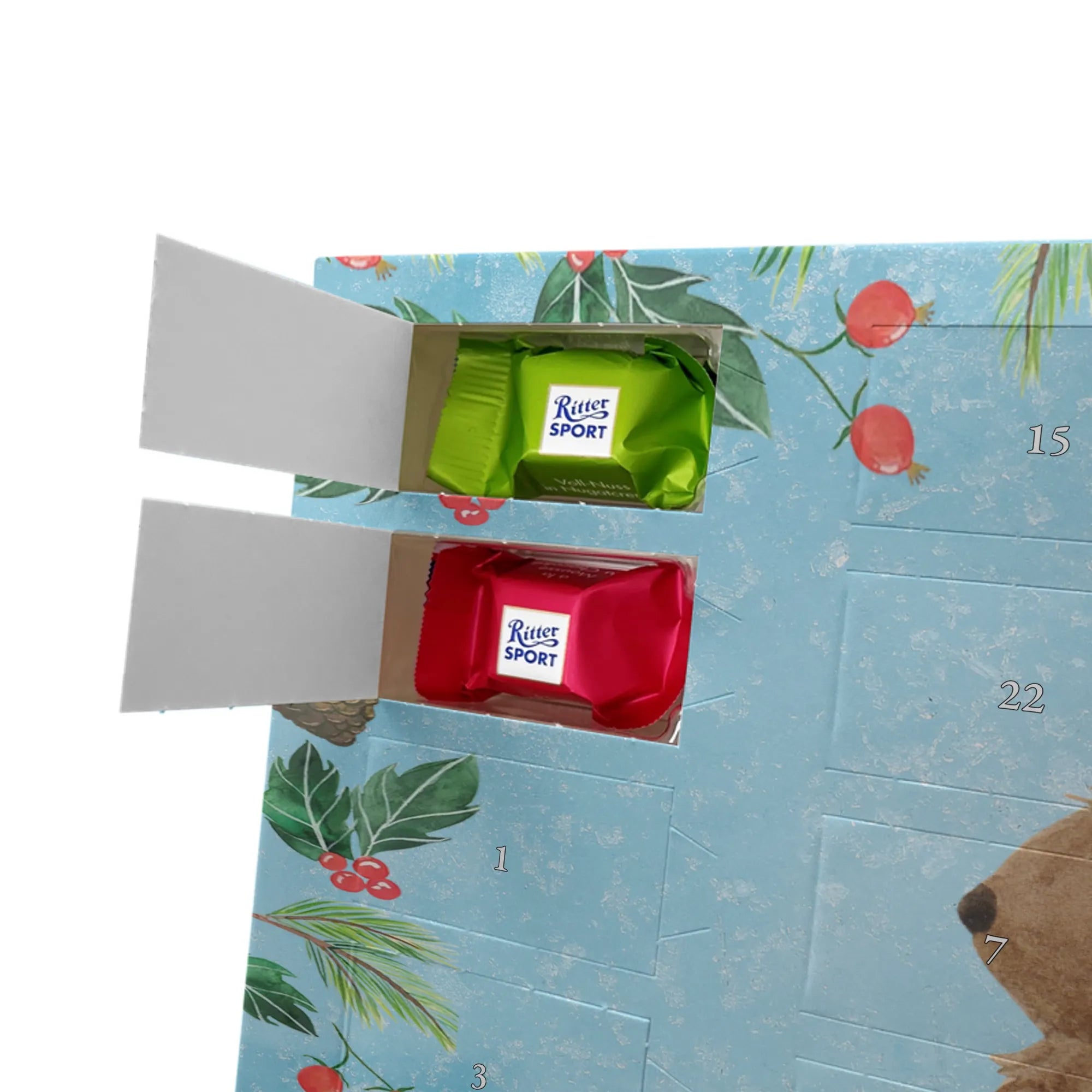 🐼 24 Türchen gefüllt mit Ritter Sport Schokowürfeln – perfekte Adventsüberraschungen.
