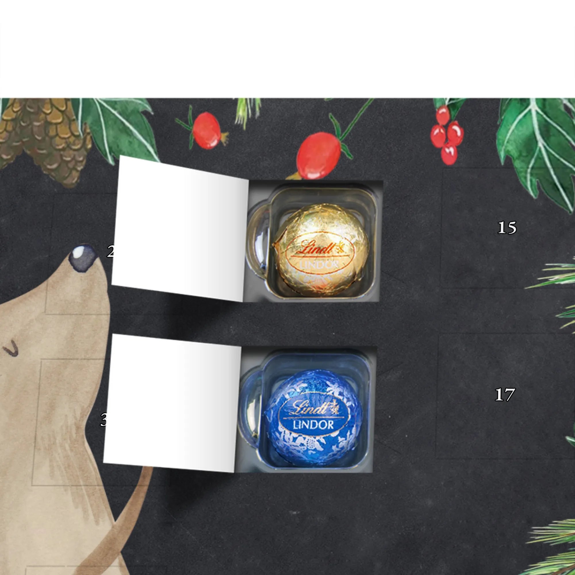 Unser liebevoller Schokoladen Adventskalender von Mr. & Mrs. Panda ist perfekt für alle, die sich eine fröhliche und süße Adventszeit wünschen. Aufwendig bedruckt mit unseren typischen Motiven & Sprüchen, nicht personalisierbar – dafür aber unglaublich hübsch anzusehen. Die brillante Druckqualität mit seidenmatter Oberflächenveredelung verleiht dem Kalender ein edles Aussehen, und die bedruckten Seitenflächen runden das Design ab. Maße: 233 mm x 178 mm x 24 mm. Besonderheit: kann aufgehängt oder aufgestellt werden, so bleibt er flexibel für deinen Deko-Stil. Gefüllt mit Lindt Lindor: 24 einzeln verpackte Markenschokoladen Kugeln in drei leckeren Sorten – Vollmilch, Feinherb und Weiße Schokolade – sorgen für tägliche Genussmomente. Zutaten: Zucker, pflanzliches Fett (Kokosnuss, Palmkern), Kakaobutter, Vollmilchpulver, Kakaomasse, Milchzucker, Magermilchpulver, Butterreinfett, Emulgator (Sojalecithin), Gerstenmalzextrakt, Aromen. Besondere Hinweise: Kann Haselnüsse und Mandeln enthalten. Ein tolles Geschenk oder eine hübsche Dekoration – unser Schokoladen Adventskalender macht die Wartezeit bis Weihnachten noch schöner!