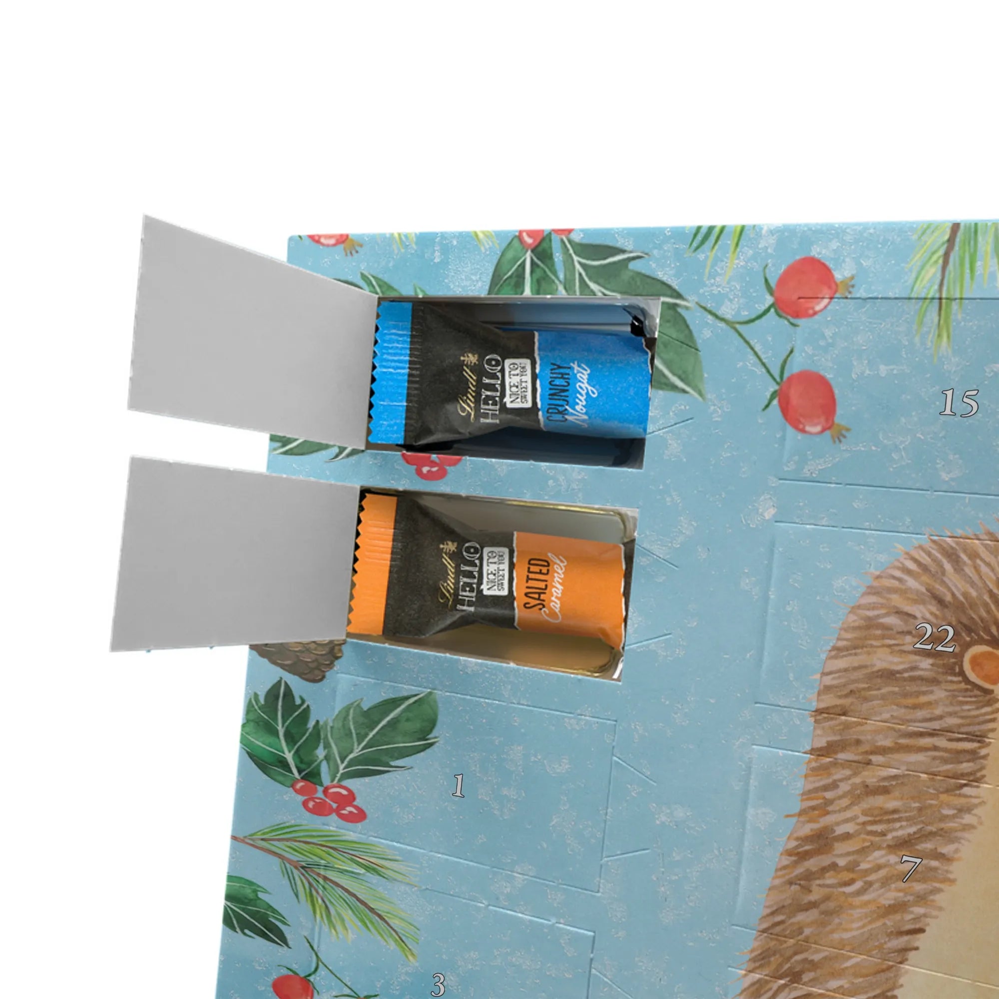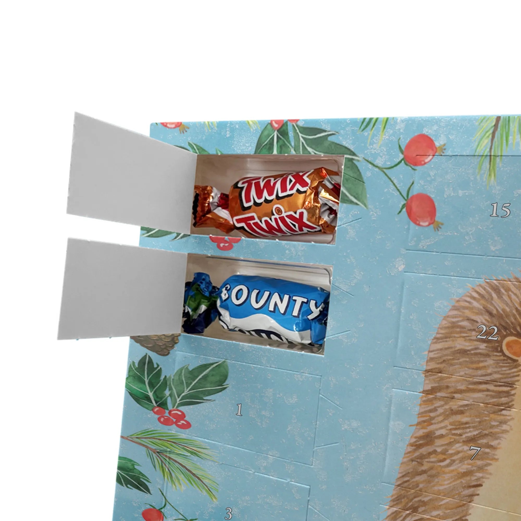 adventskalender süßigkeiten Igel Grillen - Classic - mit Spruch - Eisblau