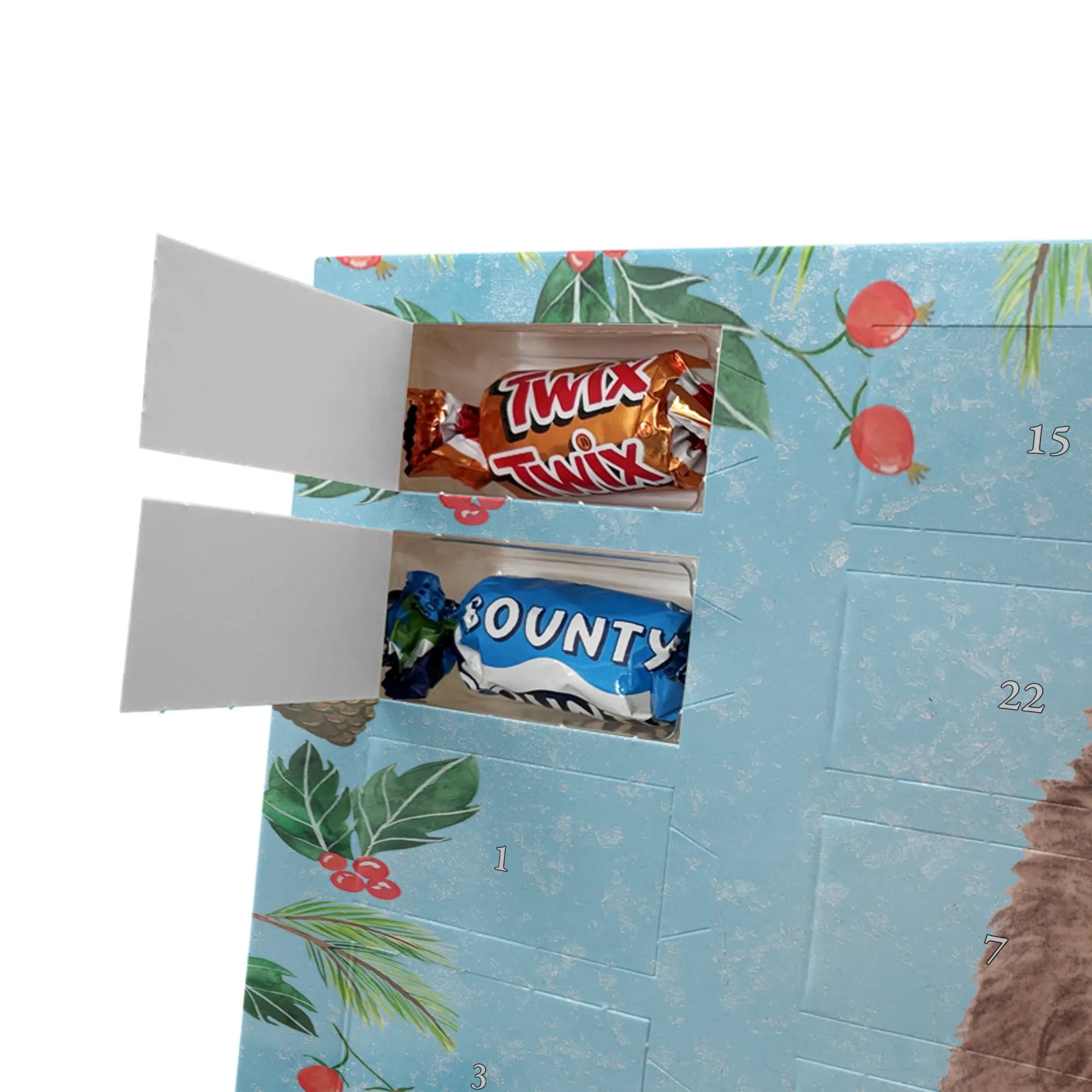 Mach die Adventszeit süßer: Entdecke unseren bedruckten Schokoladen Adventskalender von Mr. & Mrs. Panda und verschenke täglich Freude!