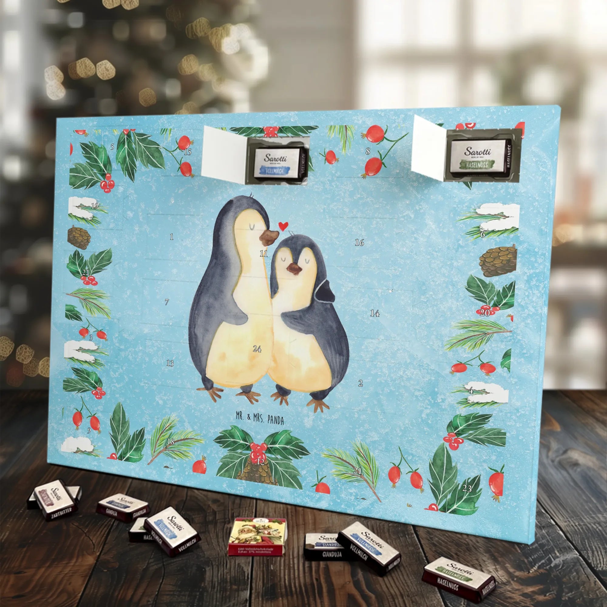 Verschenke Vorfreude und Zuneigung: Unser Schokoladen Adventskalender von Mr. & Mrs. Panda zeigt zwei liebevoll kuschelnde Pinguine in zarten Aquarelltönen. Dieses Motiv aus der Liebe Kollektion ist ideal als Liebesgeschenk, Jahrestags-Überraschung oder als süße Aufmerksamkeit zum Valentinstag.