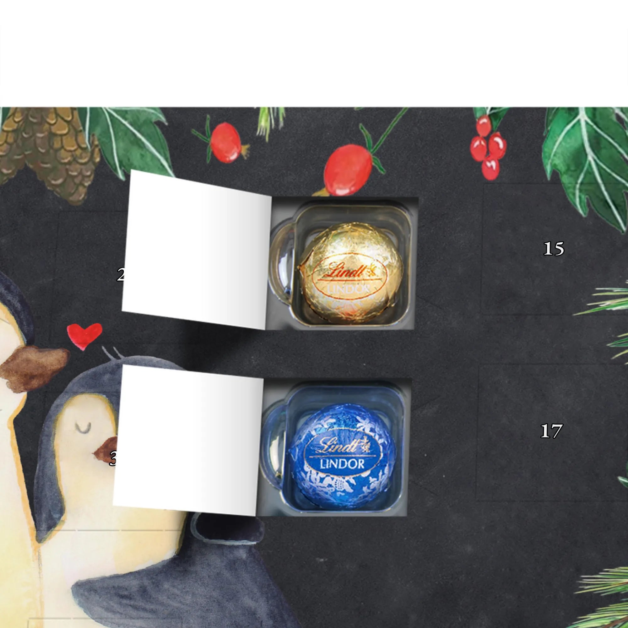 Kuschelzeit im Advent: Unser Schoko Adventskalender „Pinguine Einschlafen“ aus der Liebe-Kollektion von Mr. & Mrs. Panda ist das ideale Liebesgeschenk für Verliebte. Suchst du ein Geschenk für deine Freundin, deinen Freund oder deinen Ehepartner, das den Dezember mit süßen Momenten und Herzklopfen füllt? Dieser Adventskalender vereint liebevolles Design mit feiner Schokolade.