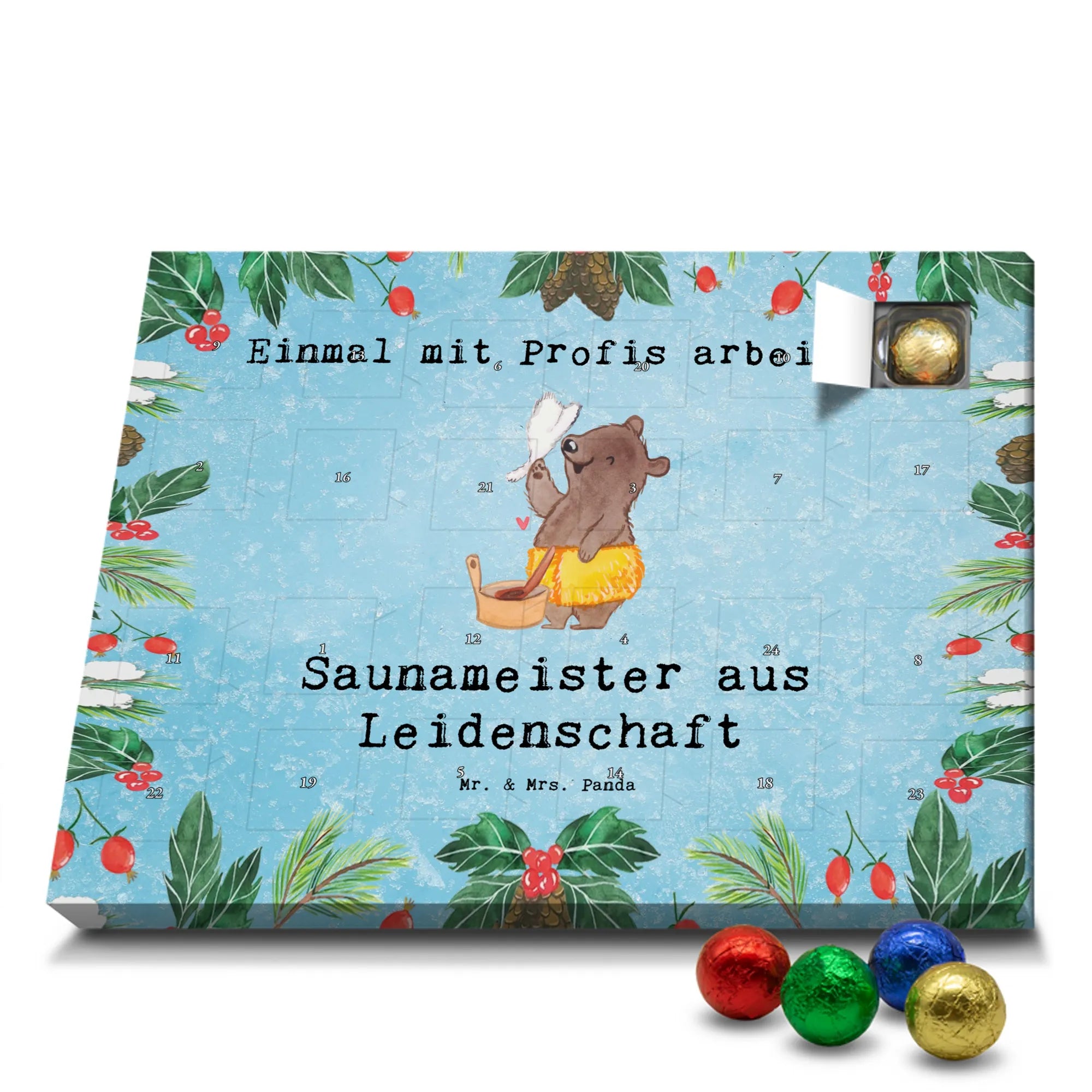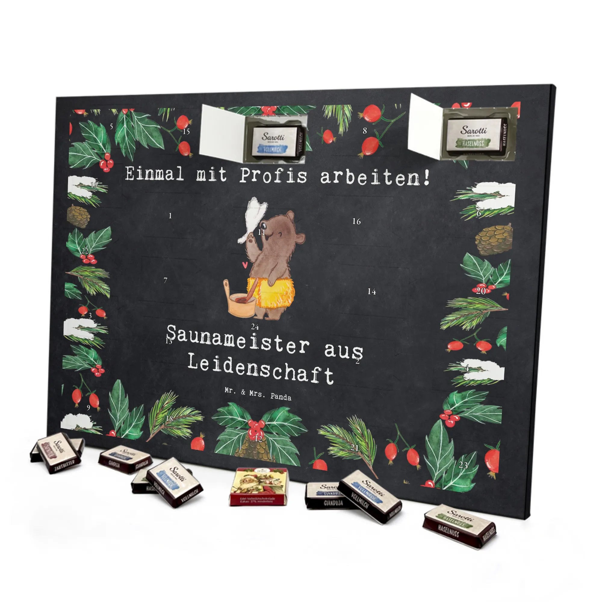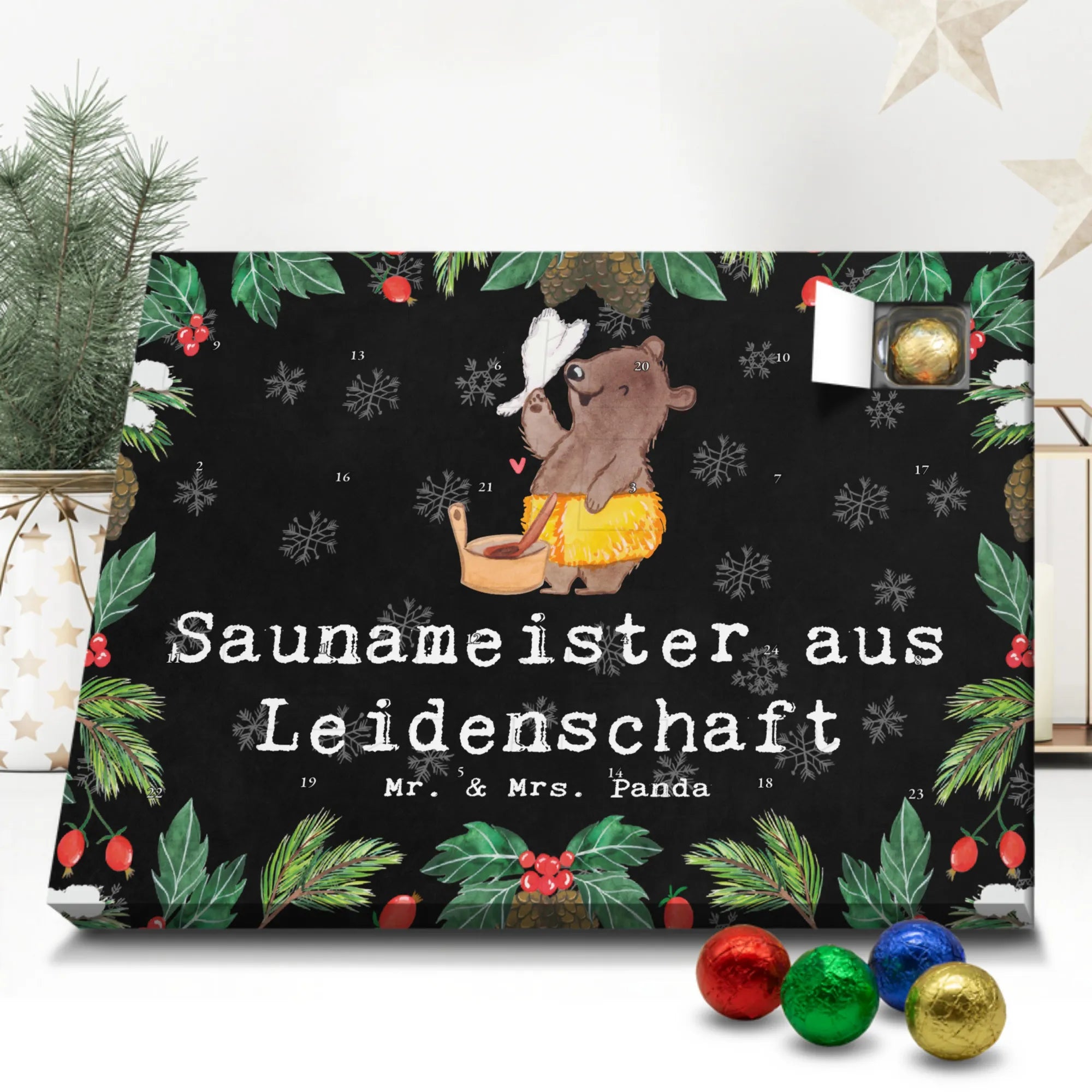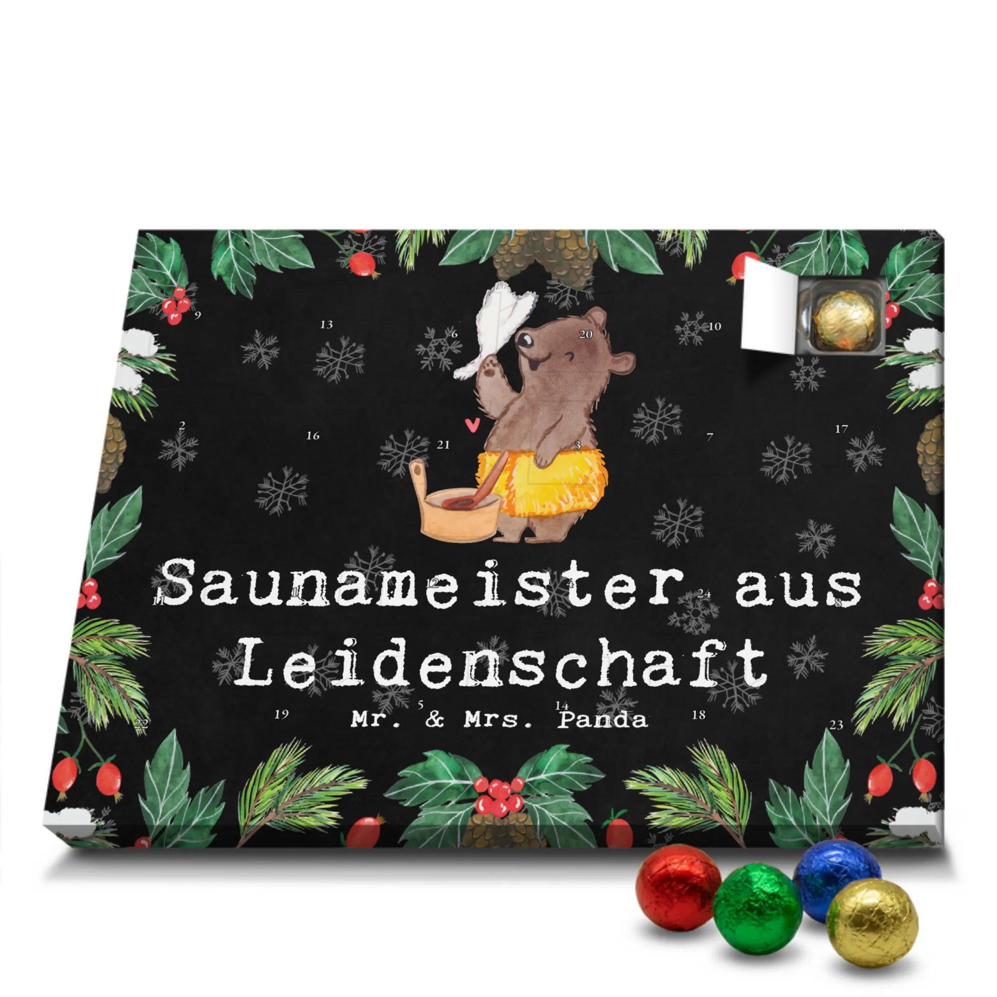 🐼 Schoko-Adventskalender: Liebevolles Design, seidenmatt, brillanter Druck – ein Hingucker.