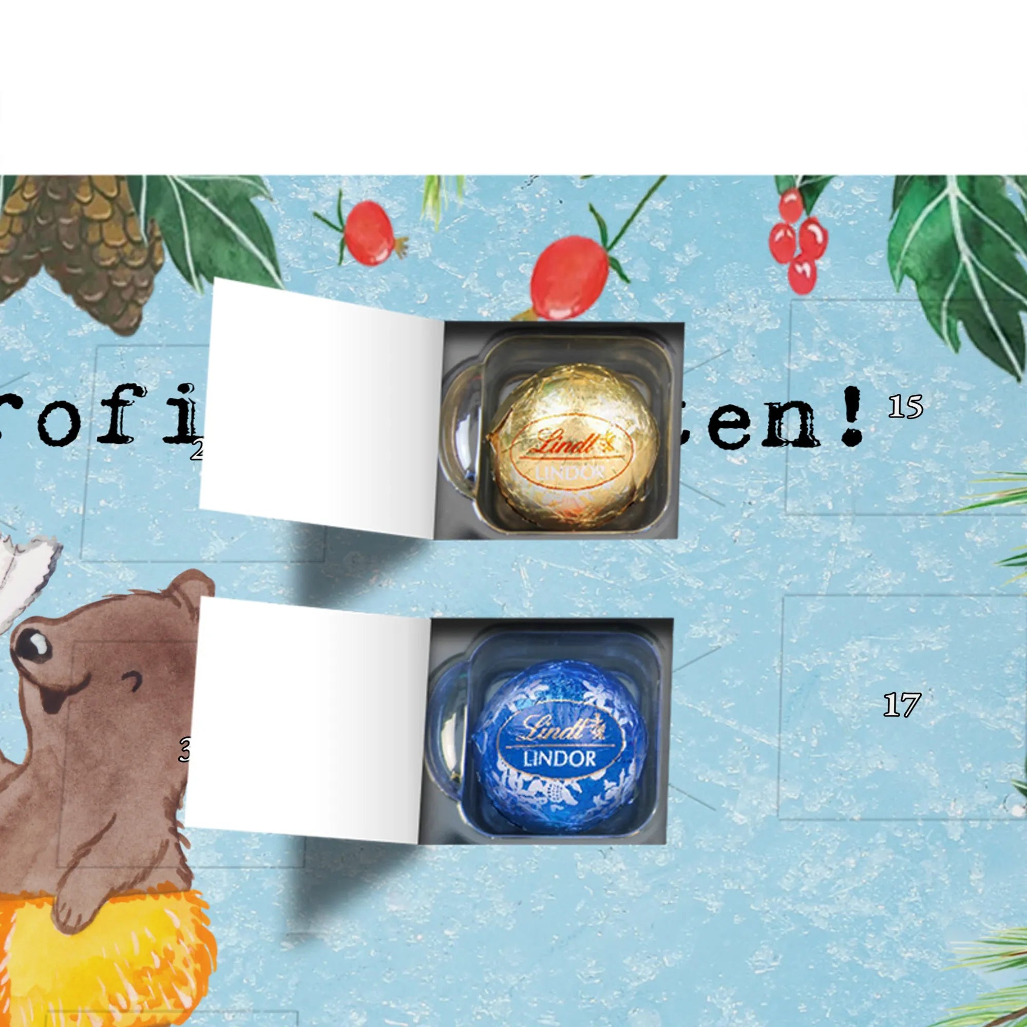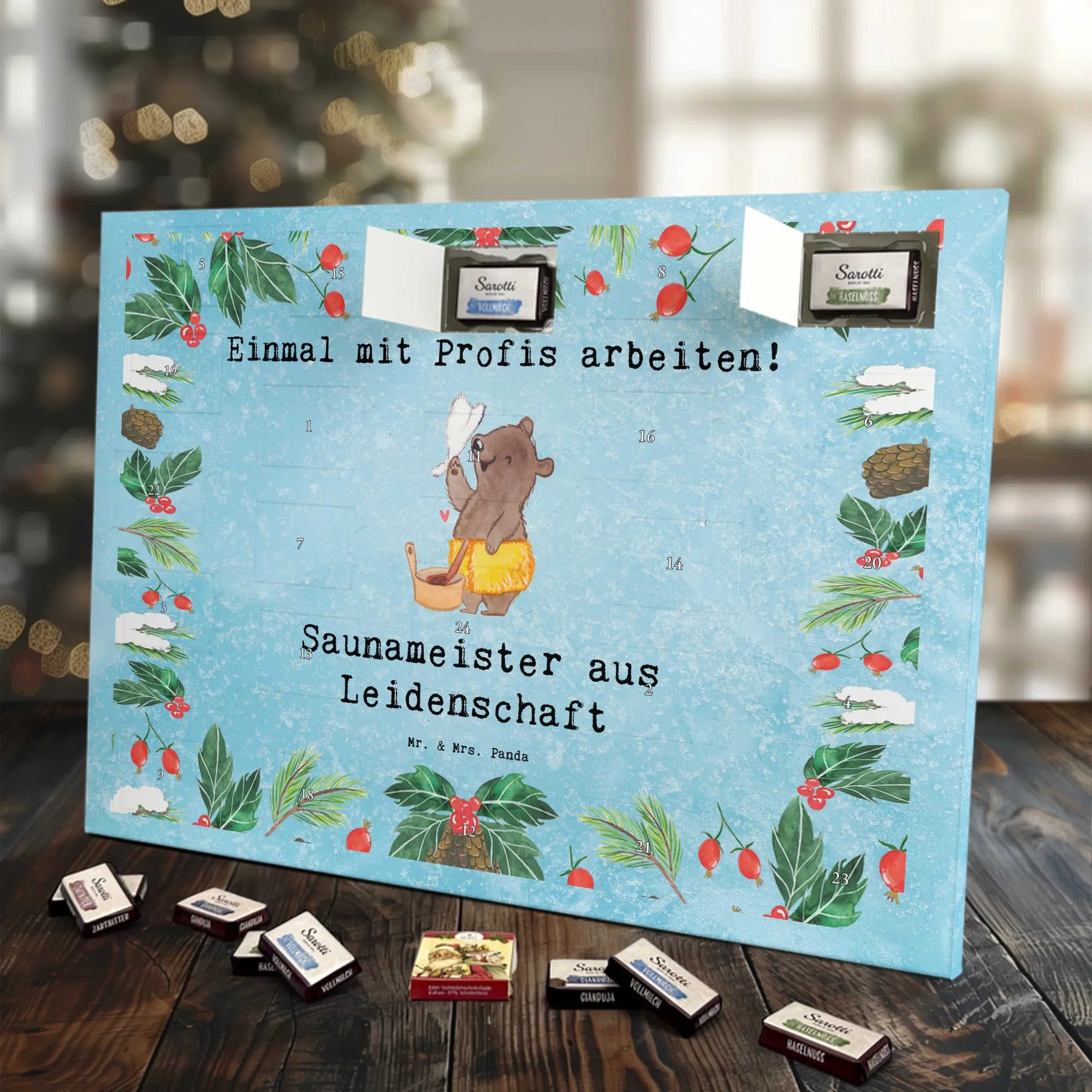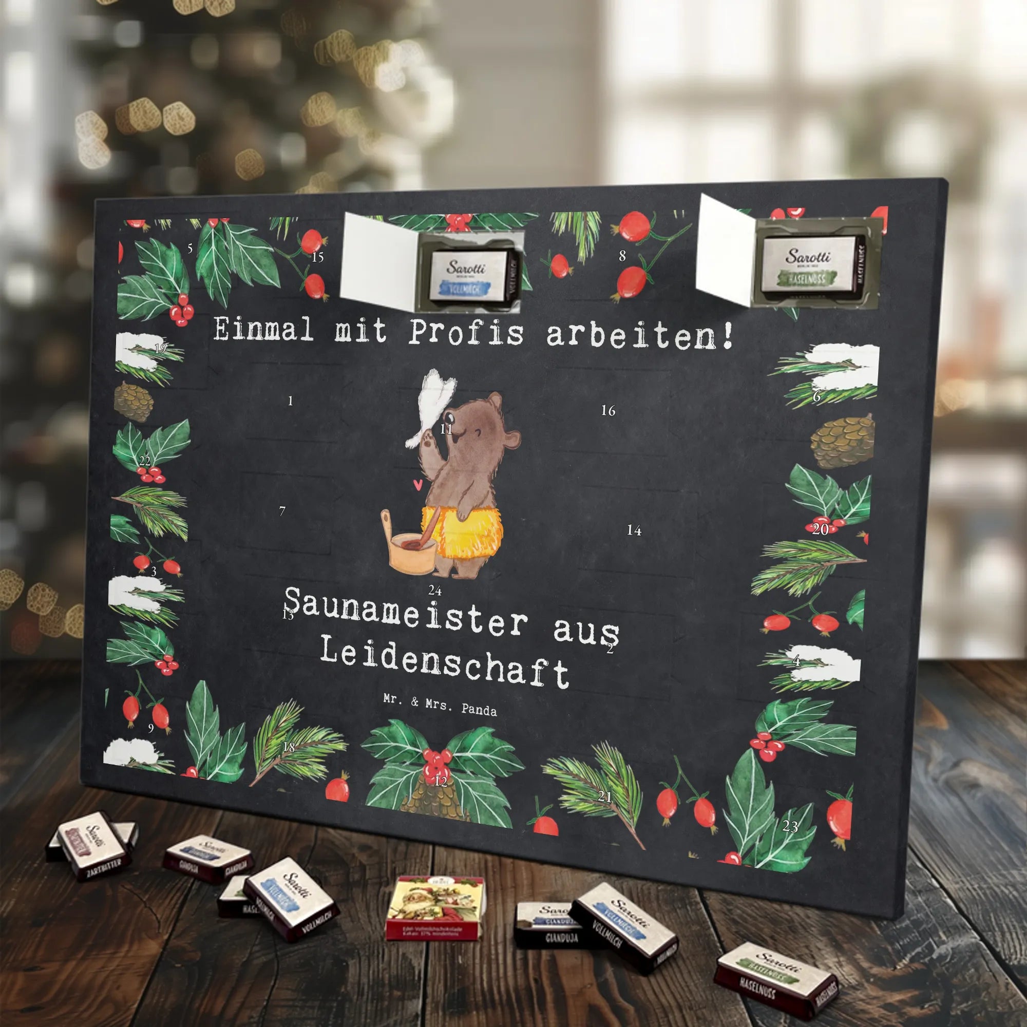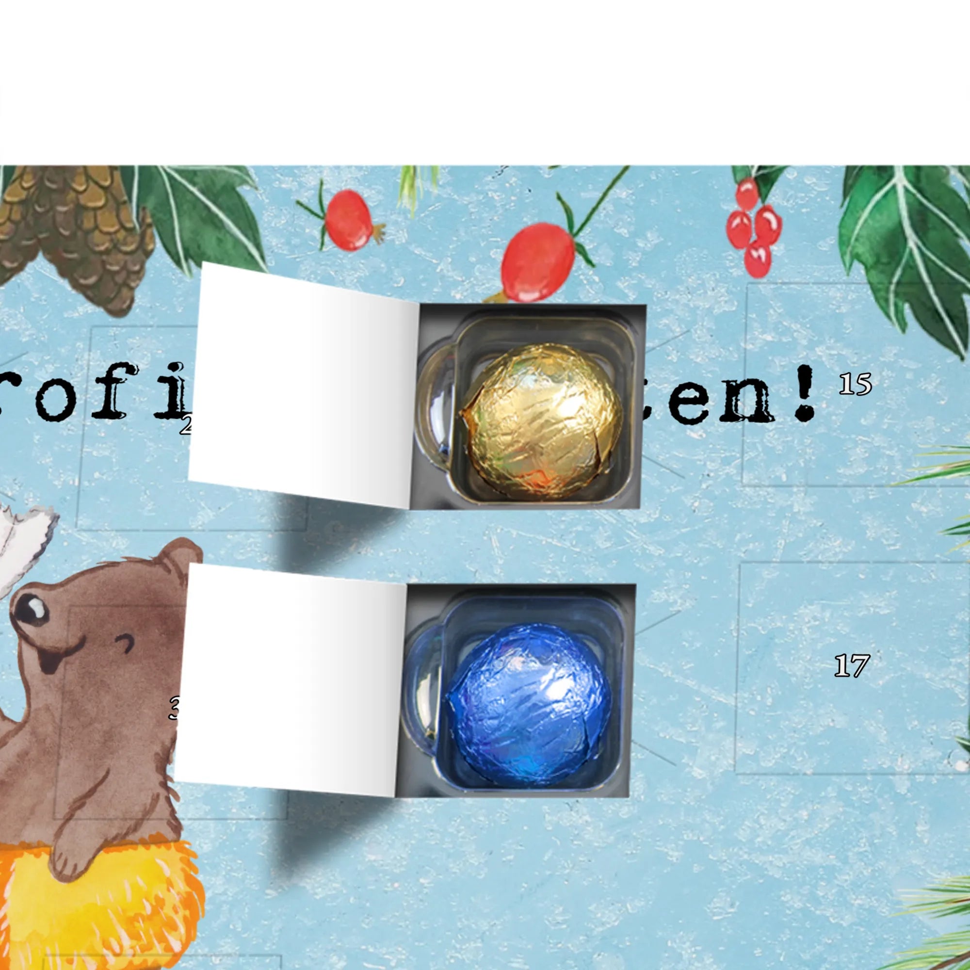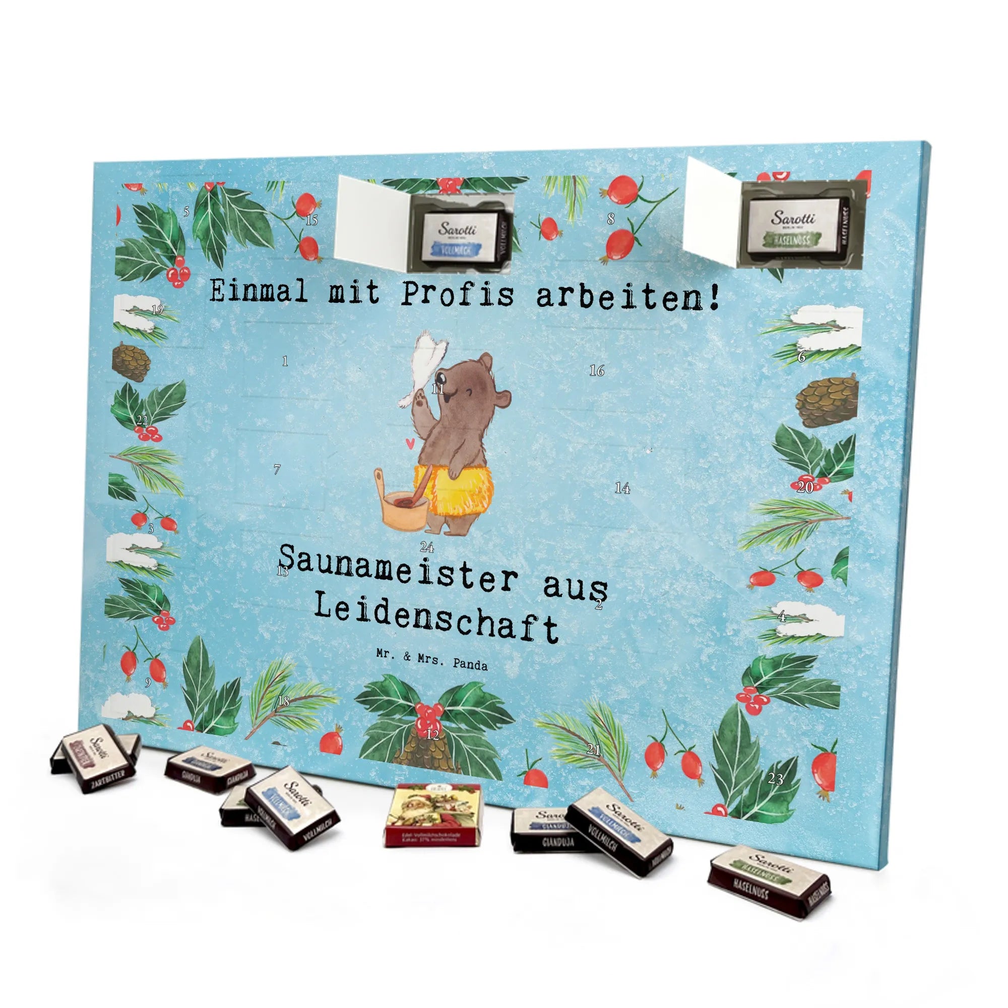 🐼 Schoko-Adventskalender: Liebevolles Design, seidenmatt, brillanter Druck – ein Hingucker.