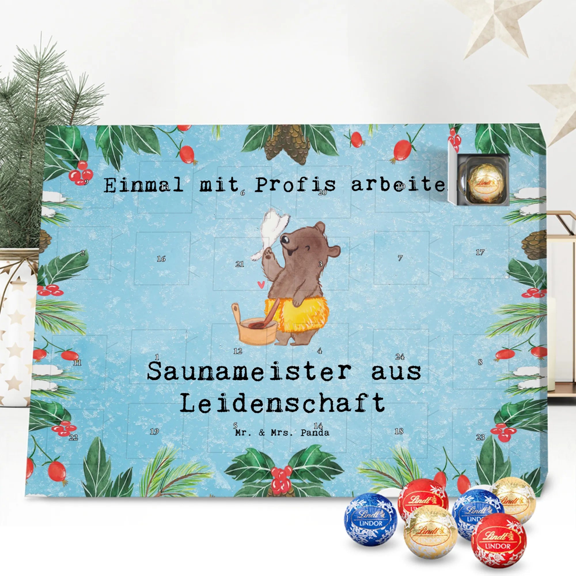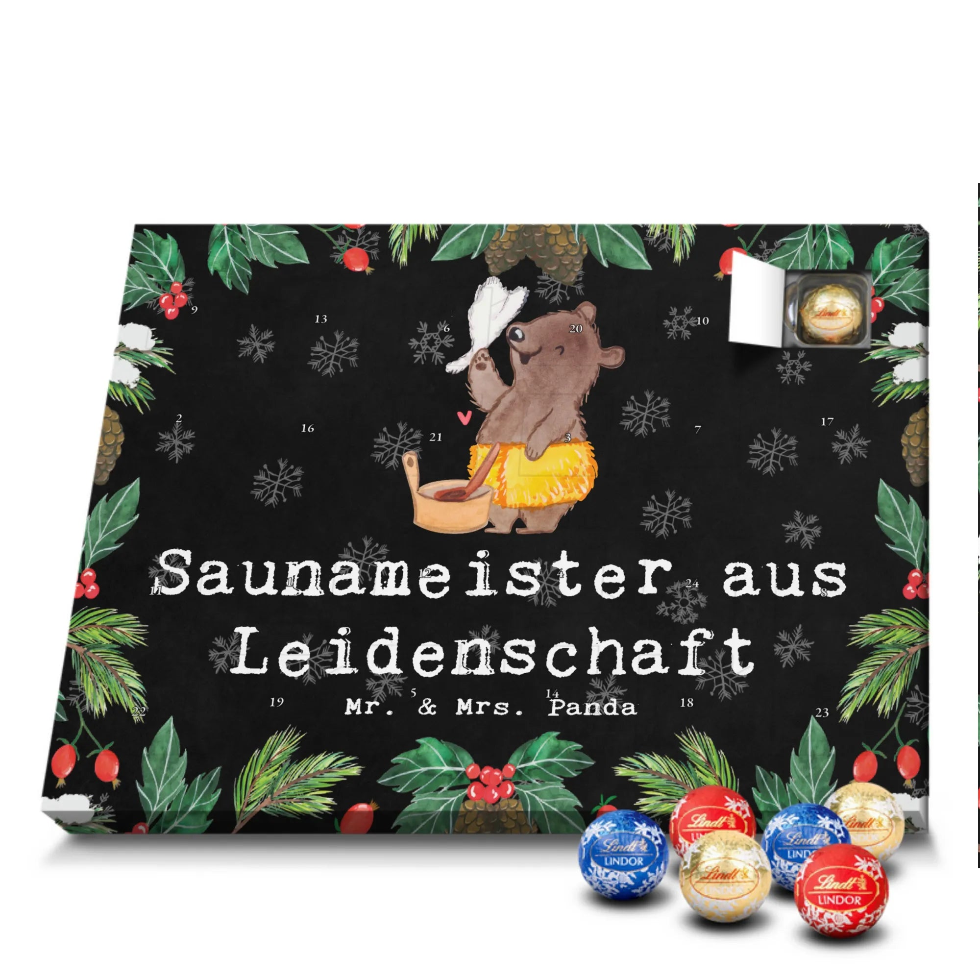 🐼 Schoko Adventskalender mit Lindt Lindor, 24 Kugeln, seidenmatter Druck, nicht personalisierbar.