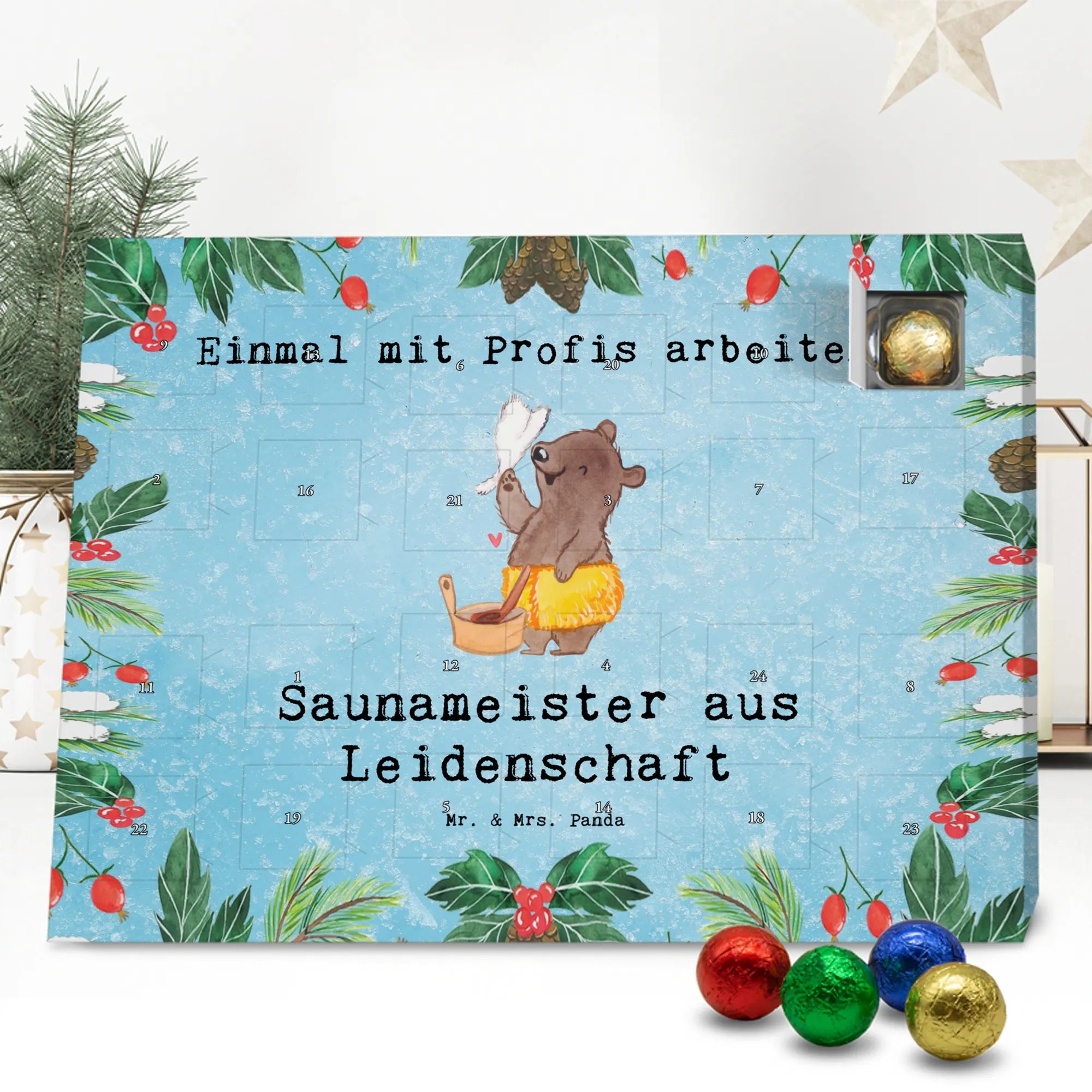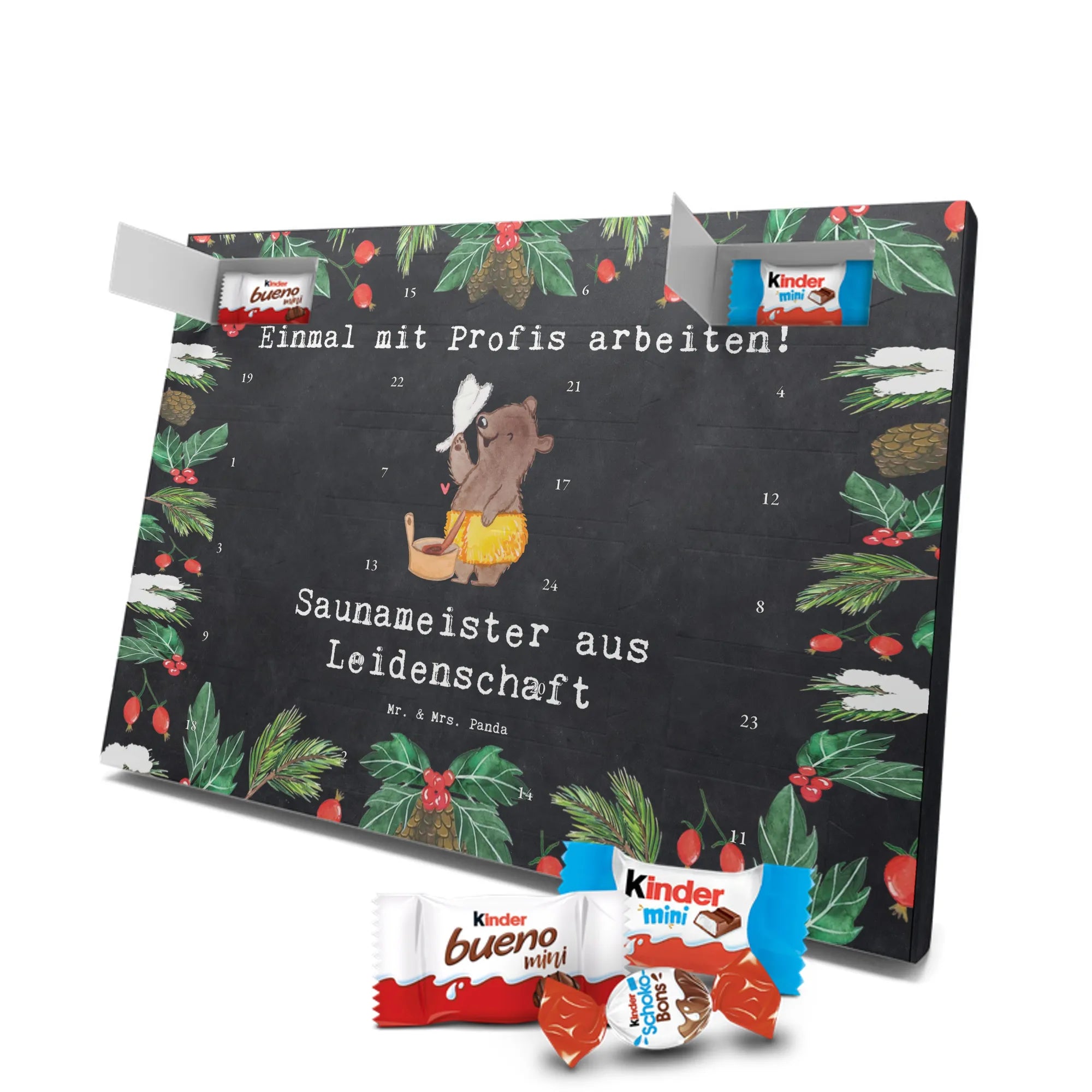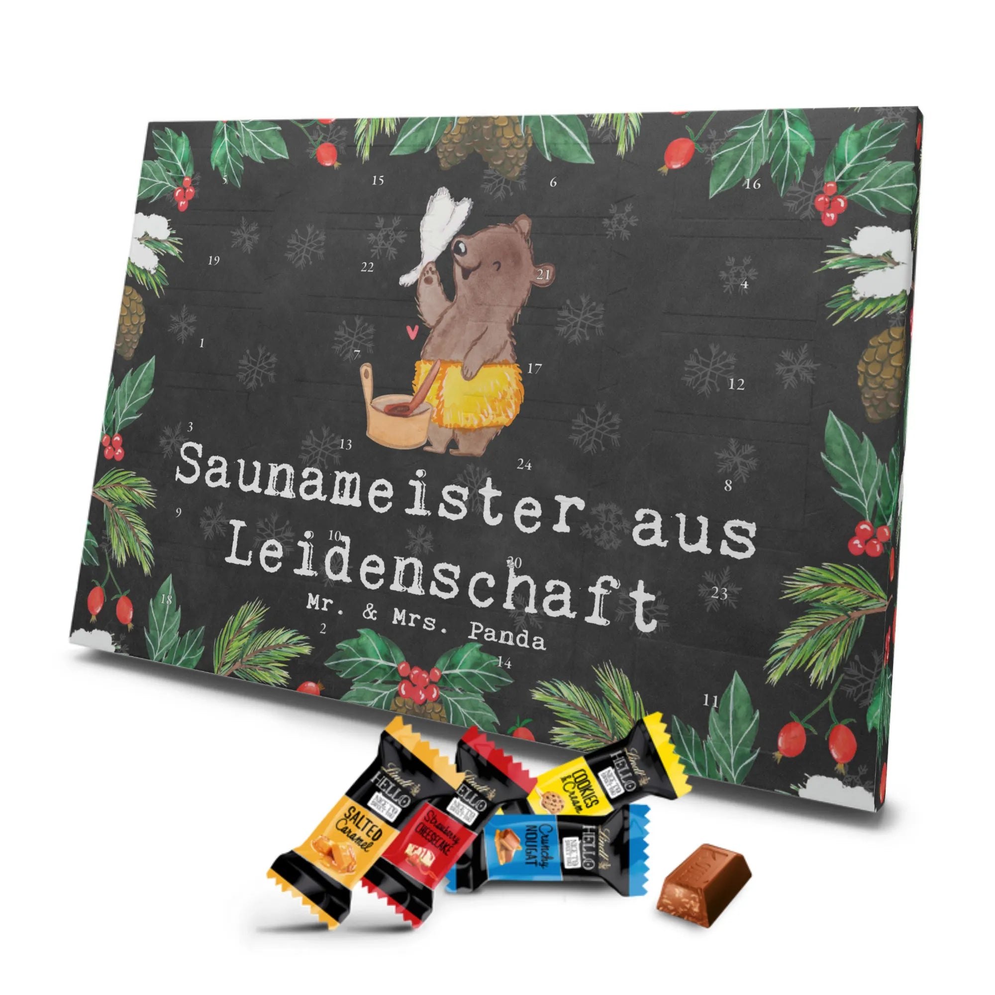 🐼 Schoko Adventskalender mit Mr. & Mrs. Panda Motiven, brillante Druckqualität, nicht personalisierbar.