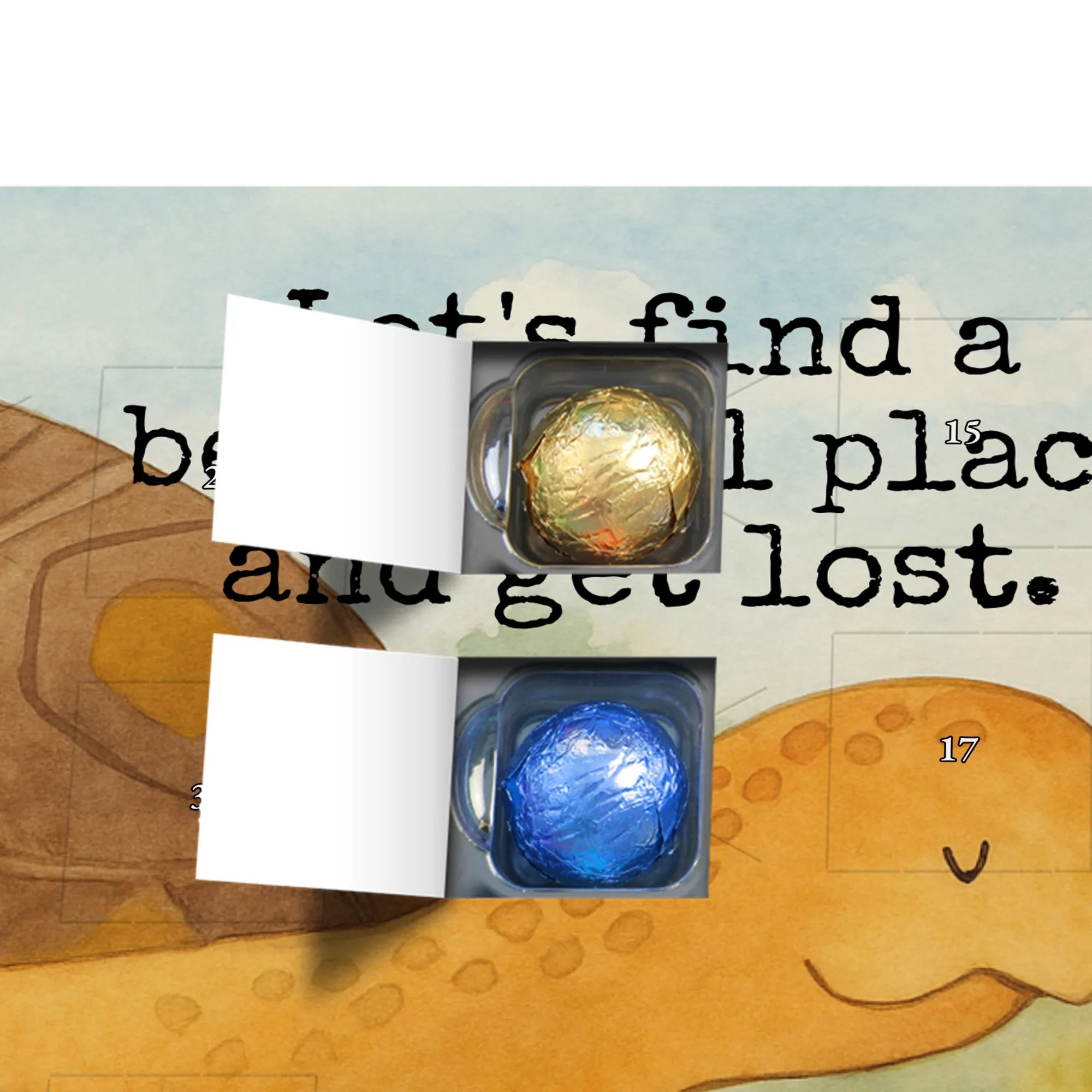 Entdecke einen Adventskalender, der so sanft daherkommt wie eine Meeresbrise. Unser Schokoladen Adventskalender aus der Meerestiere-Kollektion zeigt die gemütliche Schildkröte in Aquarellfarben, begleitet vom Motto "Let's find a beautiful place and get lost." – perfekt für alle, die Abenteuerlust, Reiselust und ein bisschen Ruhe im Herzen tragen.