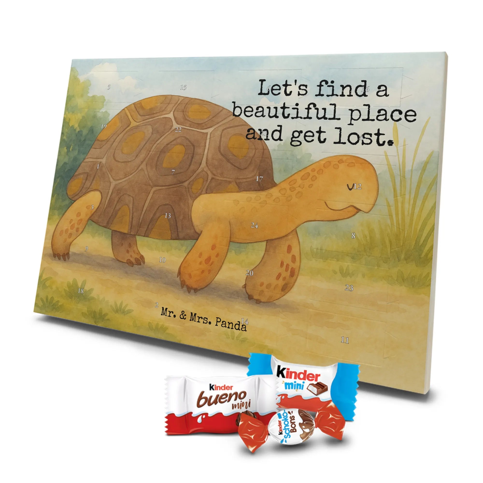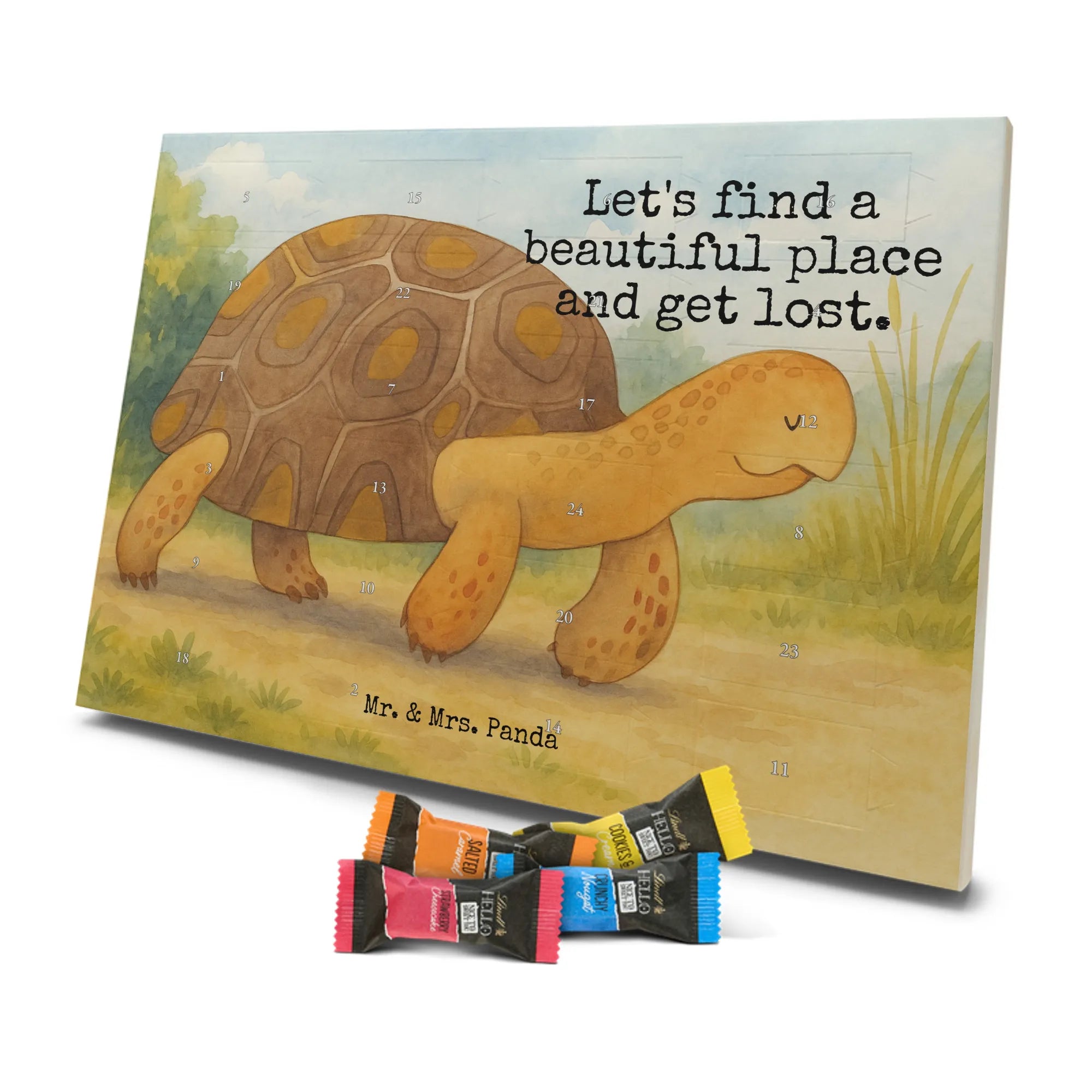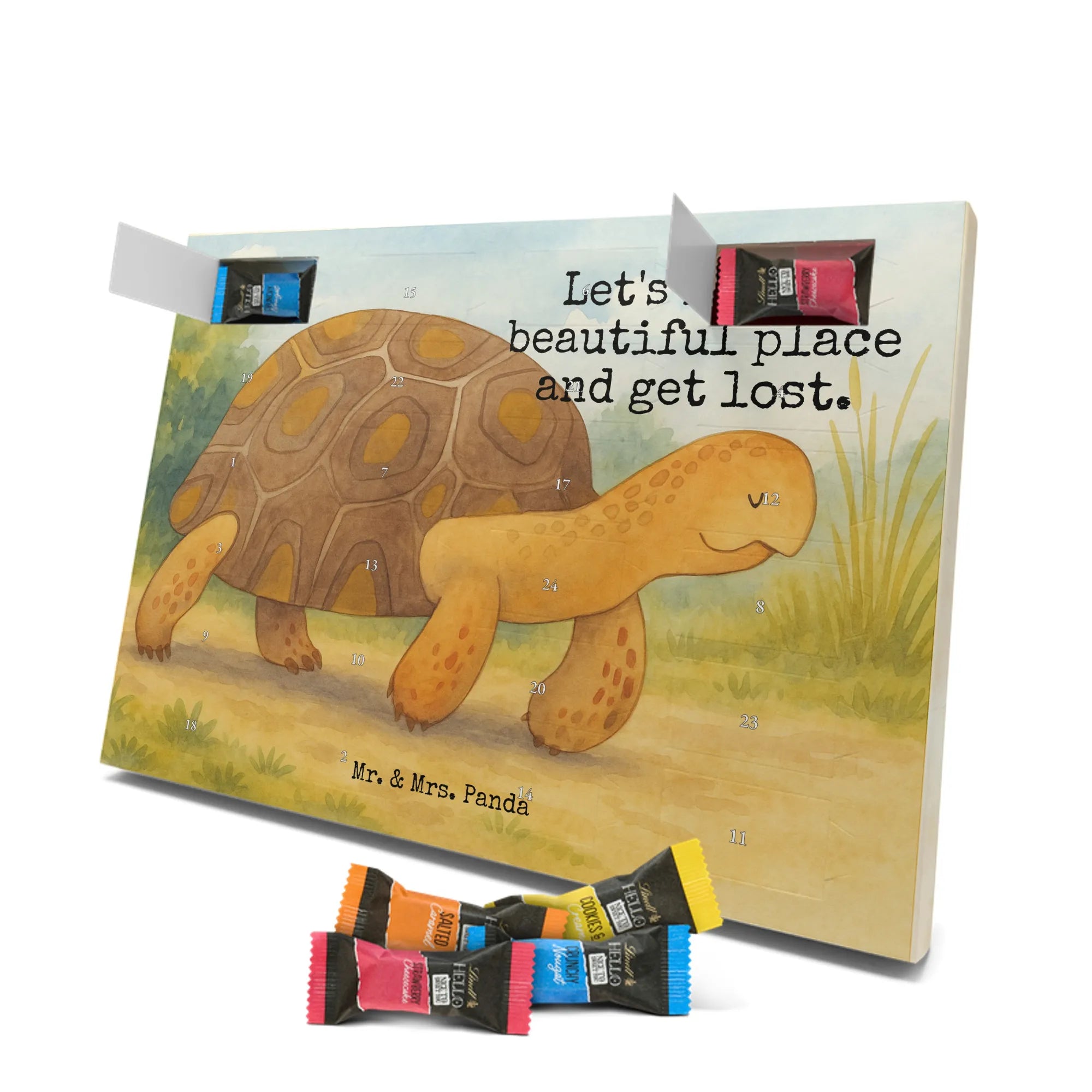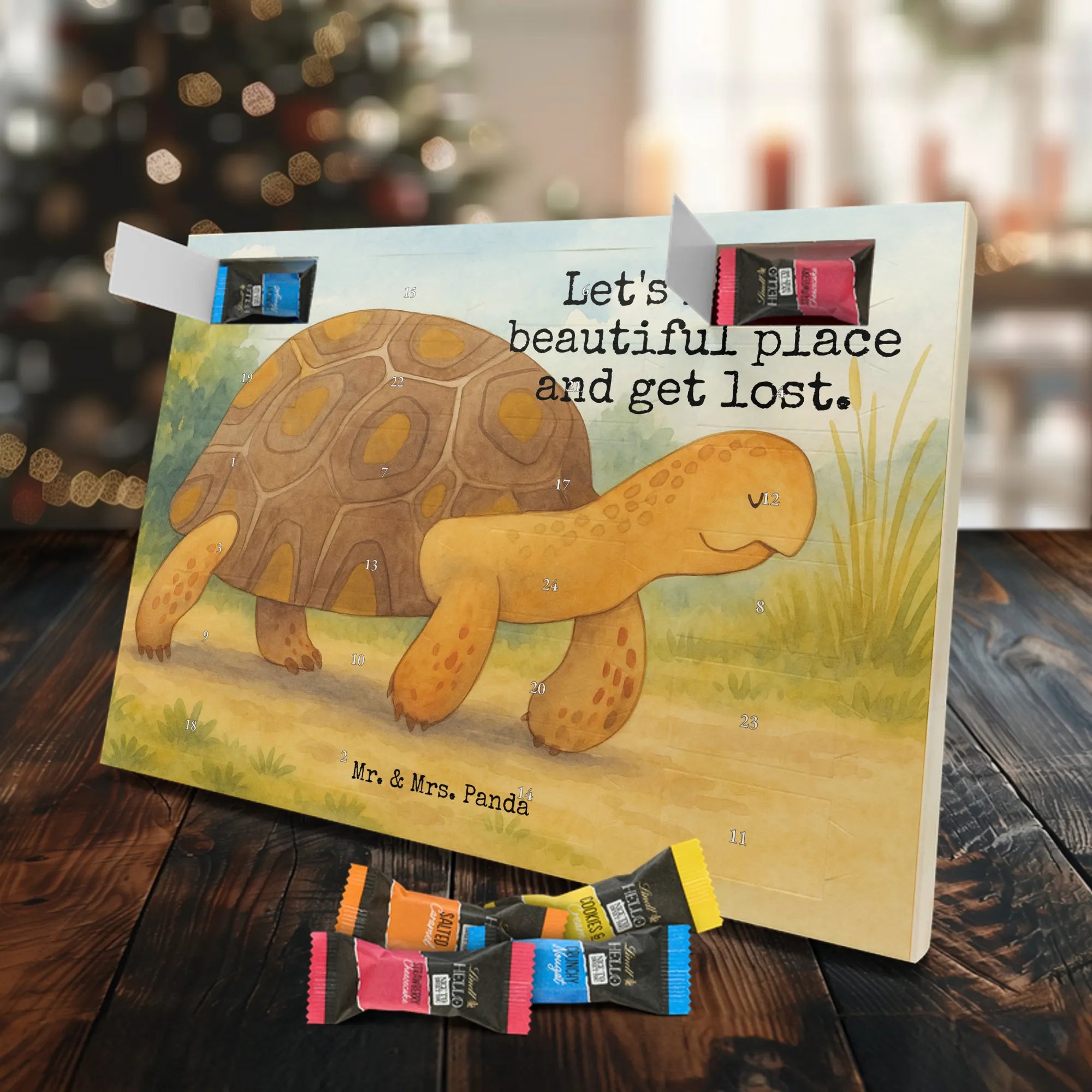Mr. & Mrs. Panda Schoko Adventskalender „Schildkröte marschiert“ – ein Adventskalender voller Meerträume und süßer Überraschungen. Mit dem charmanten Motiv einer gemütlichen Schildkröte und dem Slogan "Let's find a beautiful place and get lost." bringt dieser Weihnachtskalender Schokolade maritimen Flair in deine Adventszeit.