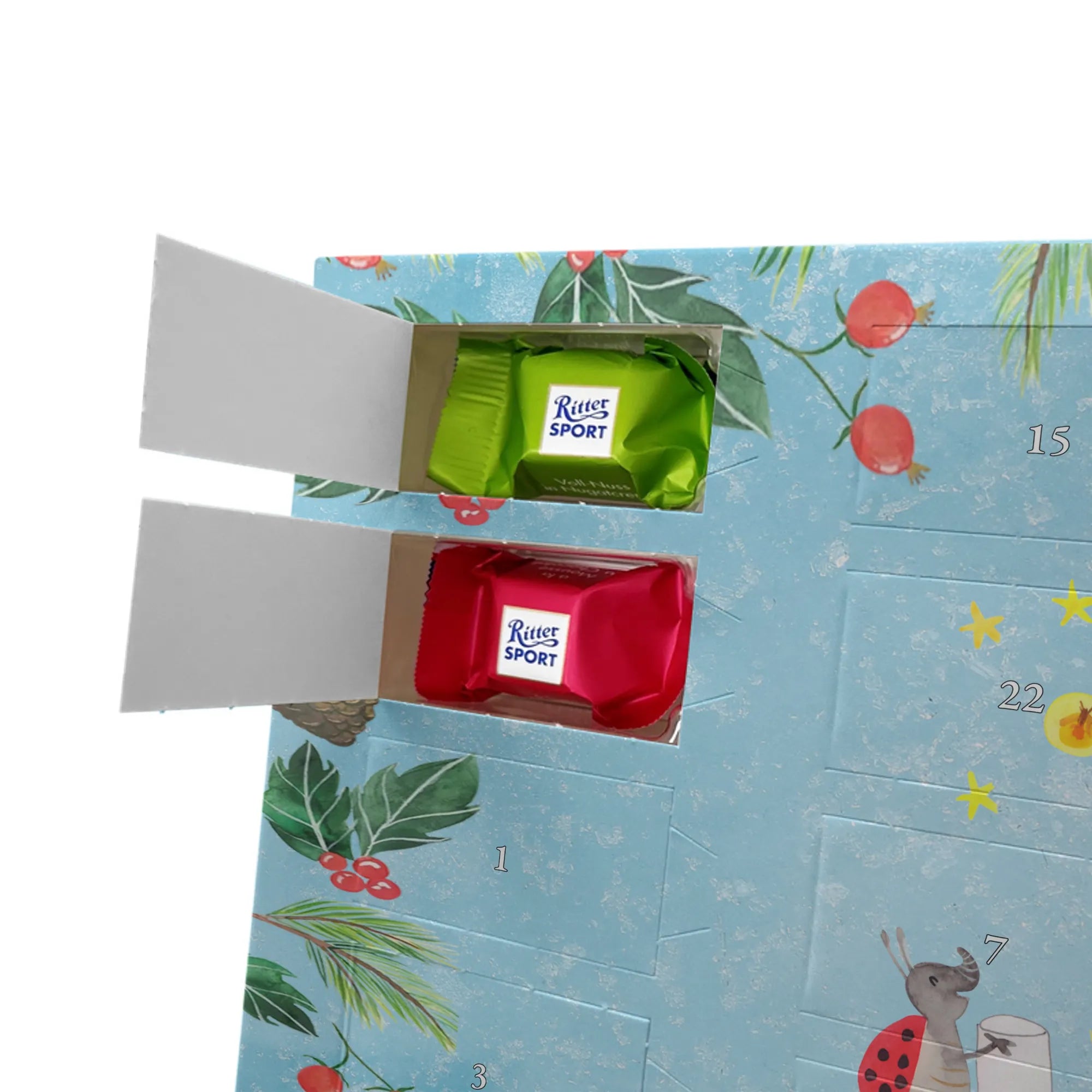 Unser entzückender Schokoladen Adventskalender von Mr. & Mrs. Panda ist das perfekte Highlight für die Adventszeit. Bedruckt mit wunderschönen Motiven & Sprüchen von Mr. & Mrs. Panda zaubert er dir ein Lächeln an jedem Tag im Dezember. Der Kalender ist nicht personalisierbar, überzeugt aber durch brillante Druckqualität mit seidenmatter Oberflächenveredelung und sorgsame bedruckte Seitenflächen. Die stabile Verarbeitung macht ihn zu einem dekorativen Hingucker. Maße: 325 mm x 225 mm x 27 mm. Besonders praktisch: Er kann aufgehängt oder aufgestellt werden, ganz nach deinem Geschmack und Platzangebot. Gefüllt ist der Adventskalender mit Ritter Sport Schokowürfeln – in verführerischen Sorten wie Mousse au Chocolat, Schoko Crisp, Voll-Nuss in Nougatcreme, Karamell Duo, Joghurt und Erdbeer-Joghurt. Wichtiger Hinweis: Es handelt sich um einen Kalender gefüllt mit Ritter Sport Schokolade, nicht um einen Kalender der Marke Ritter Sport. Schenk ihn Freunden, der Familie oder gönn dir selbst eine süße Vorfreude: kleine Schokoladenmomente, liebevoll verpackt von Mr. & Mrs. Panda.