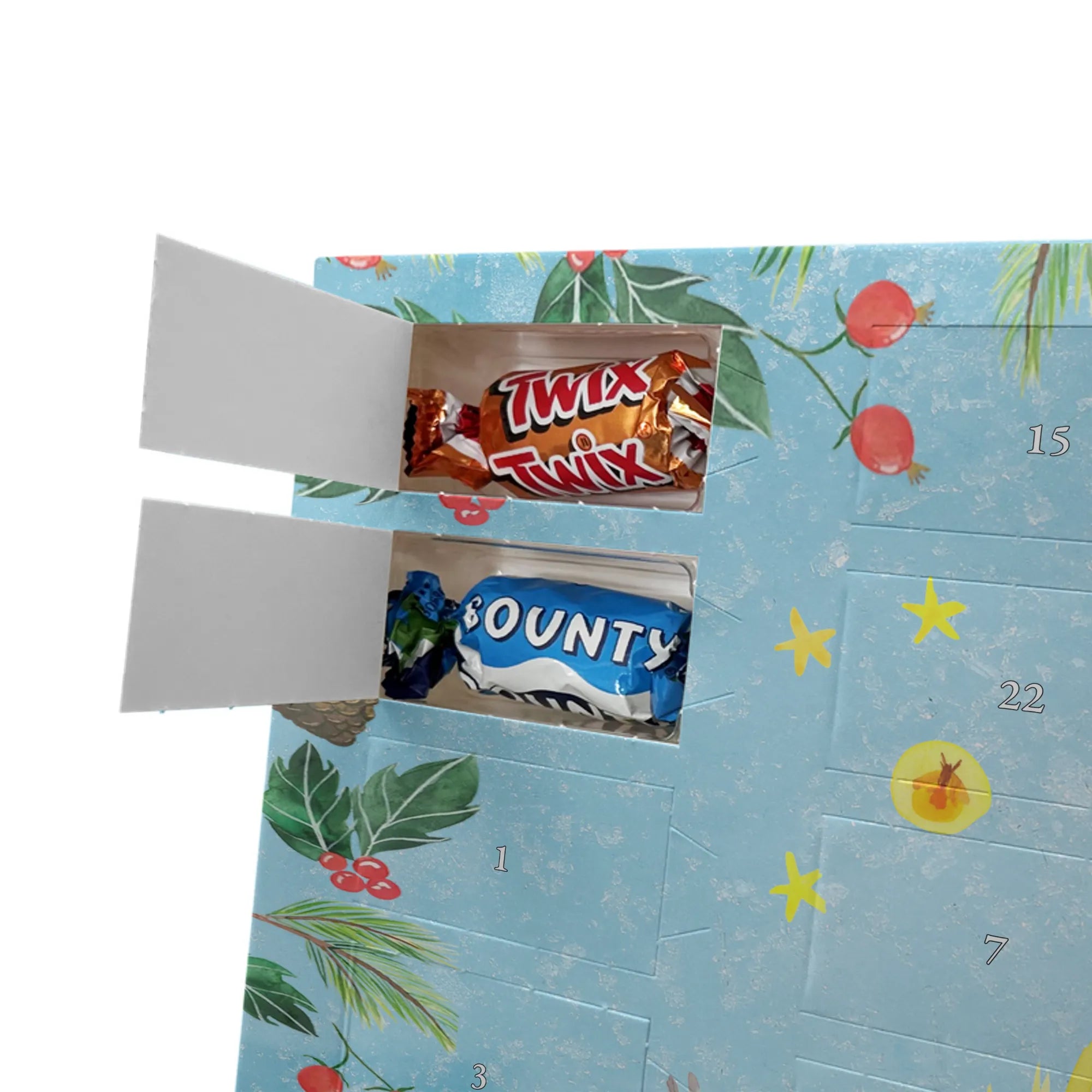 Unser Adventskalender mit Schokolade von Mr. & Mrs. Panda ist ein liebevoll gestaltetes Highlight für die Adventszeit. Die süßen Illustrationen und charmanten Sprüche sorgen für gute Stimmung bei Groß und Klein. Gedruckt in brillanter Qualität mit seidenmatter Oberflächenveredelung, wirken die Farben kräftig und edel; auch die Seitenflächen sind dekorativ bedruckt. Bitte beachten: Der Kalender ist nicht personalisierbar. Gefüllt ist er mit 24 Celebrations-Überraschungen in acht verschiedenen Sorten: Maltesers, Mars, Snickers, Twix, Milky Way, Bounty, Galaxy und Galaxy Caramel — perfekte Abwechslung für jeden Tag. Besonderheit: Du kannst den Kalender sowohl aufstellen als auch aufhängen. Maße: 325 mm x 225 mm x 27 mm. Schenke Vorfreude und kleine Genussmomente – ideal als Geschenk oder für deine eigene Adventszeit.