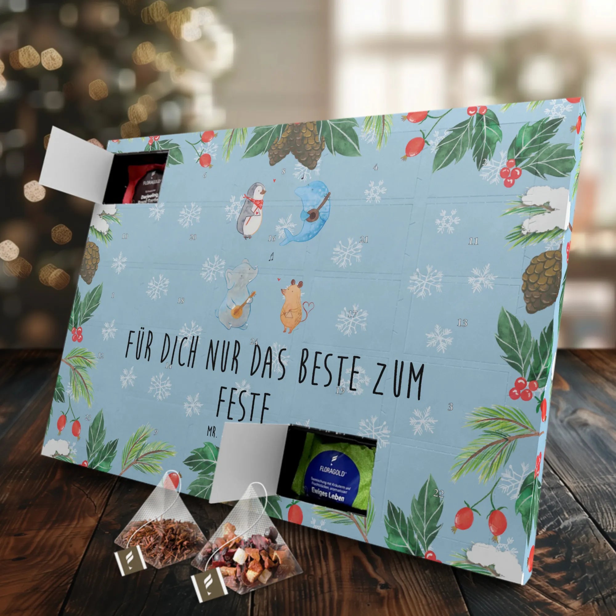 Tee Adventskalender Big Band Tee Adventskalender, Adventskalender, Adventskalender mit Tee, Tiermotive, Tiere, Gute Laune, Lustige Sprüche, Gitarre, Musik, Musikanten, Delfin, Band, Elefant, Triangel, Hund, Pinguin, Maus